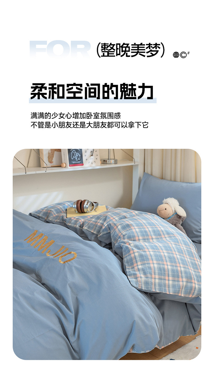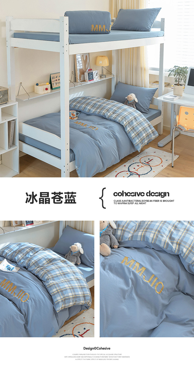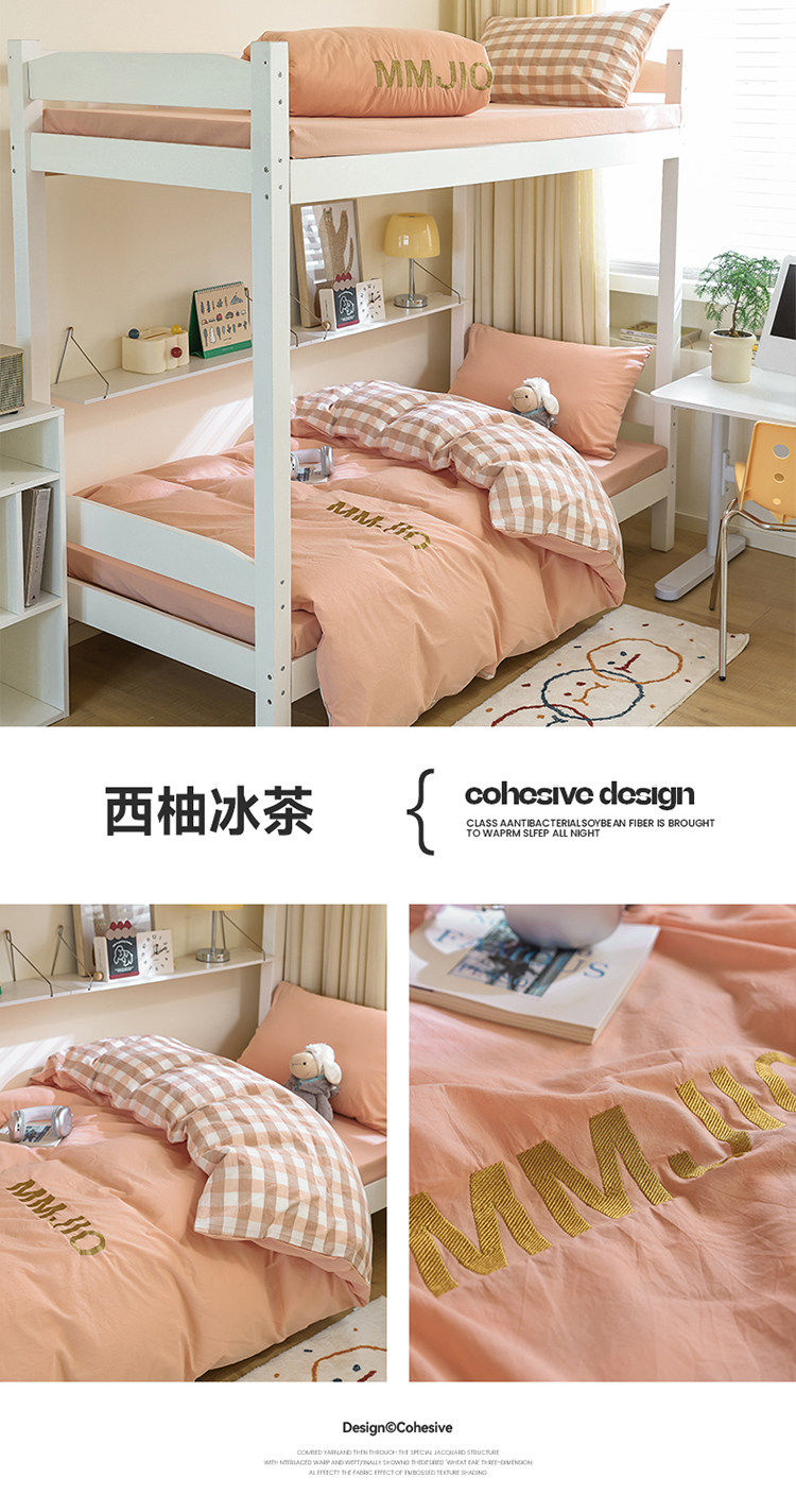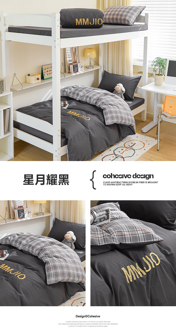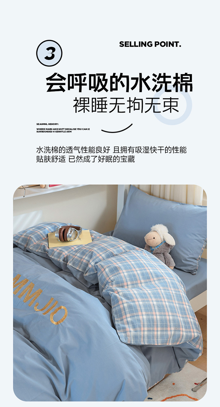 無印良品學生床品宿捨單人床三件套純棉全棉被套純色拼格子四件套