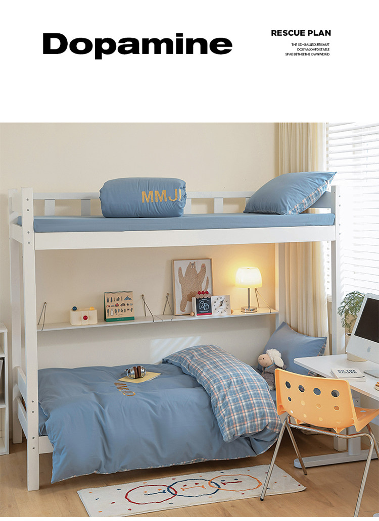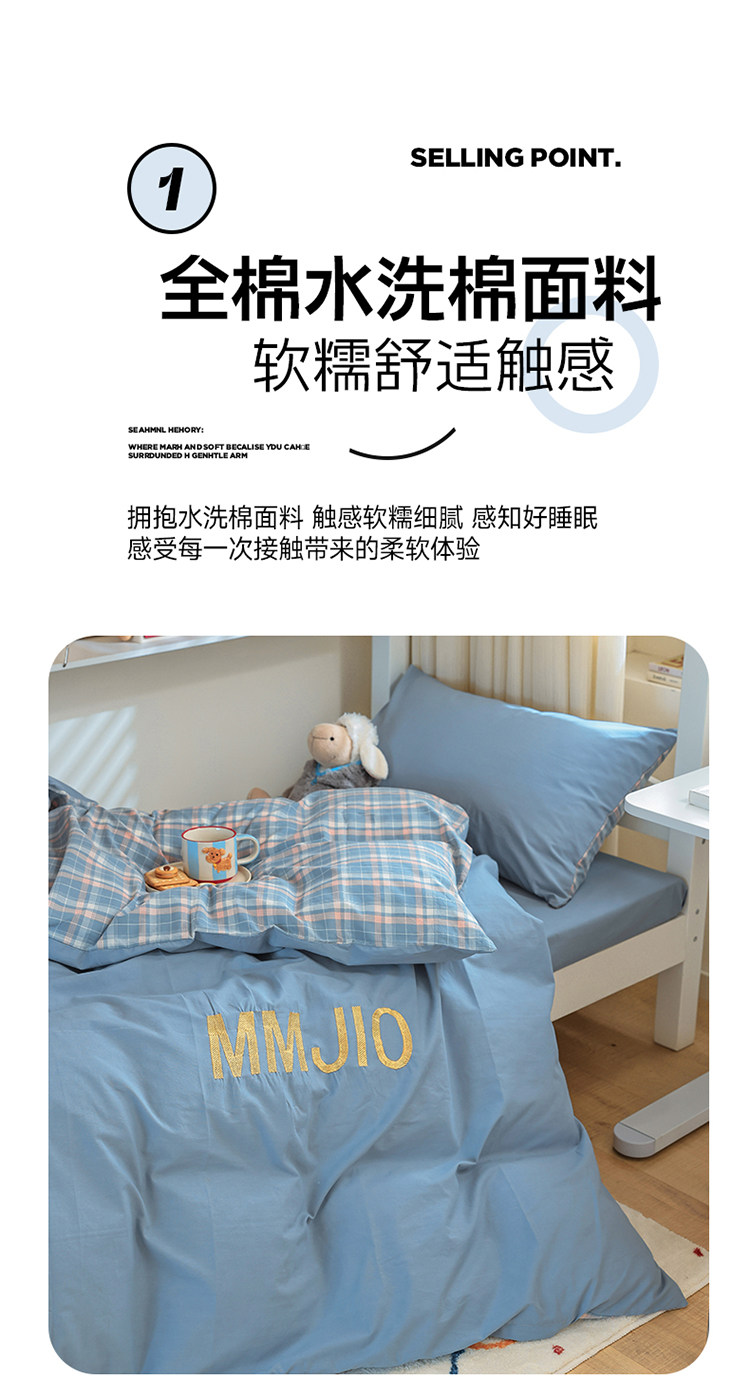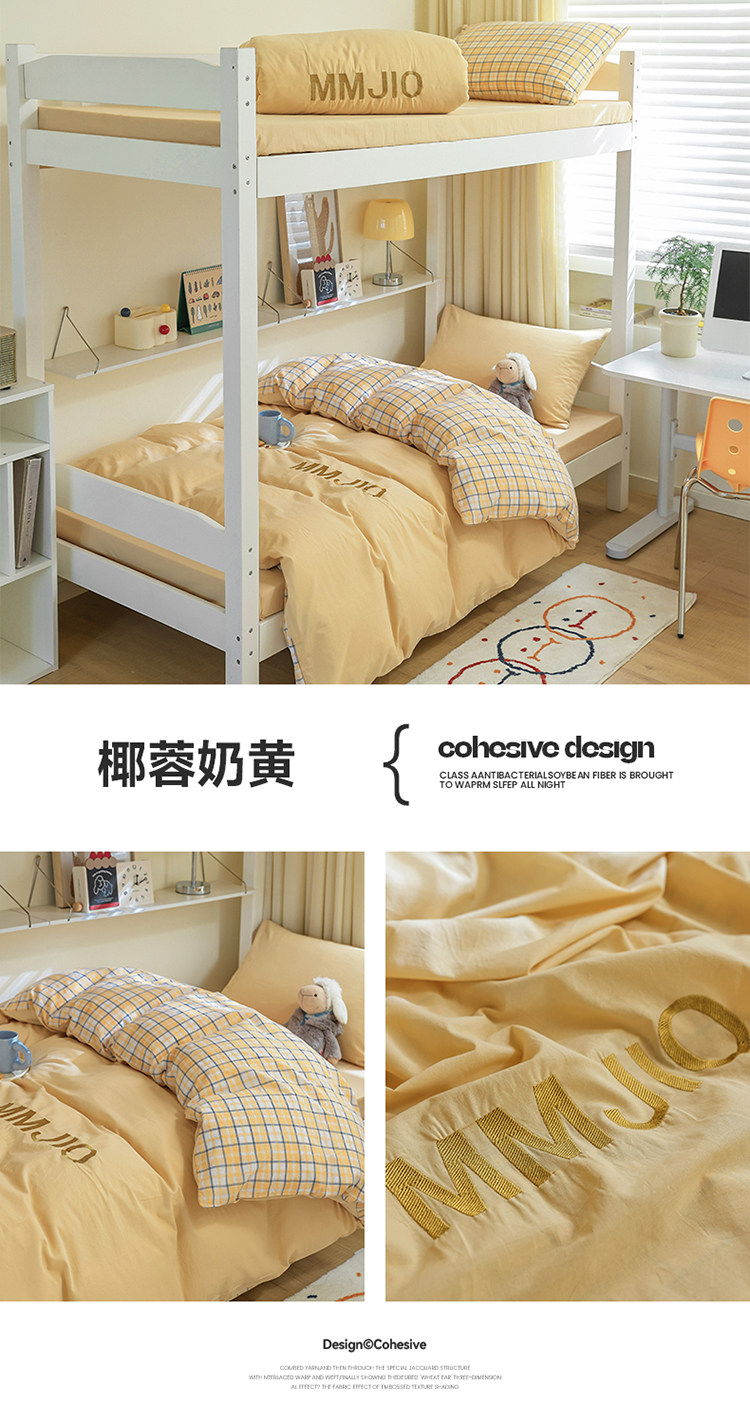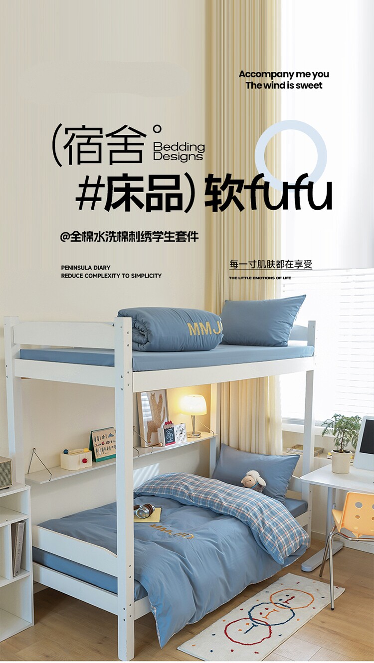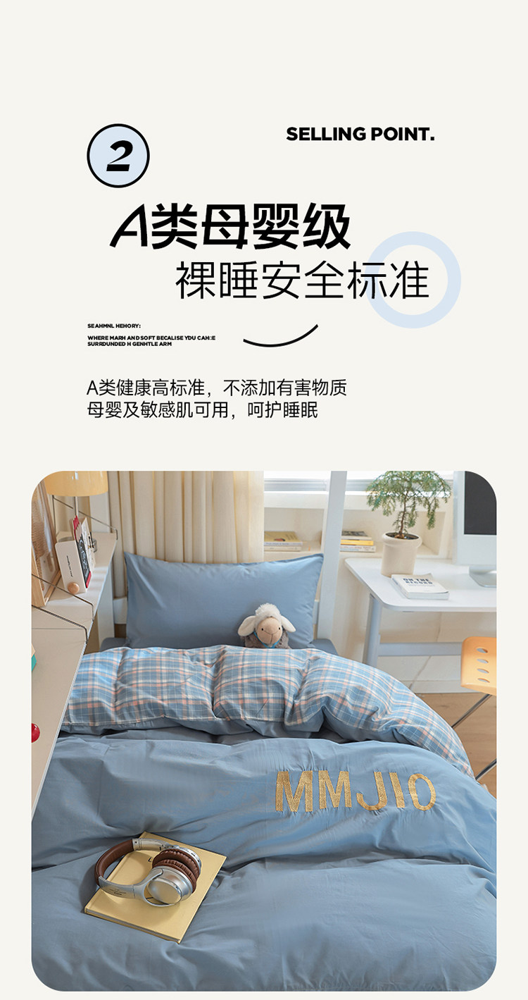 無印良品學生床品宿捨單人床三件套純棉全棉被套純色拼格子四件套