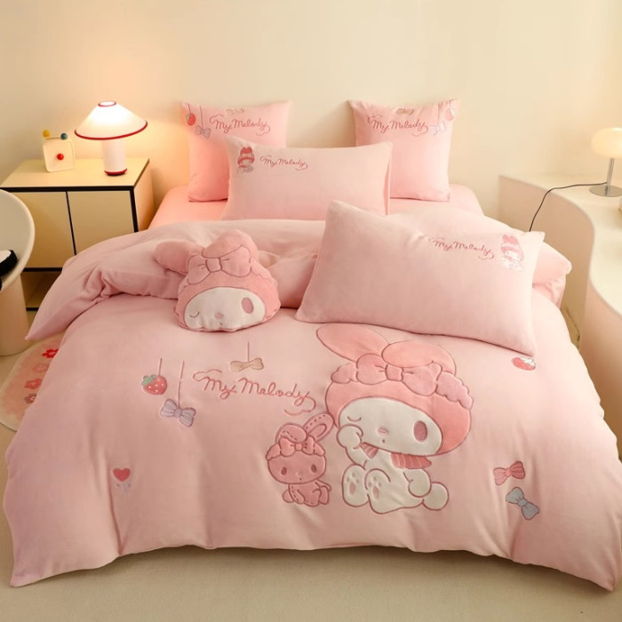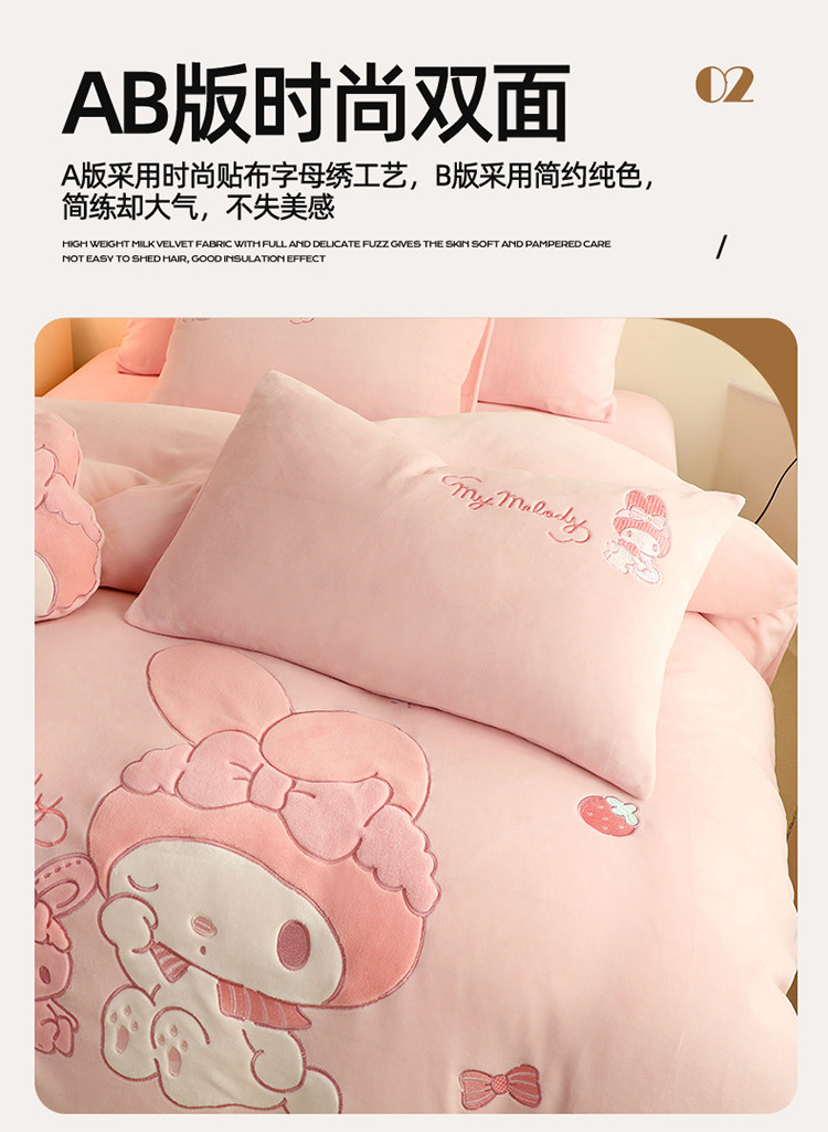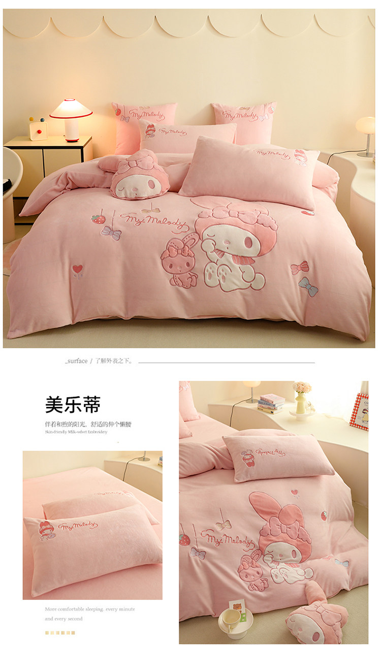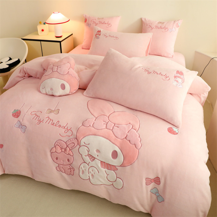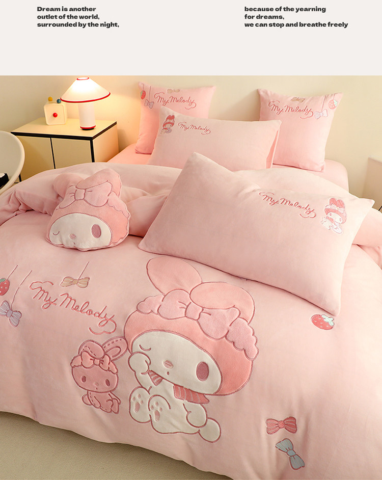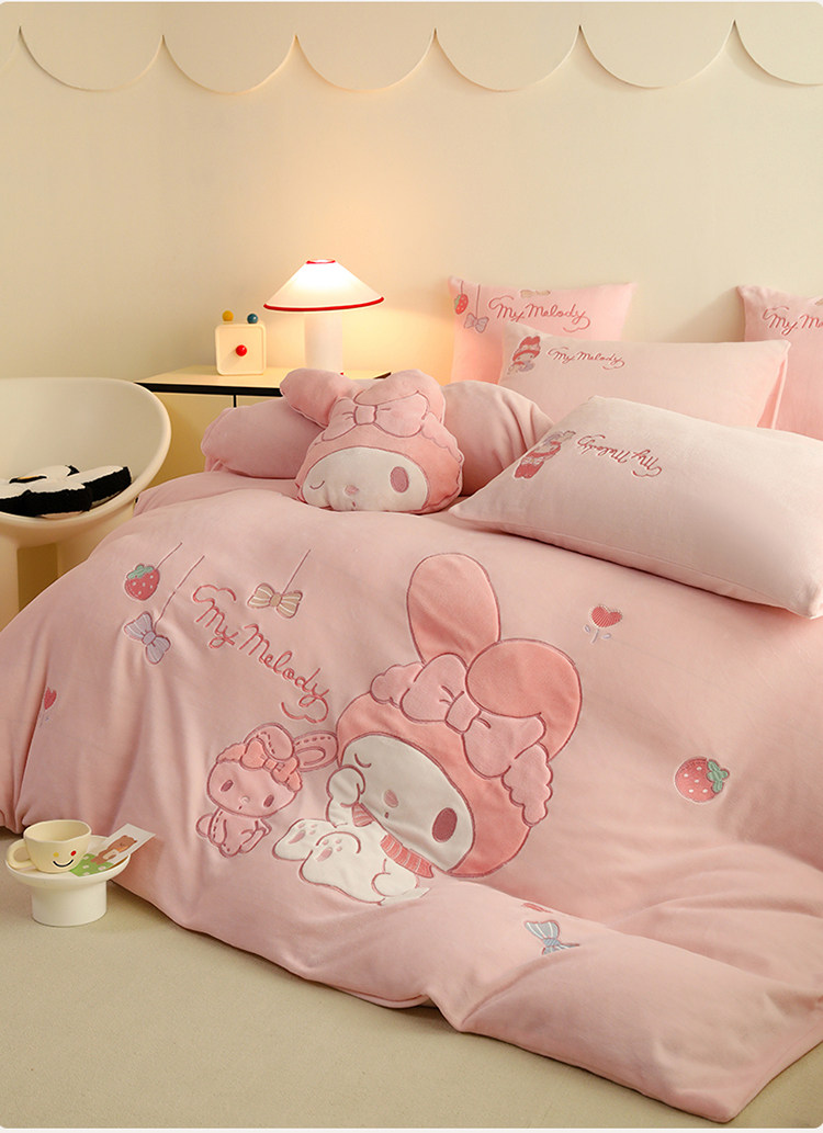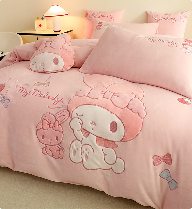 少女心美樂蒂牛奶絨床上四件套冬季兒童加厚珊瑚絨被套三件套女孩