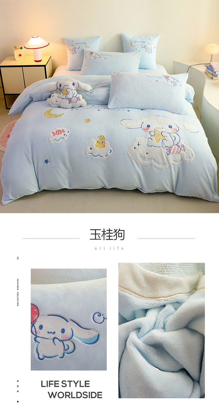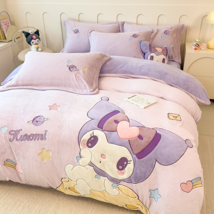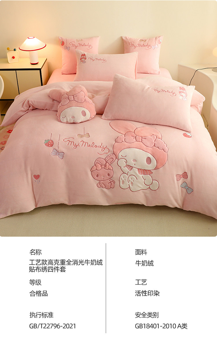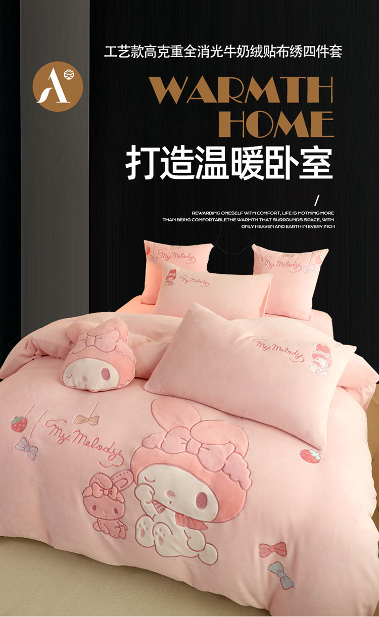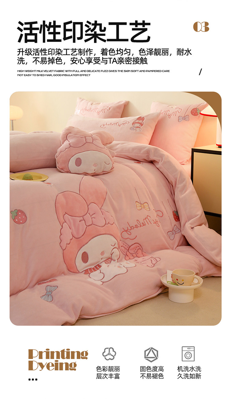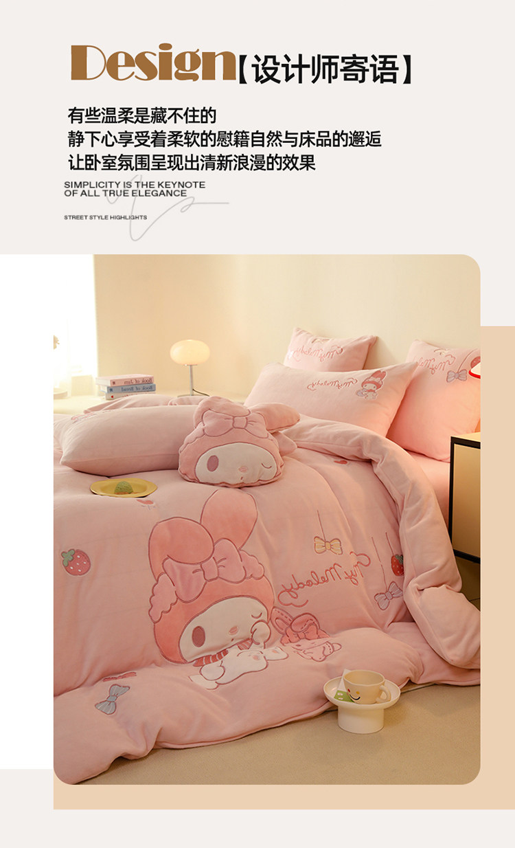 少女心美樂蒂牛奶絨床上四件套冬季兒童加厚珊瑚絨被套三件套女孩