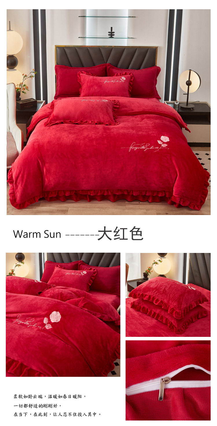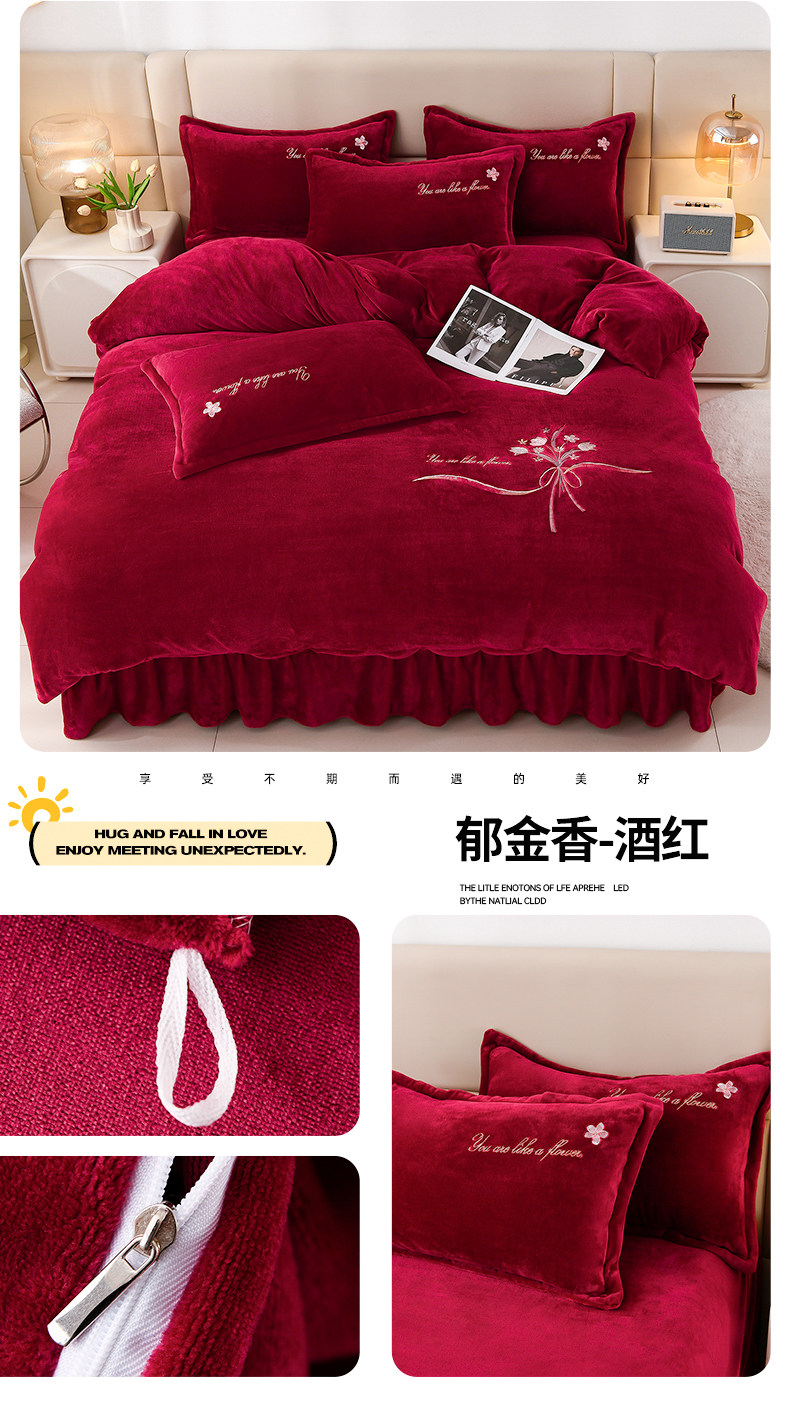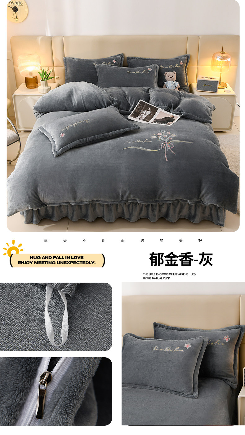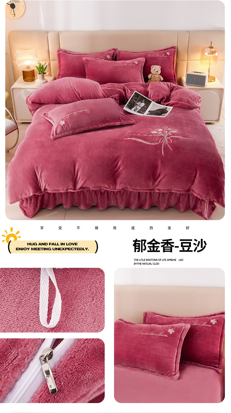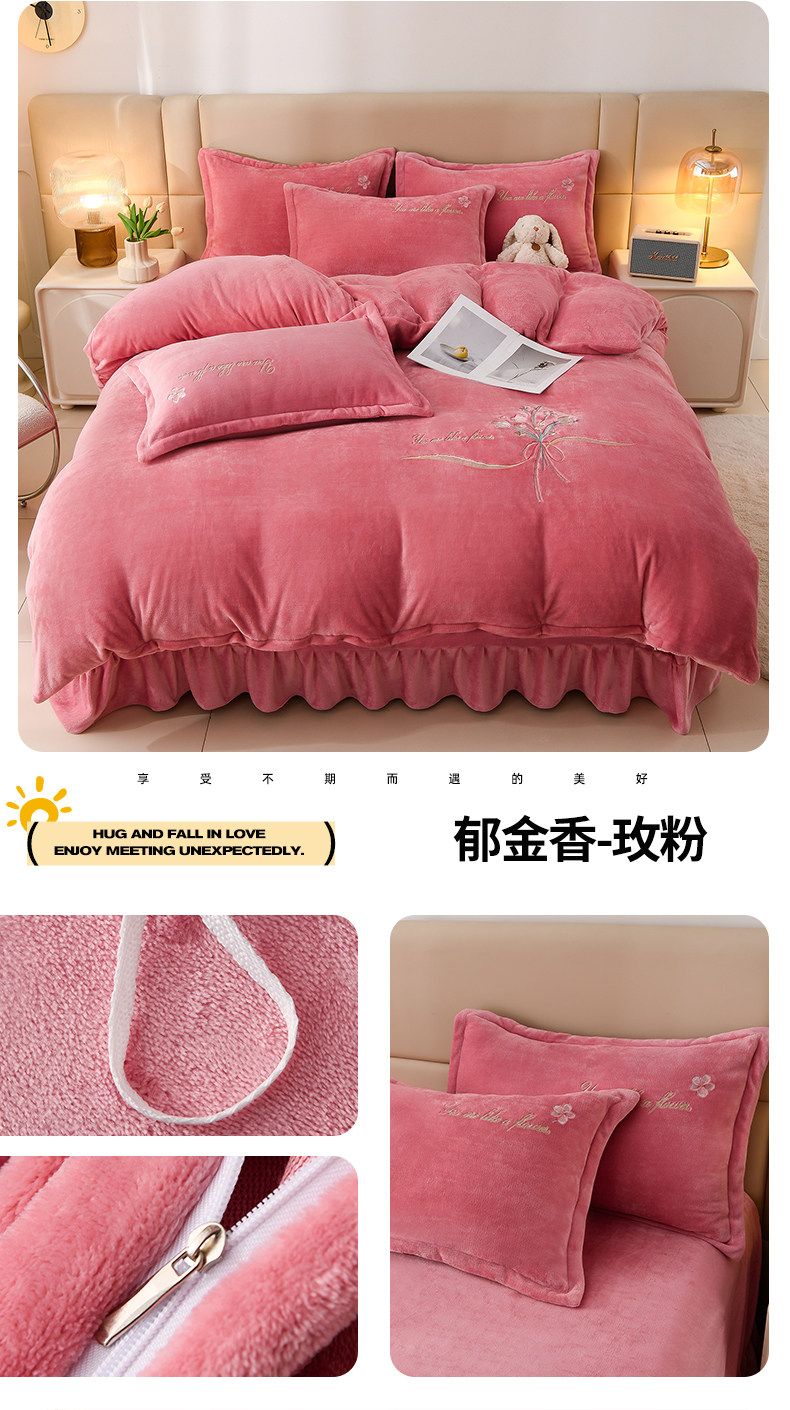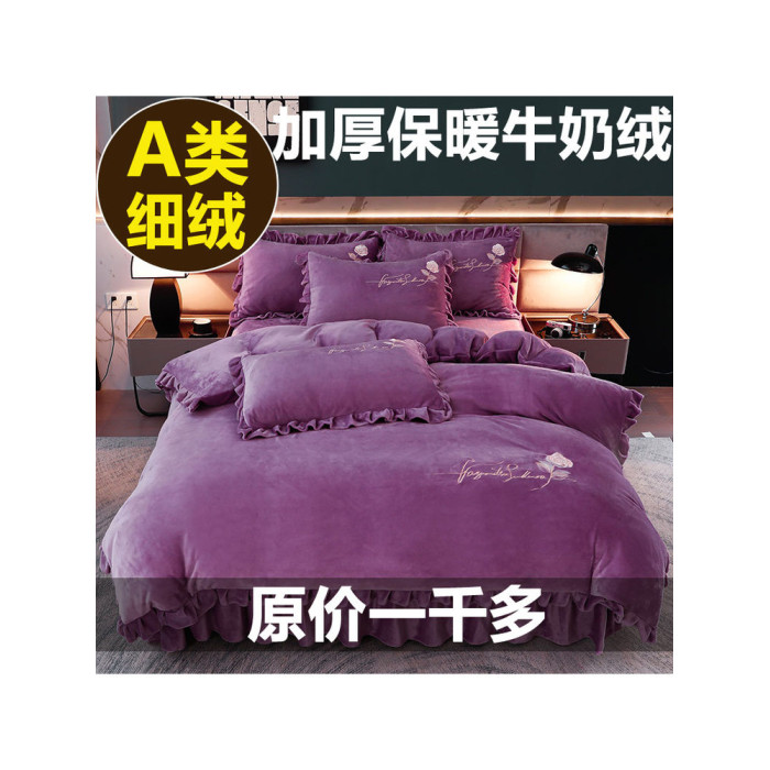 加厚牛奶金貂絨四件套冬季珊瑚絨雙面毛絨法蘭絨被套床裙床上用品