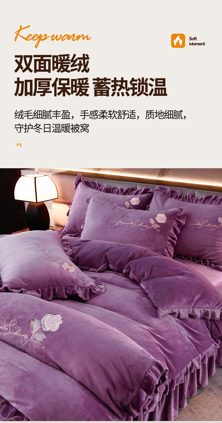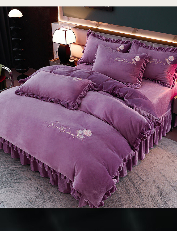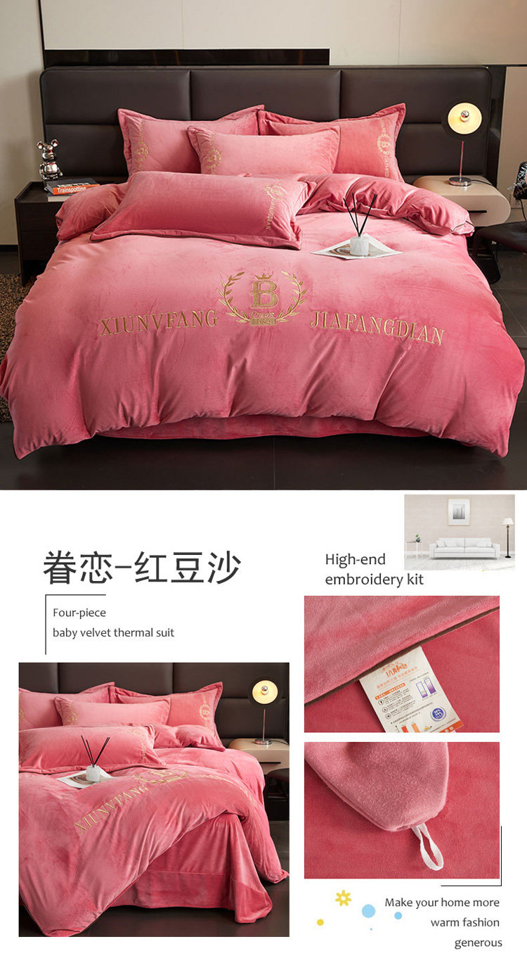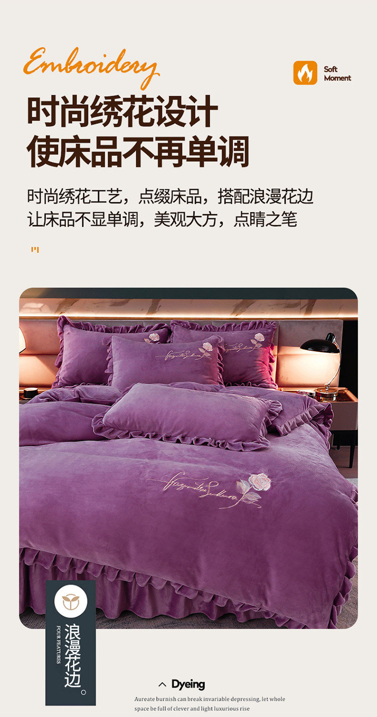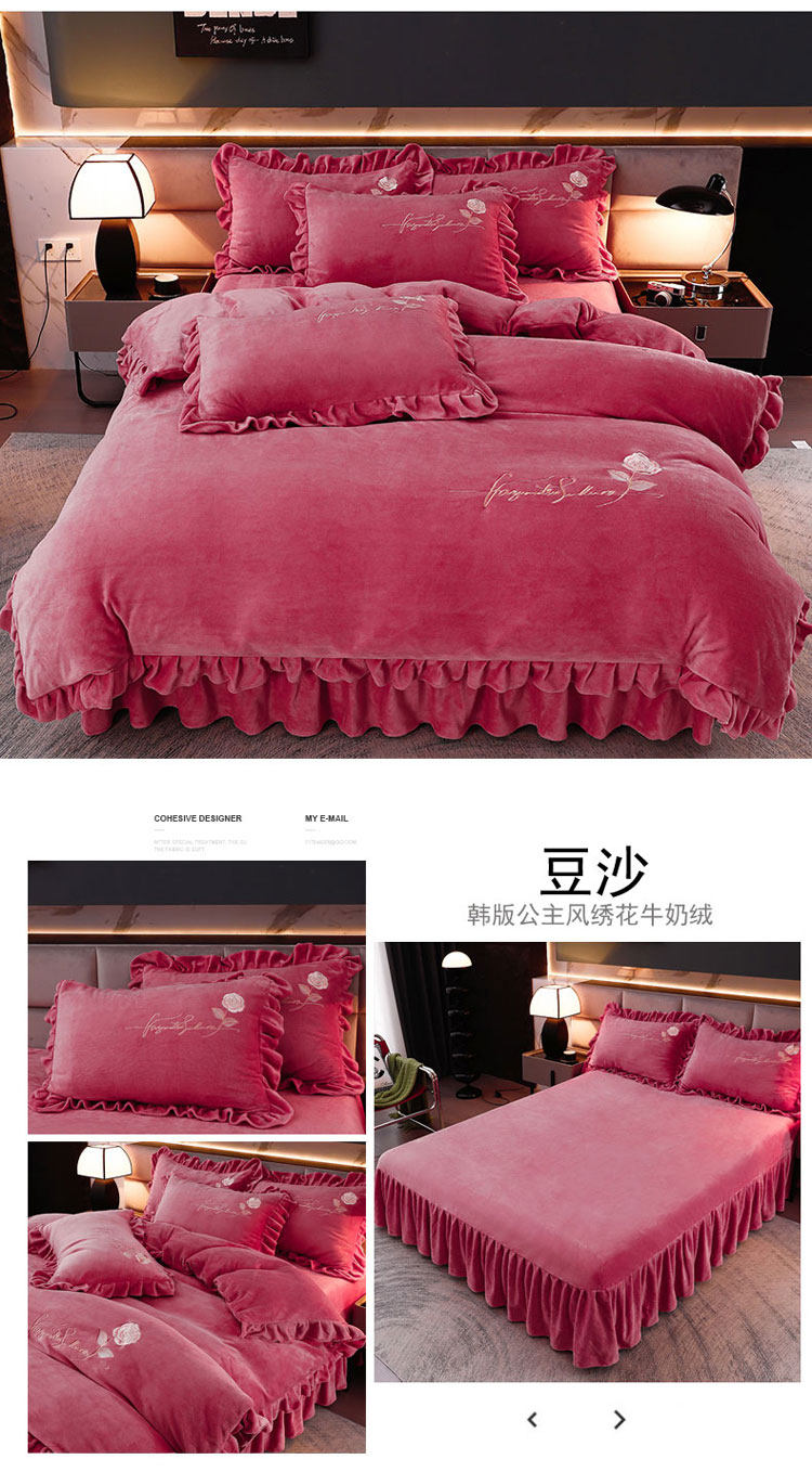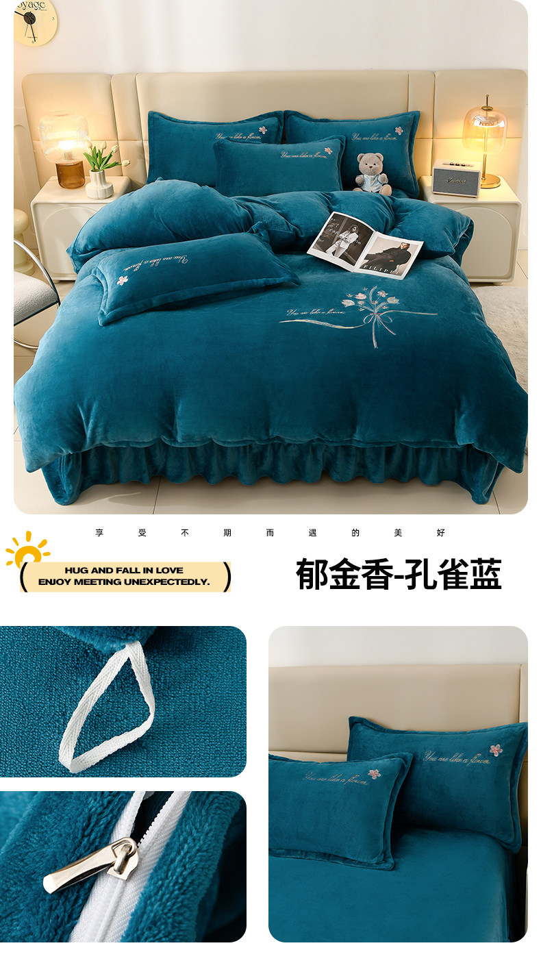加厚牛奶金貂絨四件套冬季珊瑚絨雙面毛絨法蘭絨被套床裙床上用品