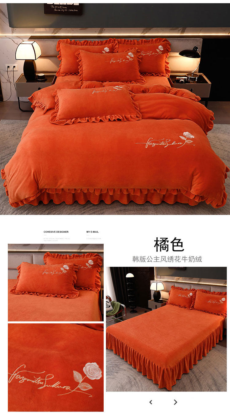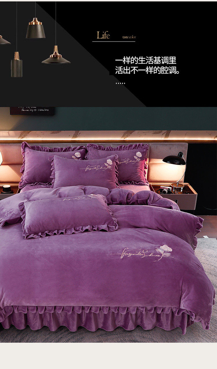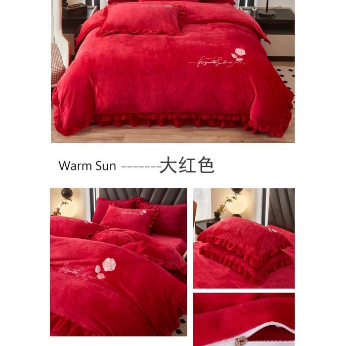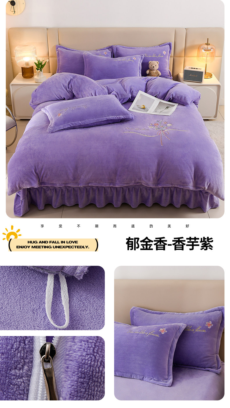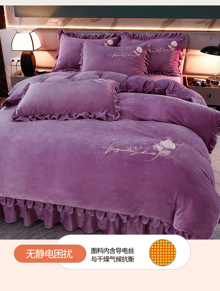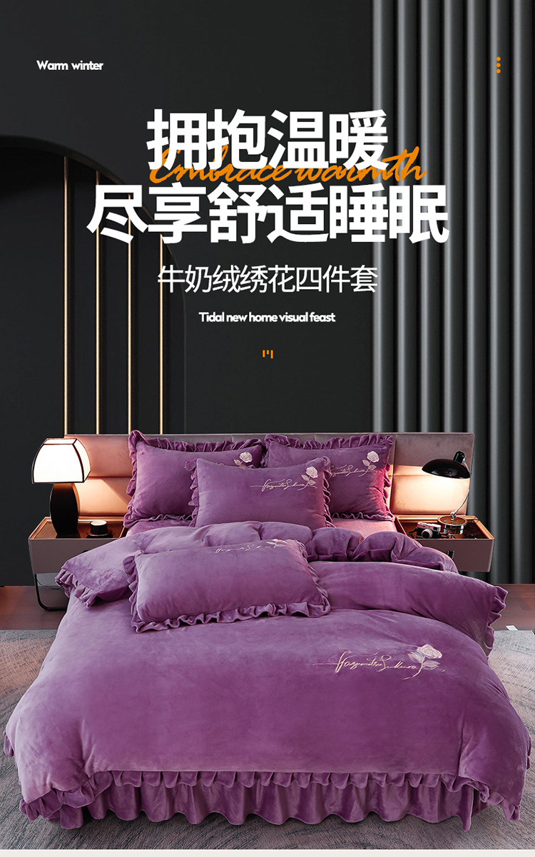 加厚牛奶金貂絨四件套冬季珊瑚絨雙面毛絨法蘭絨被套床裙床上用品