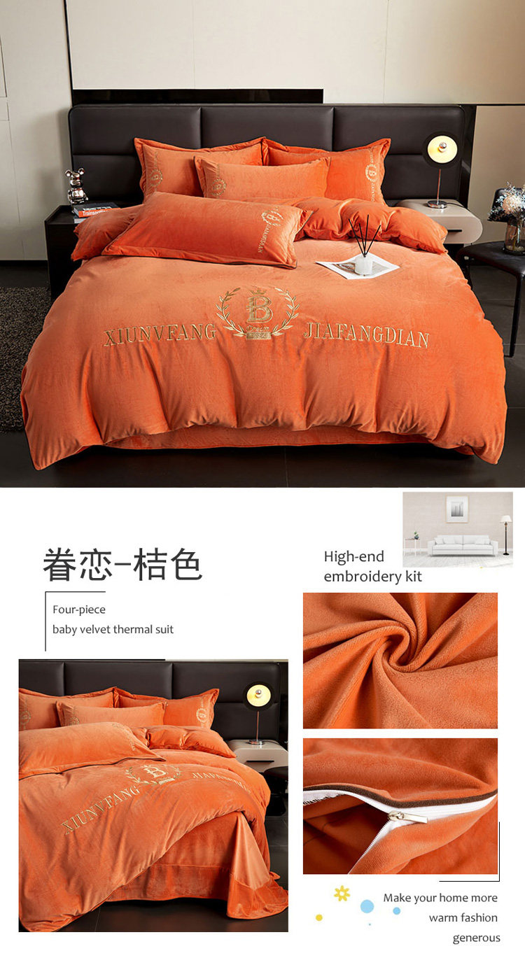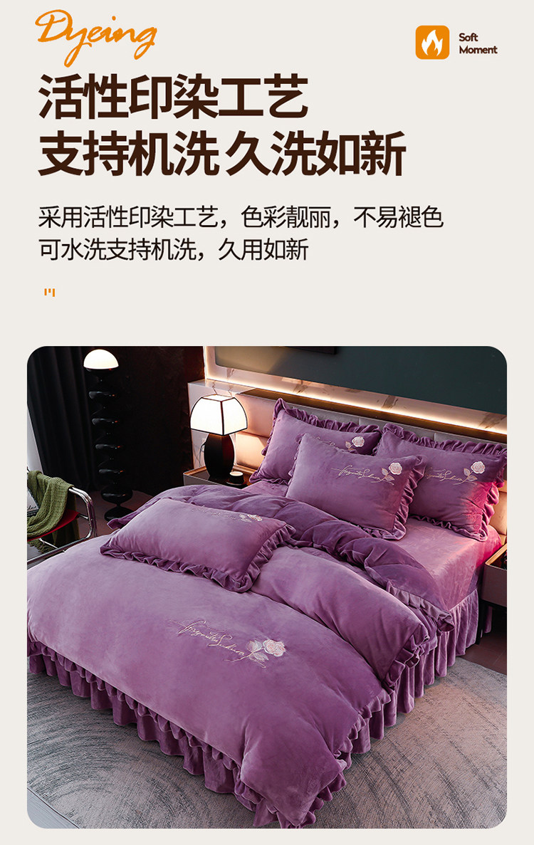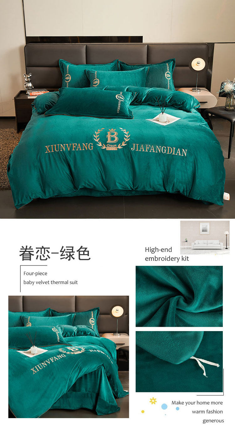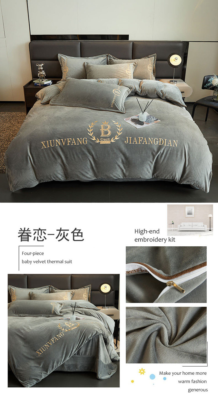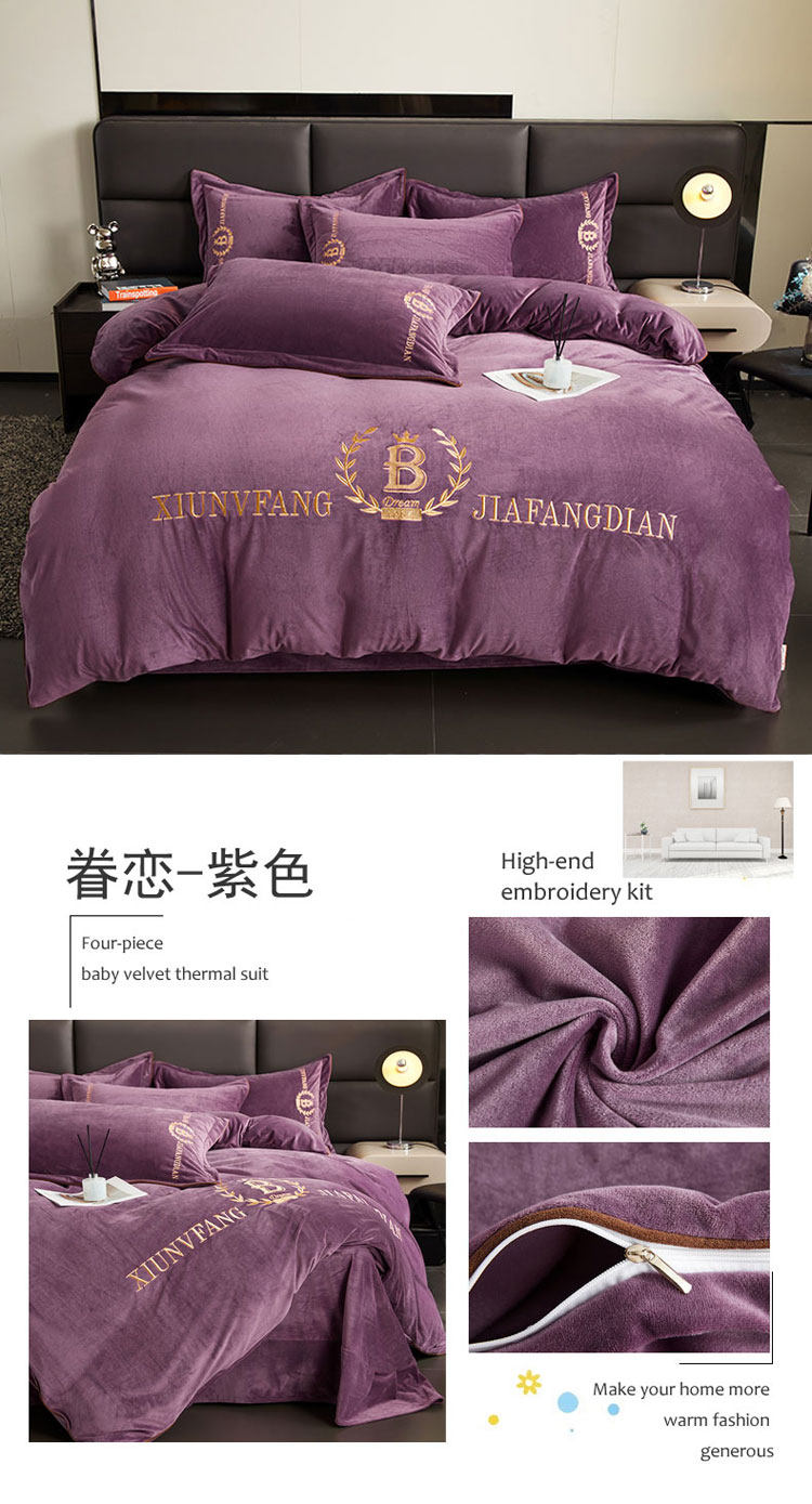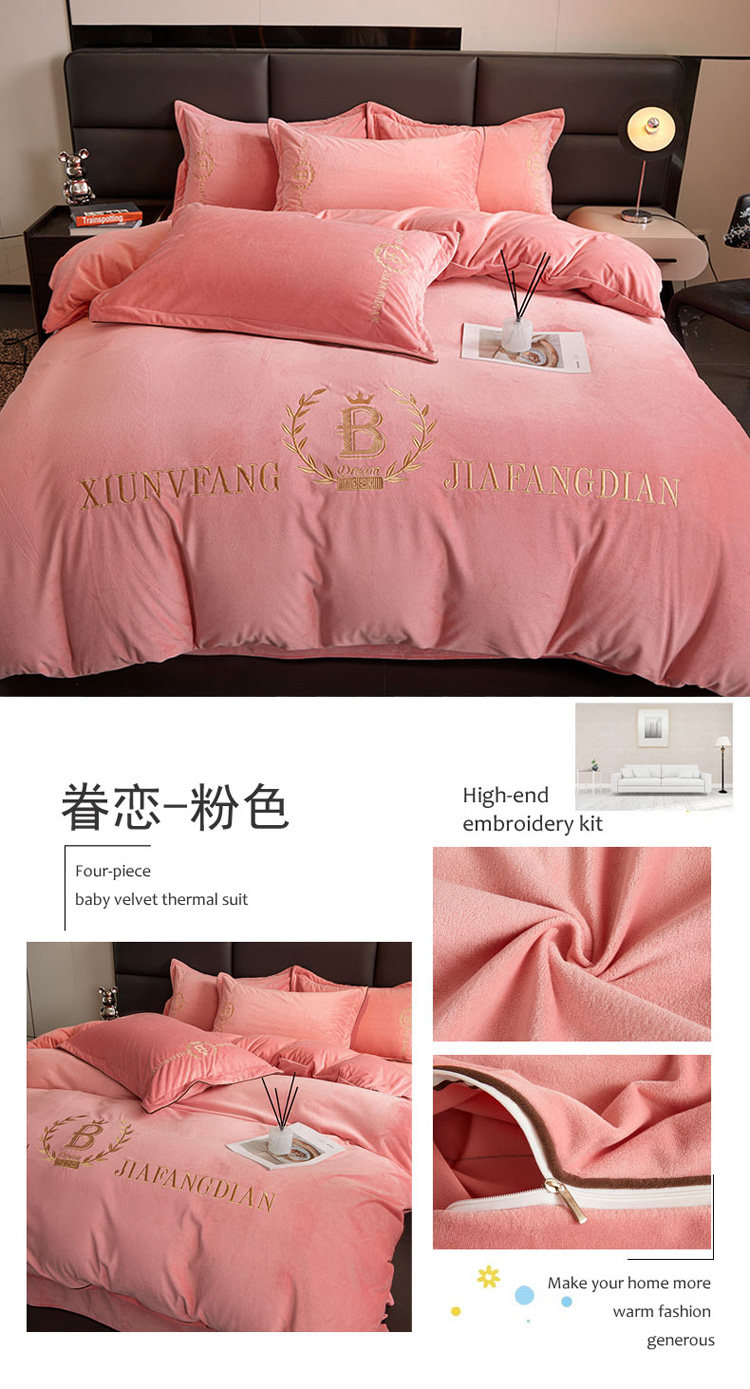 加厚牛奶金貂絨四件套冬季珊瑚絨雙面毛絨法蘭絨被套床裙床上用品
