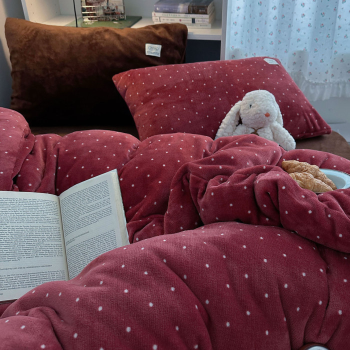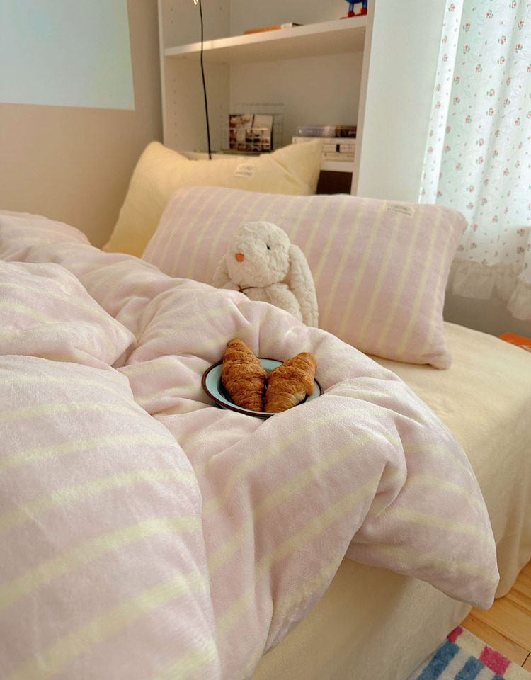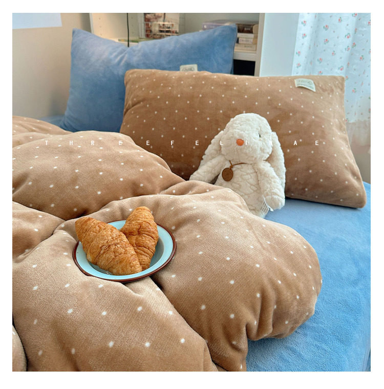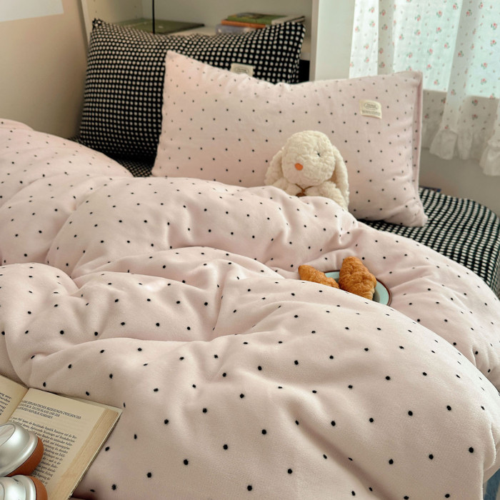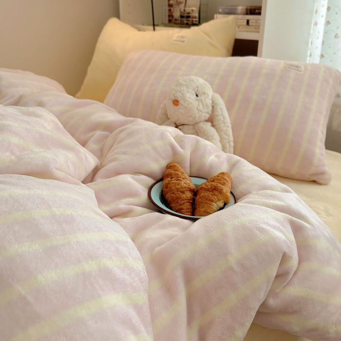 【花臉貓】雲朵fufu!秋冬少女心加厚牛奶絨保暖柔軟簡約四件套