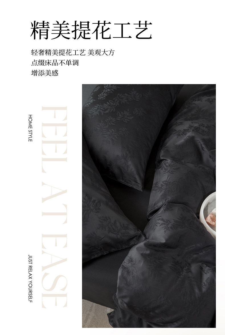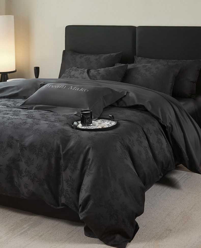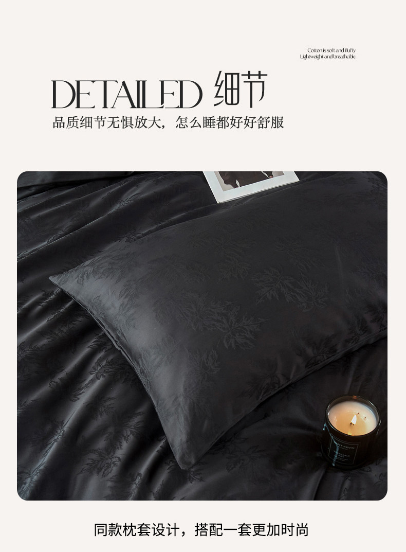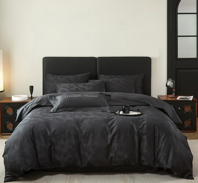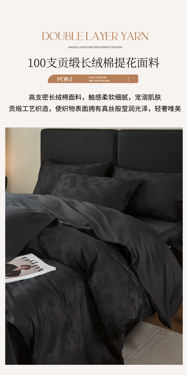 100支全棉黑色四件套輕奢提花純棉床上被套床單床包高級貢緞床品
