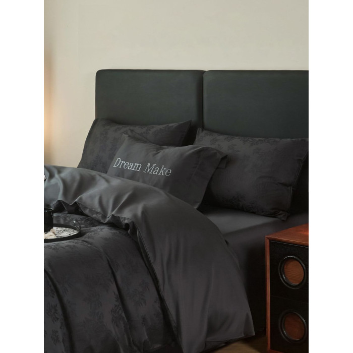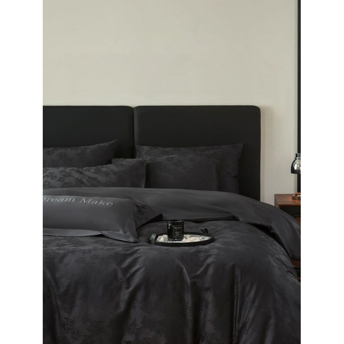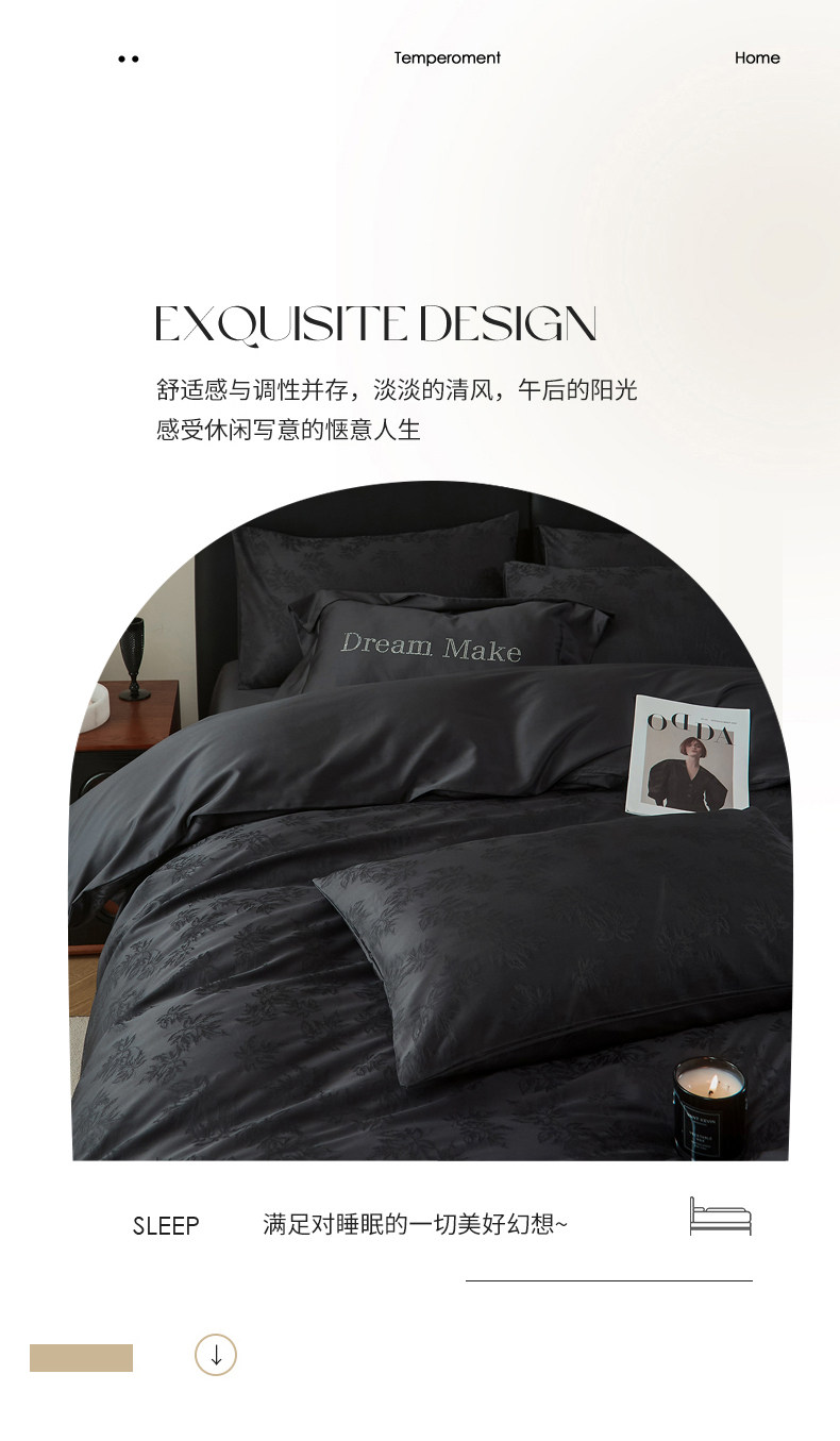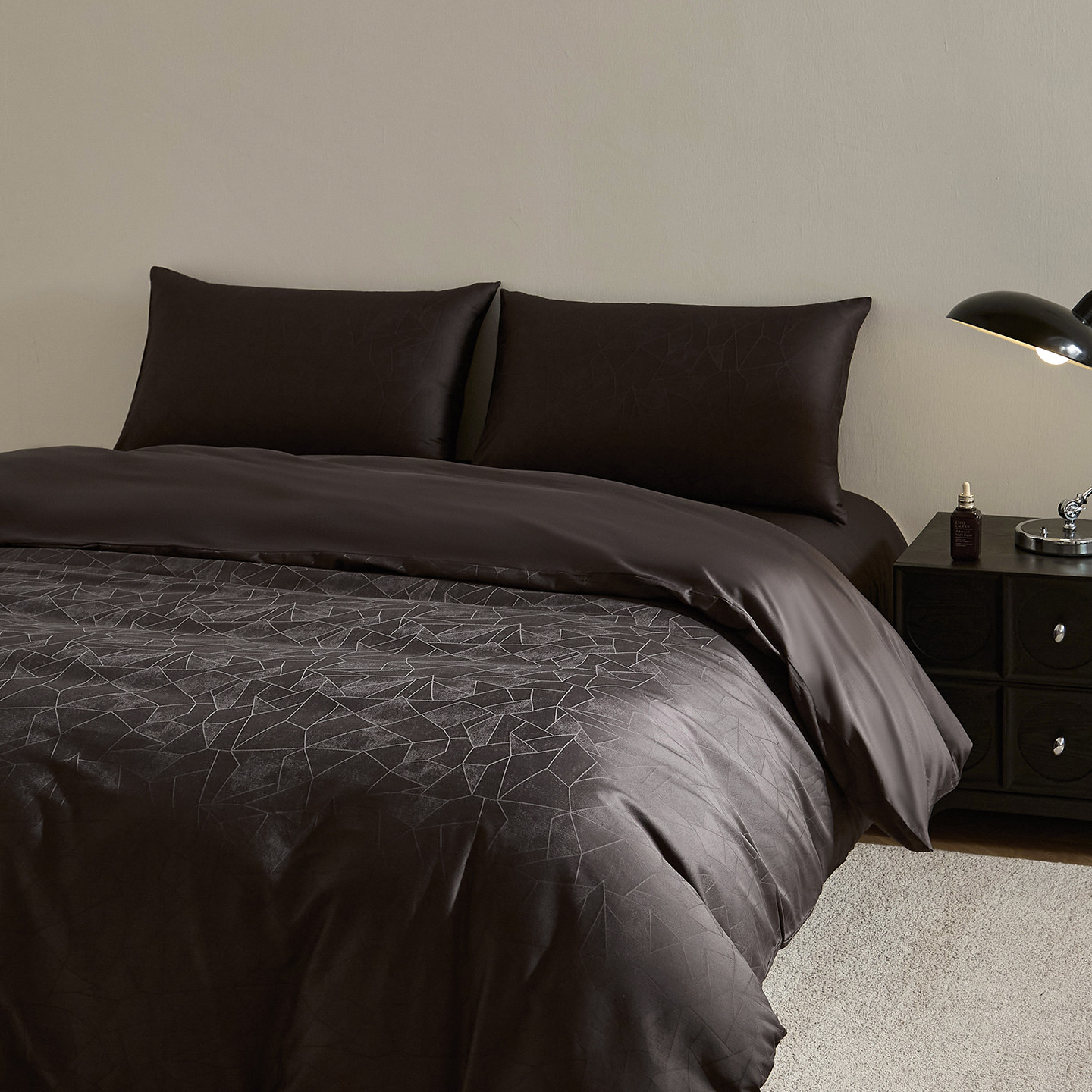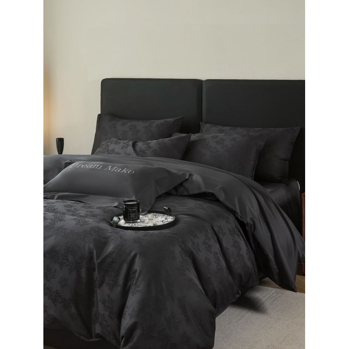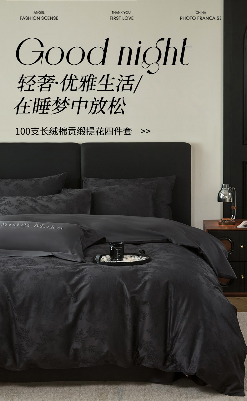 100支全棉黑色四件套輕奢提花純棉床上被套床單床包高級貢緞床品