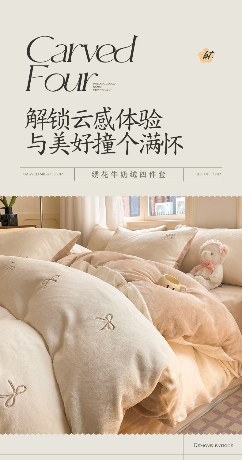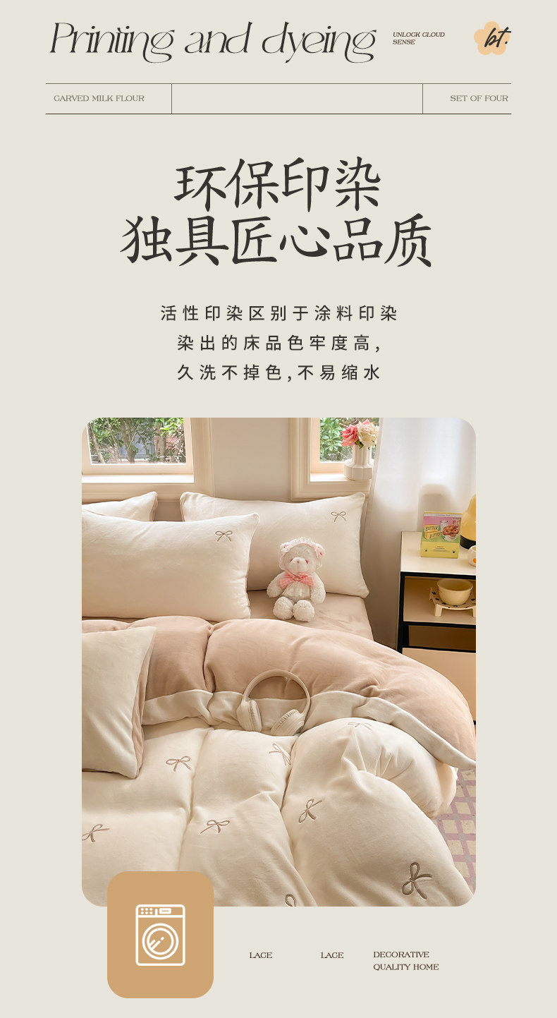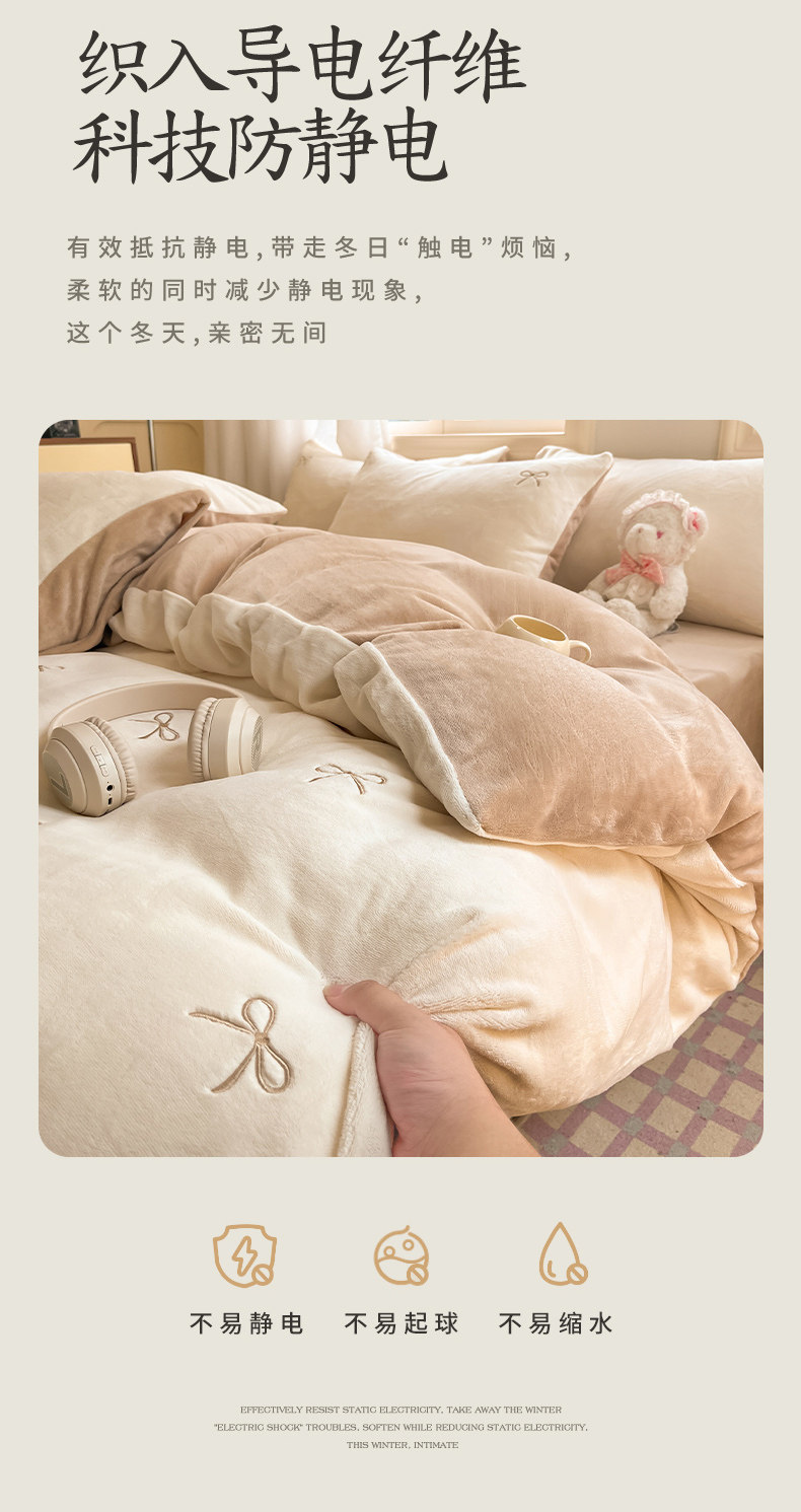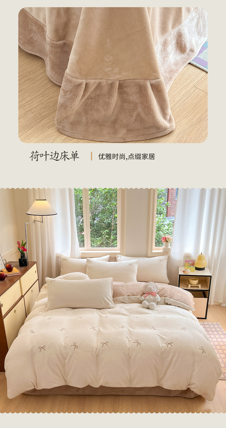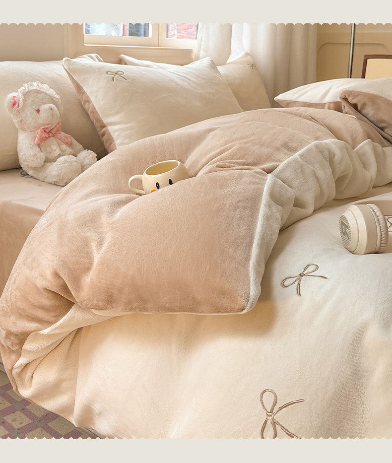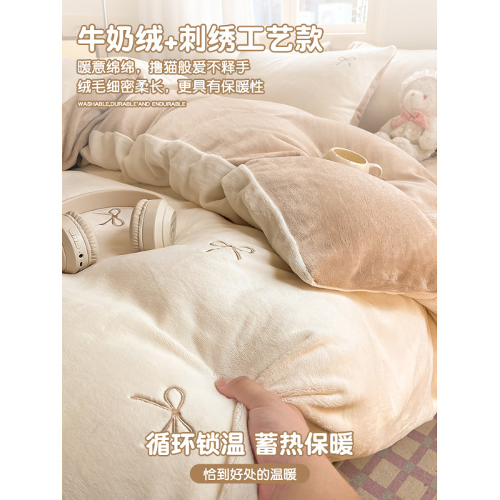 無印良品2025新款牛奶絨床上四件套法蘭珊瑚絨秋冬加厚加絨三件套