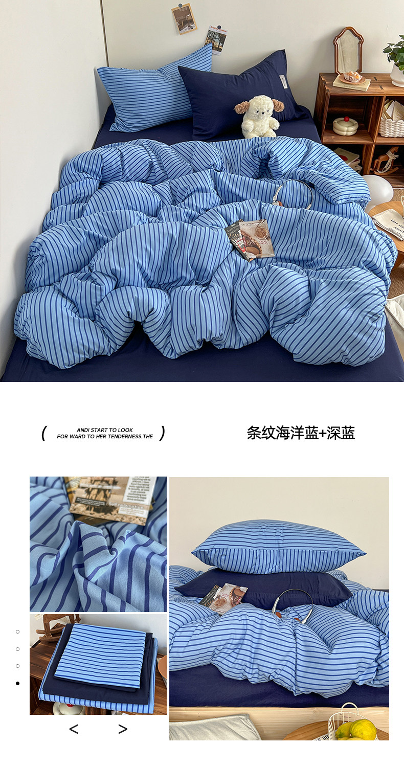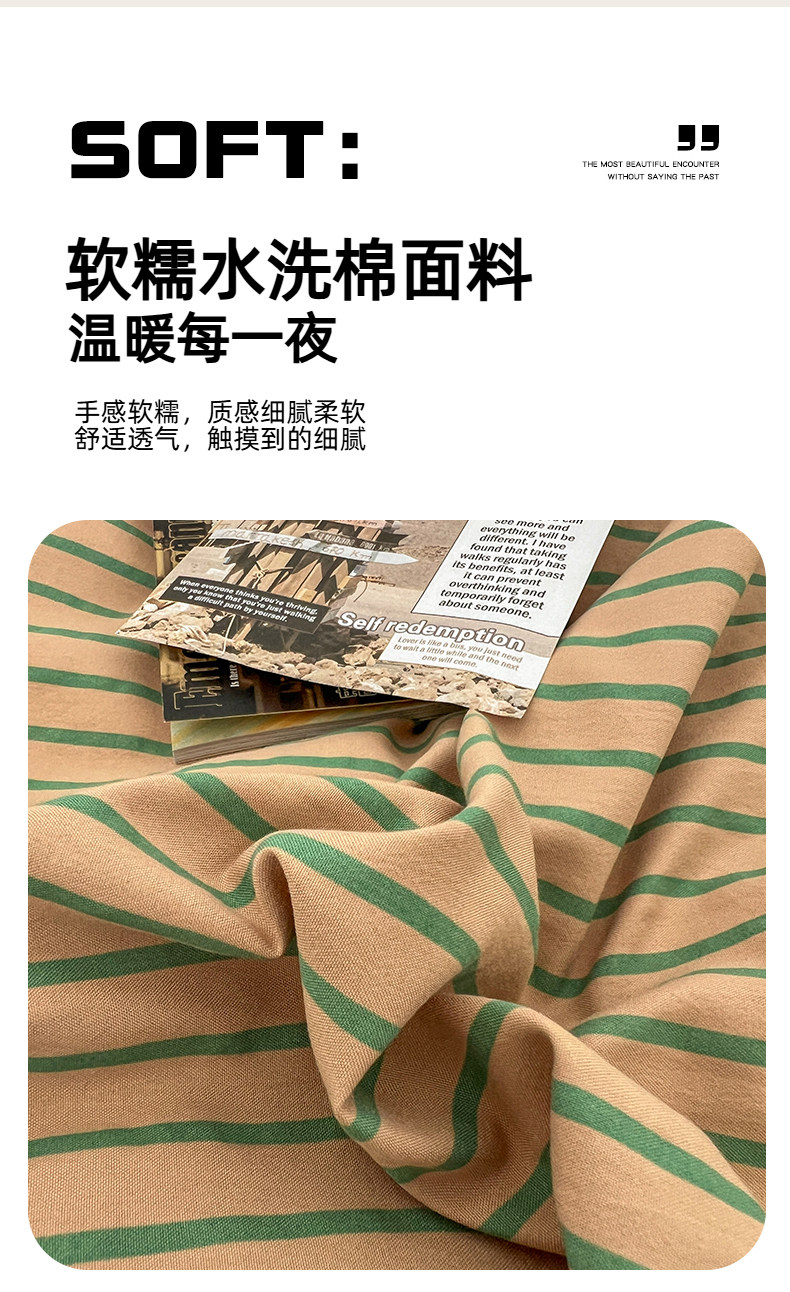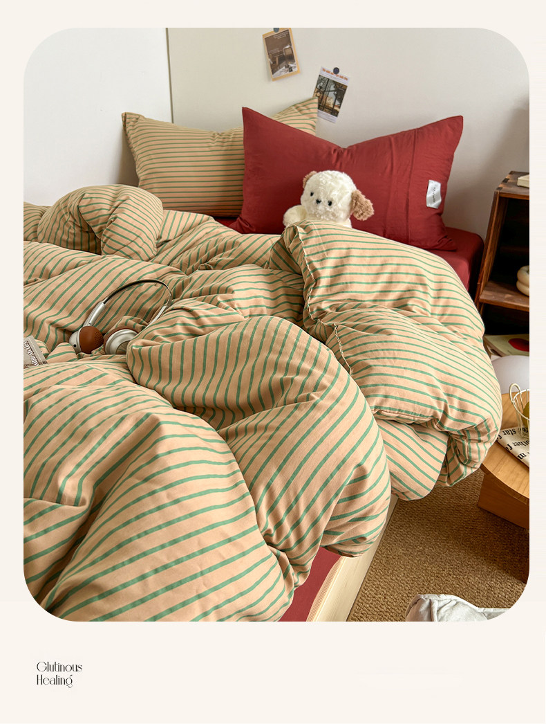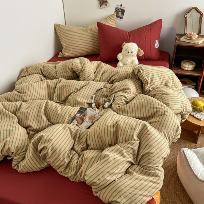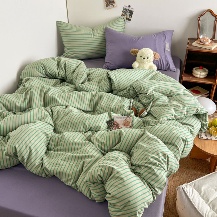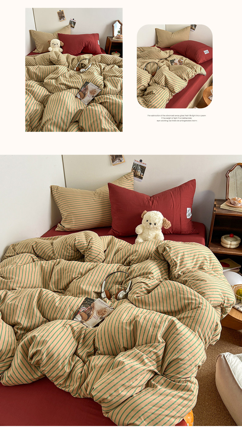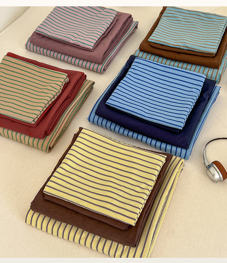 條紋水洗棉簡約四件套透氣親膚床品套件臥室居家柔軟肌理被套組合