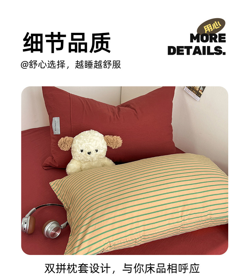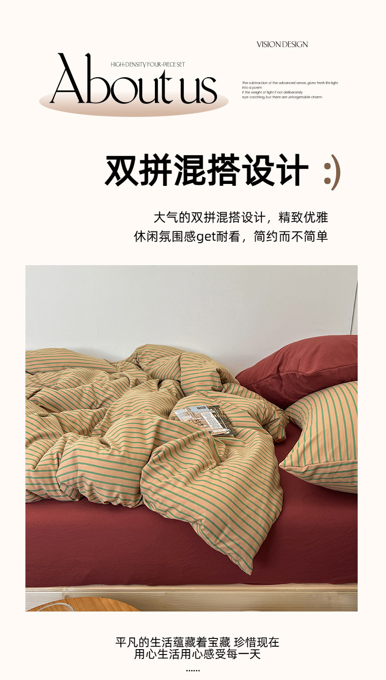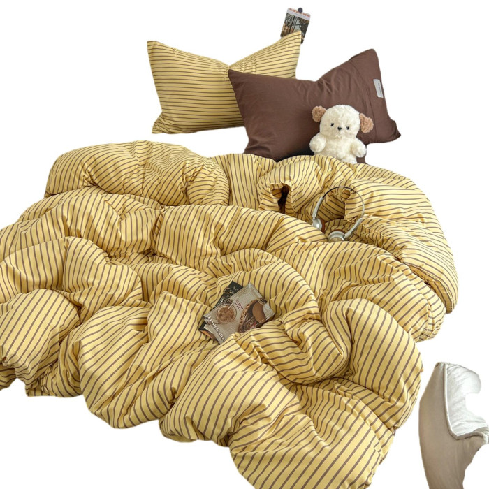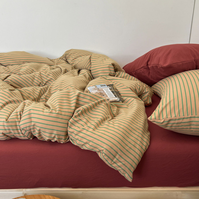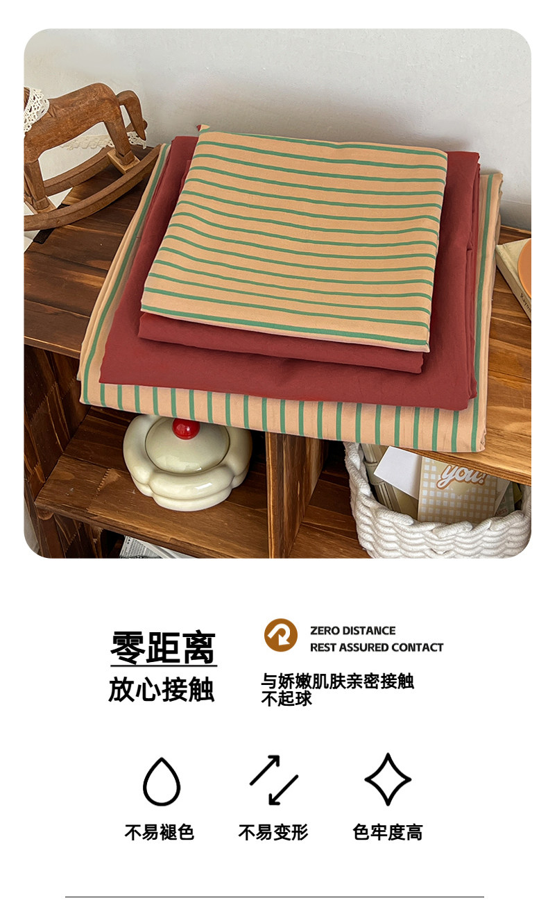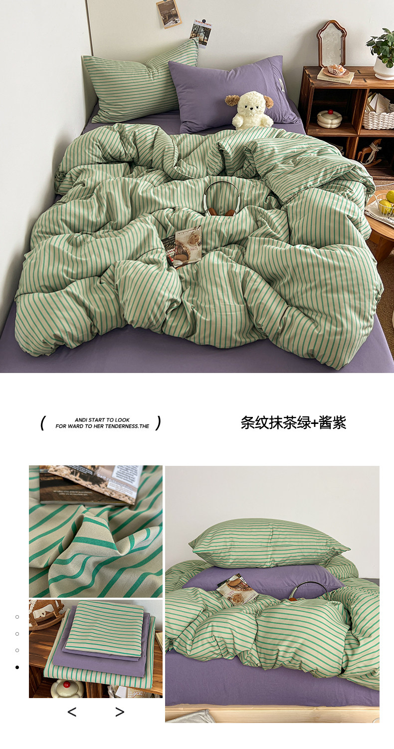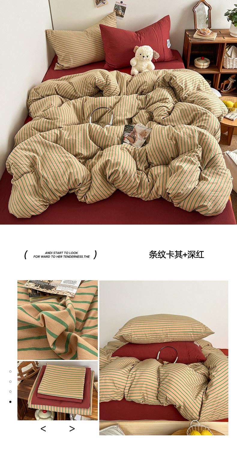 條紋水洗棉簡約四件套透氣親膚床品套件臥室居家柔軟肌理被套組合
