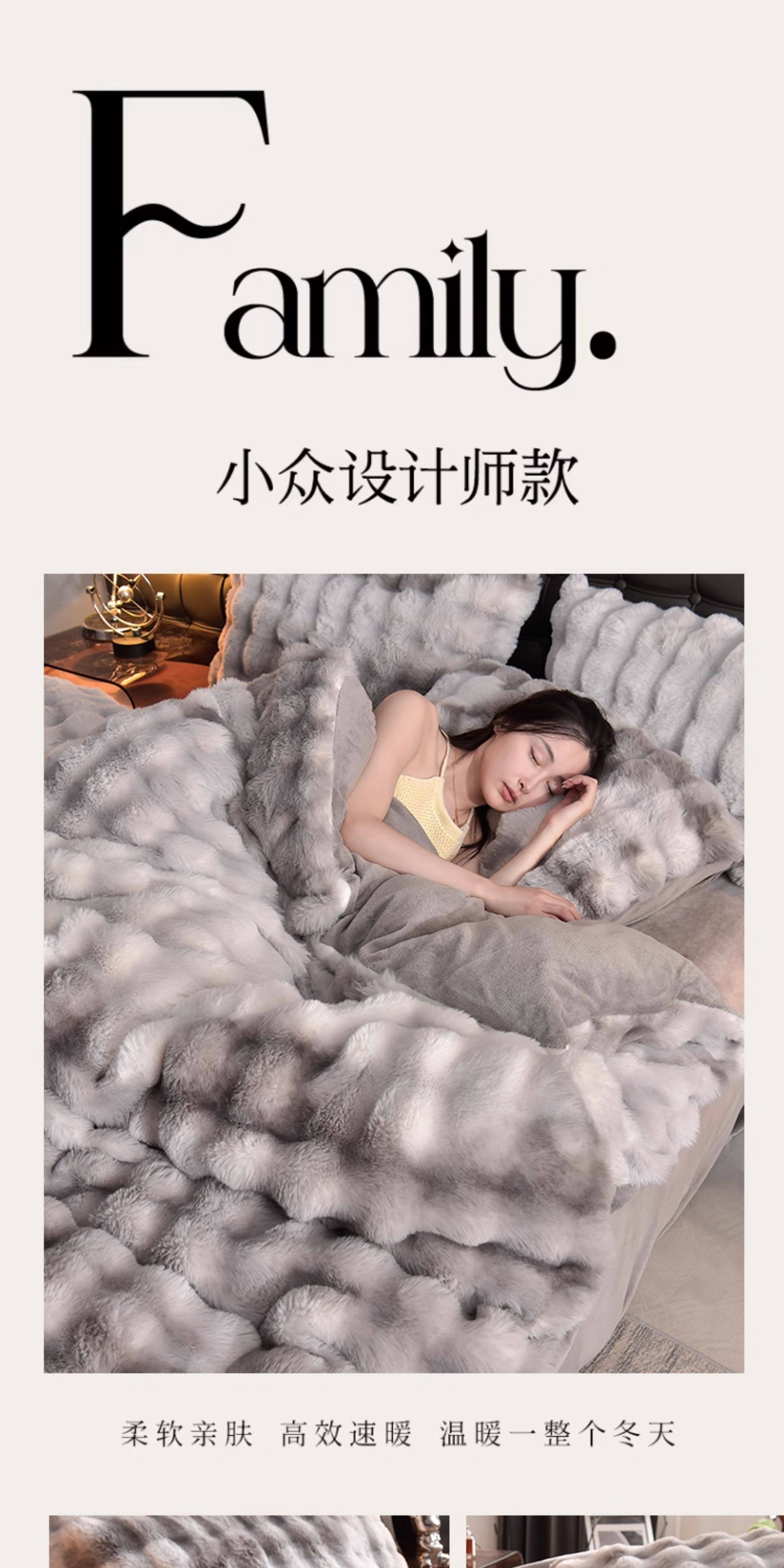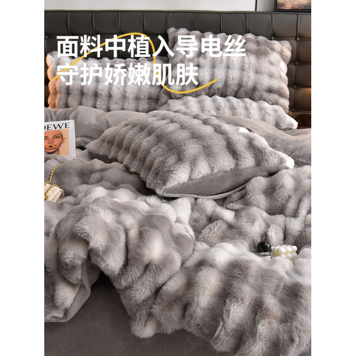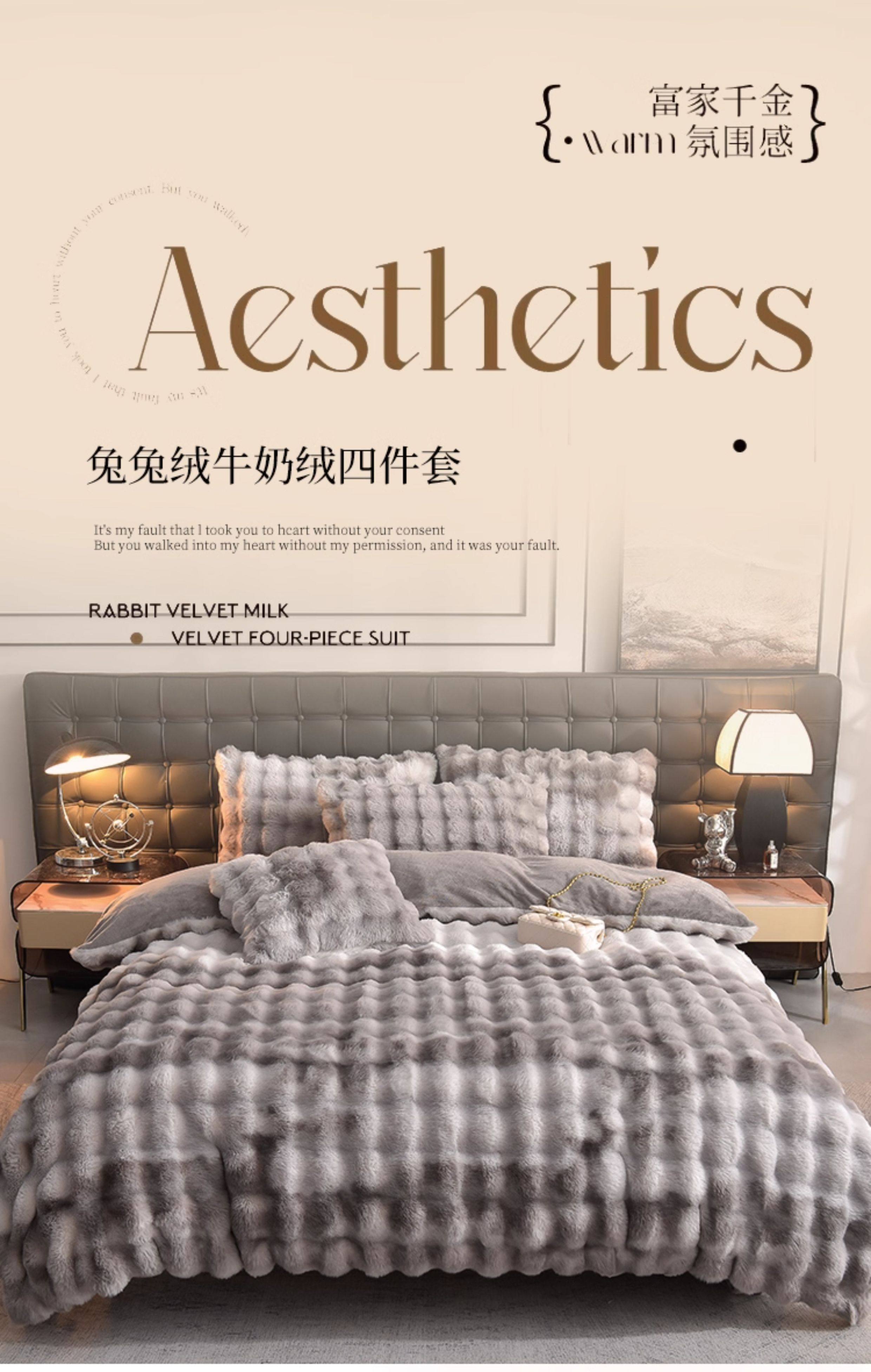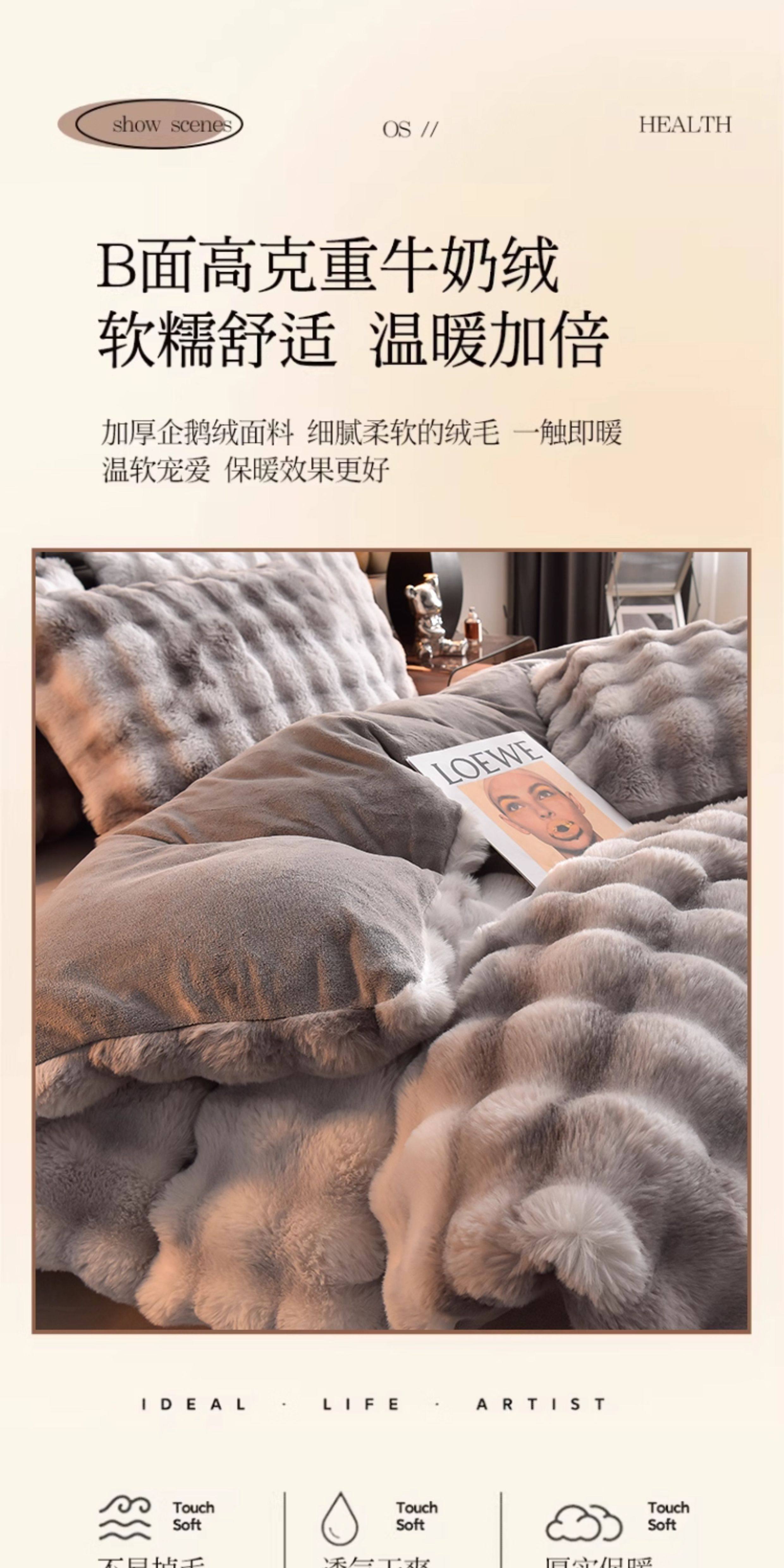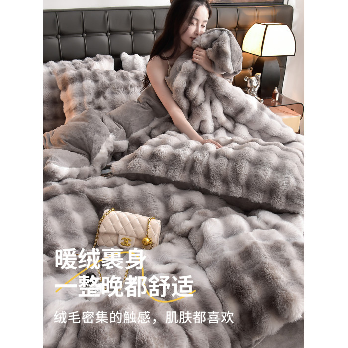輕奢高級感兔毛絨四件套冬季加厚牛奶絨被套珊瑚絨床單款床上用品