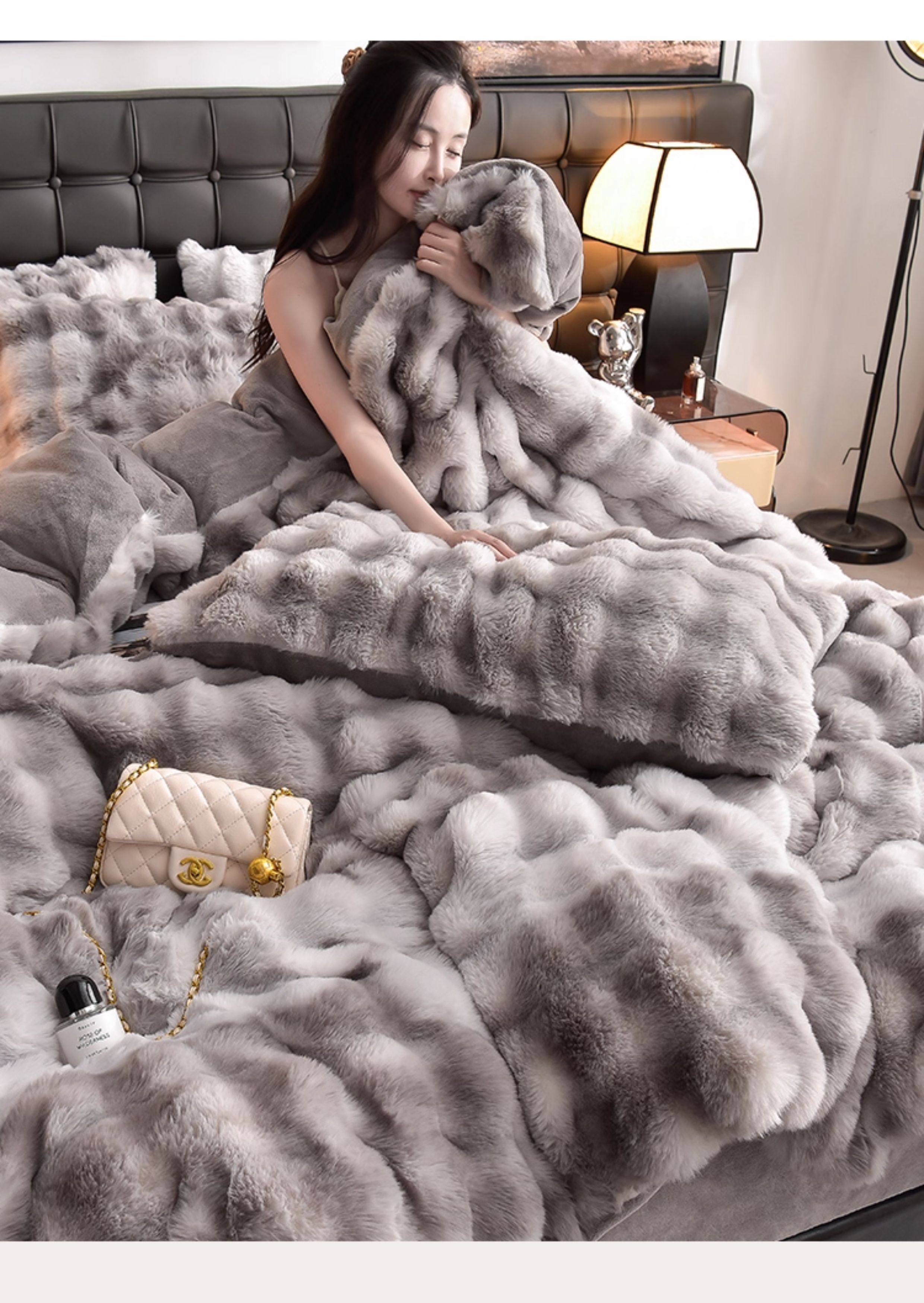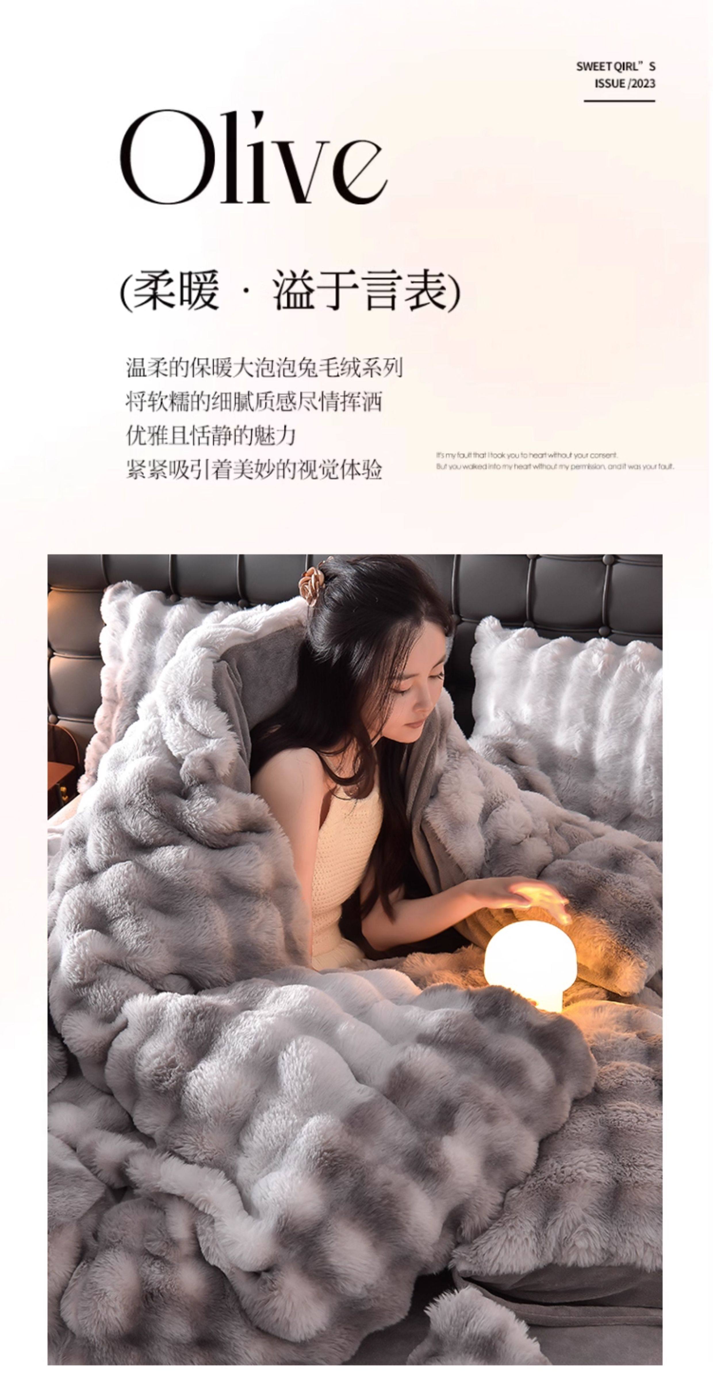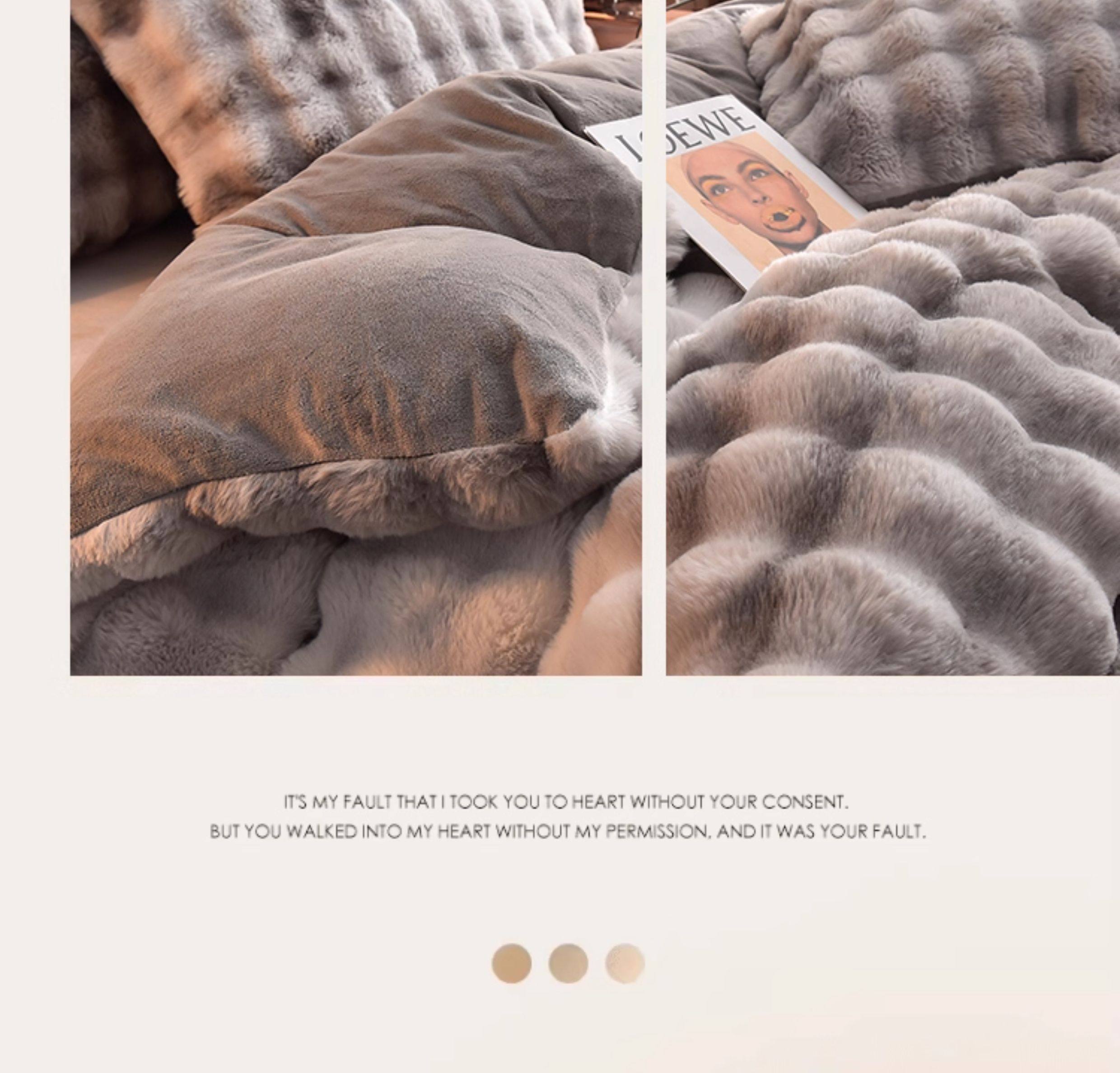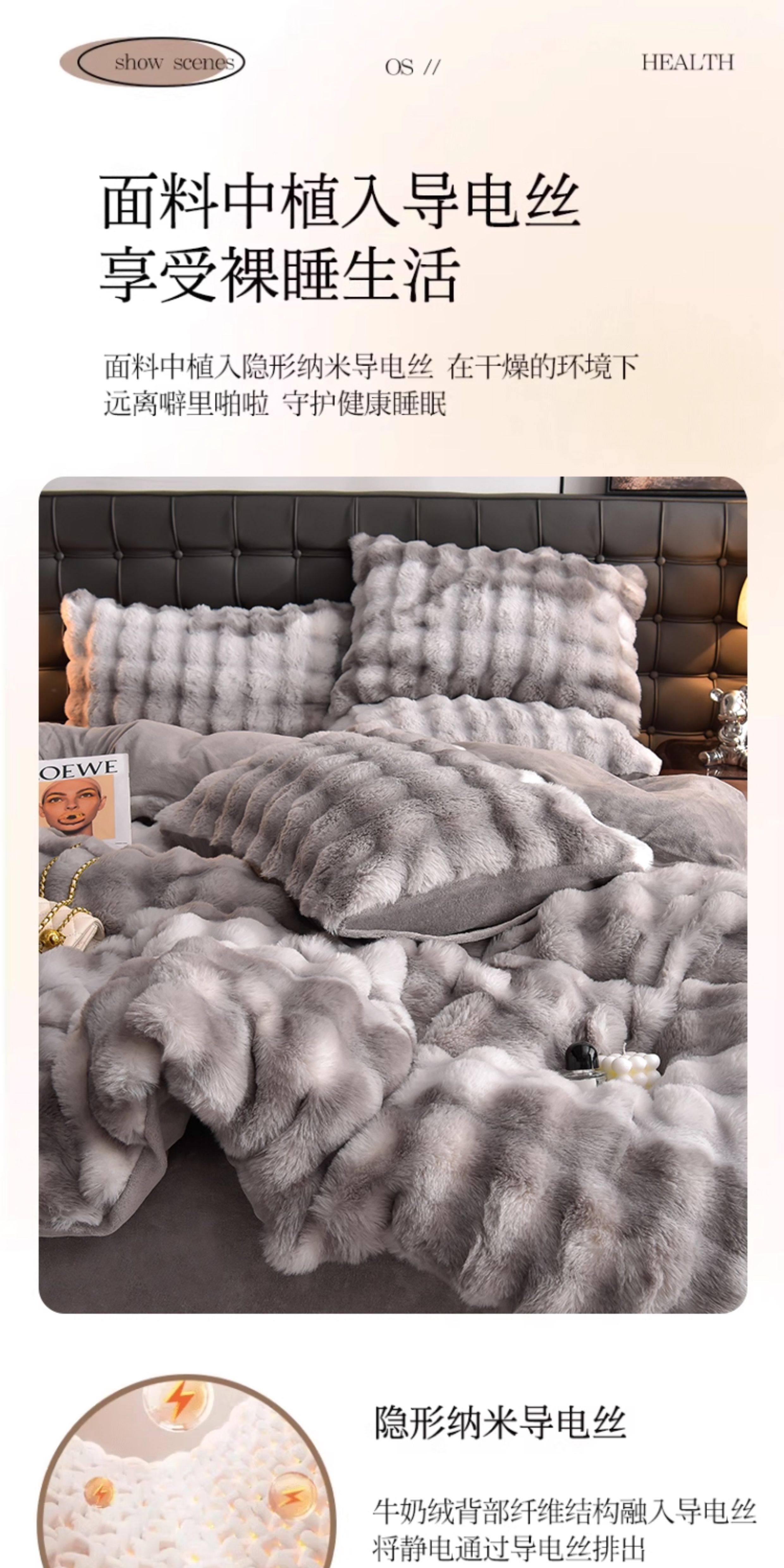 輕奢高級感兔毛絨四件套冬季加厚牛奶絨被套珊瑚絨床單款床上用品