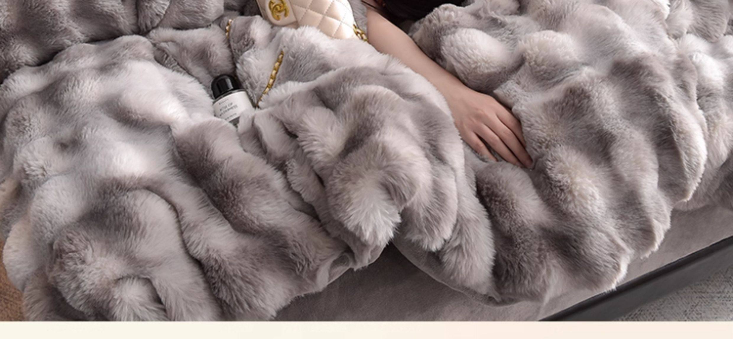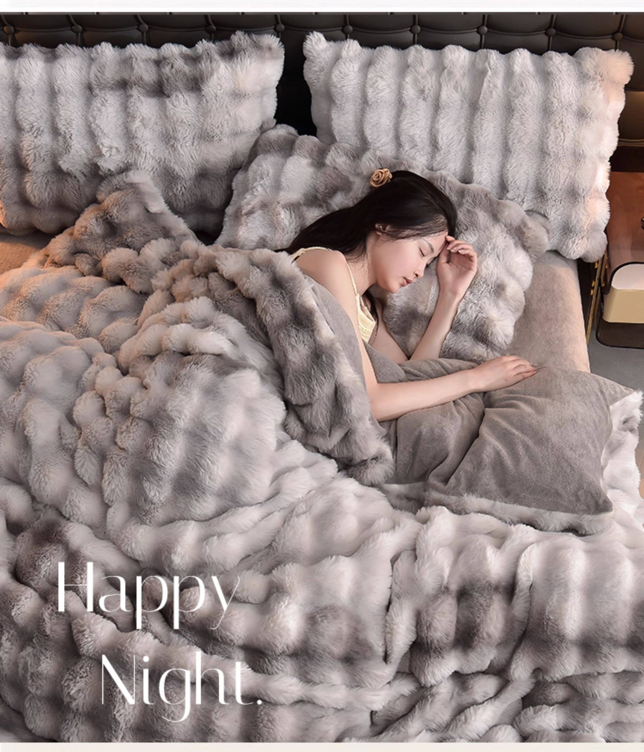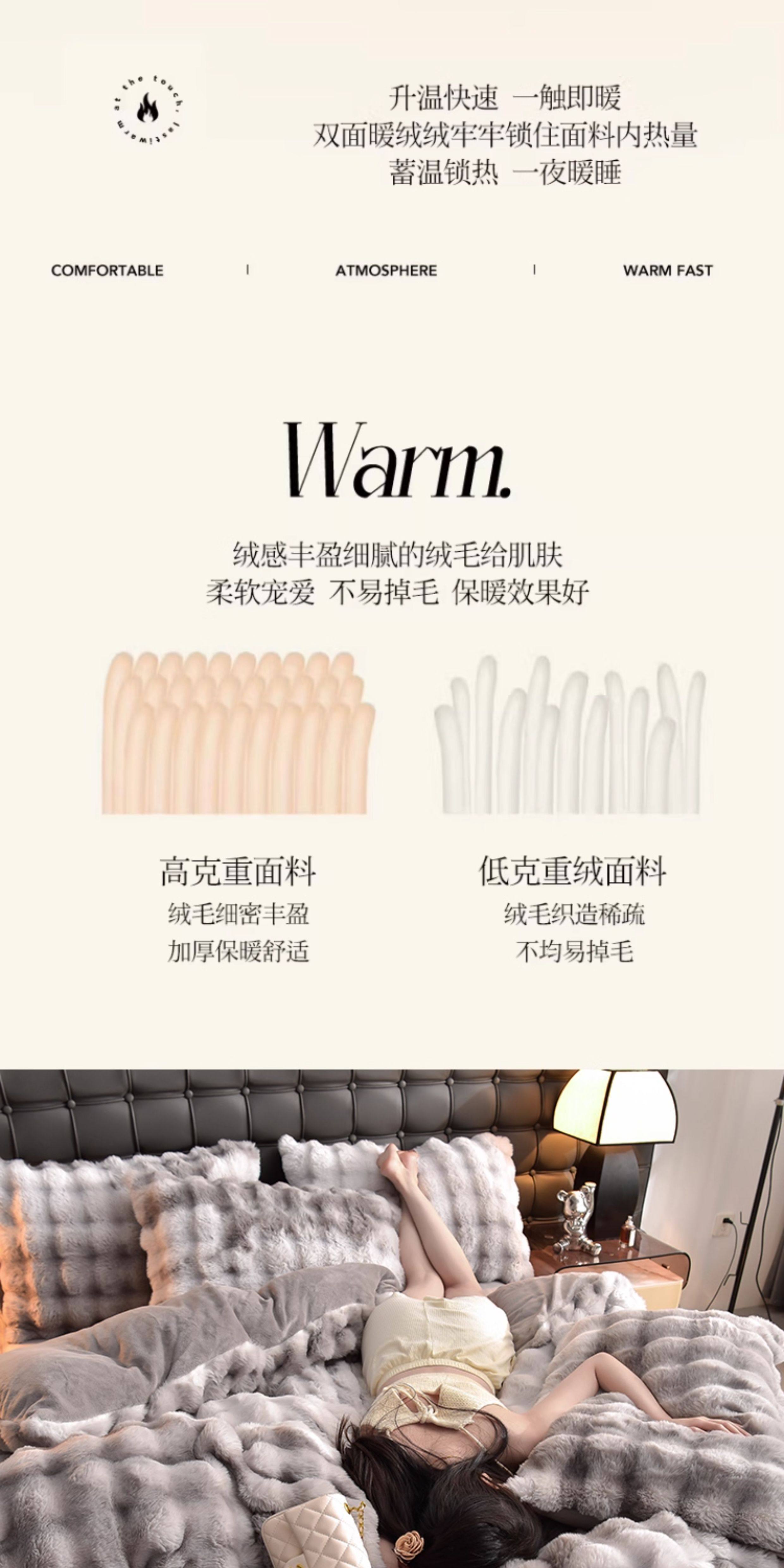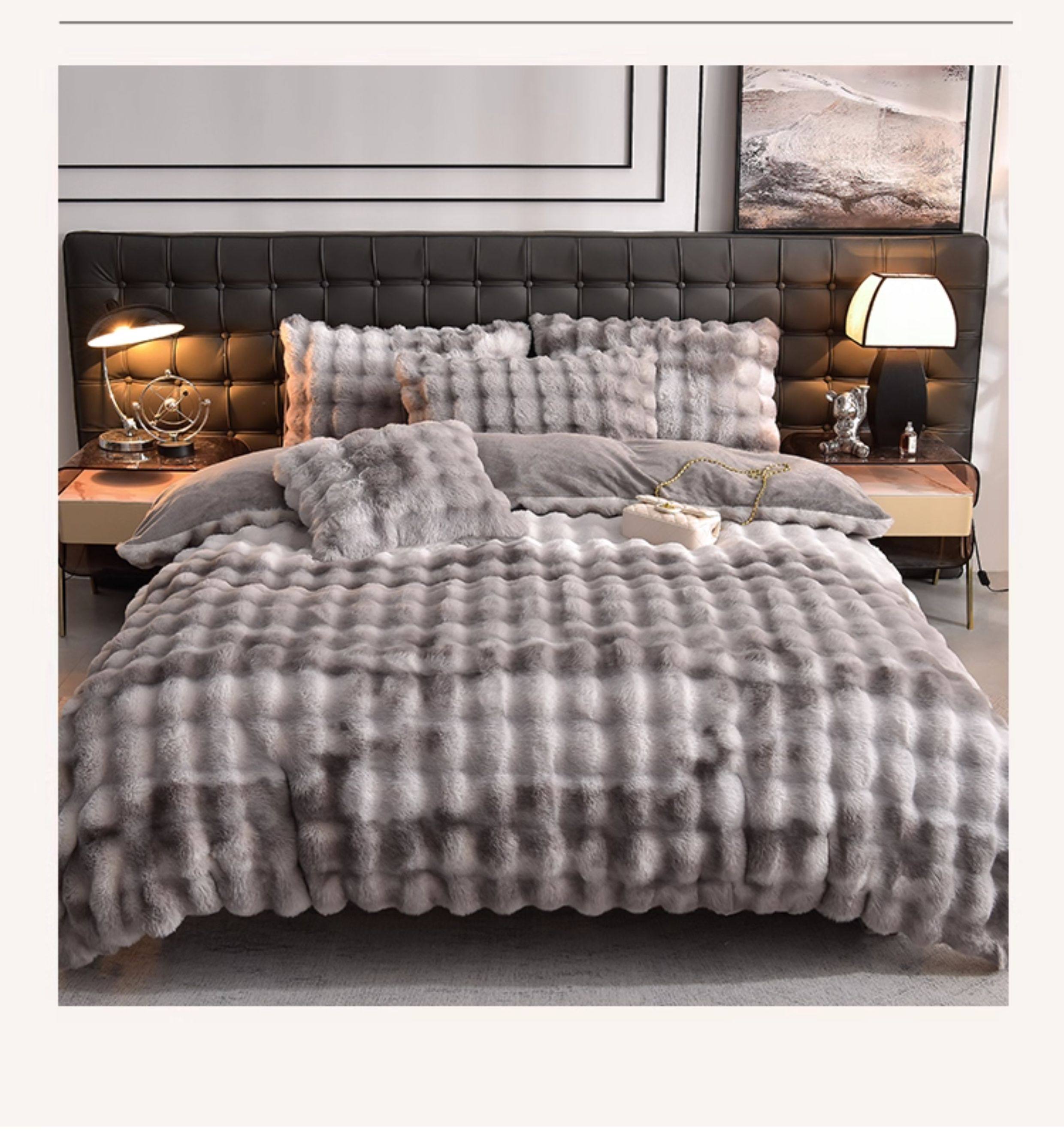 輕奢高級感兔毛絨四件套冬季加厚牛奶絨被套珊瑚絨床單款床上用品
