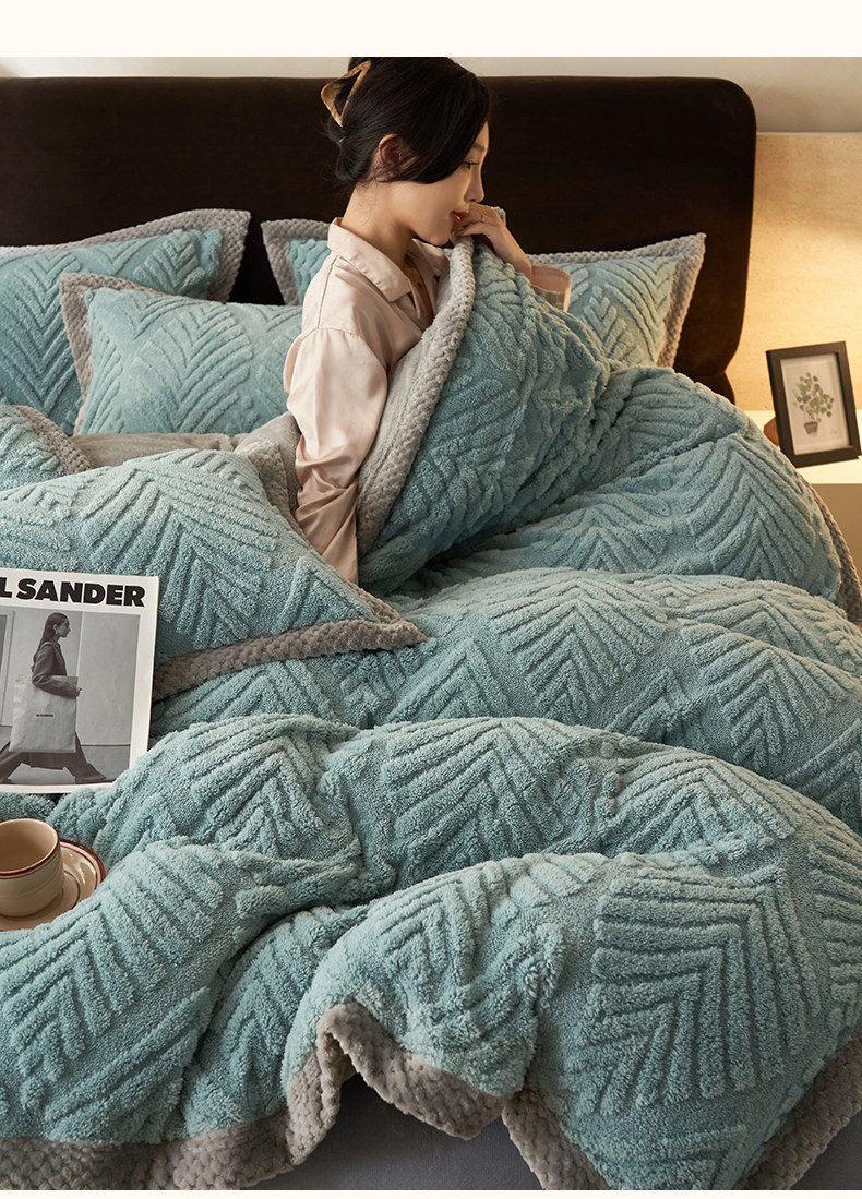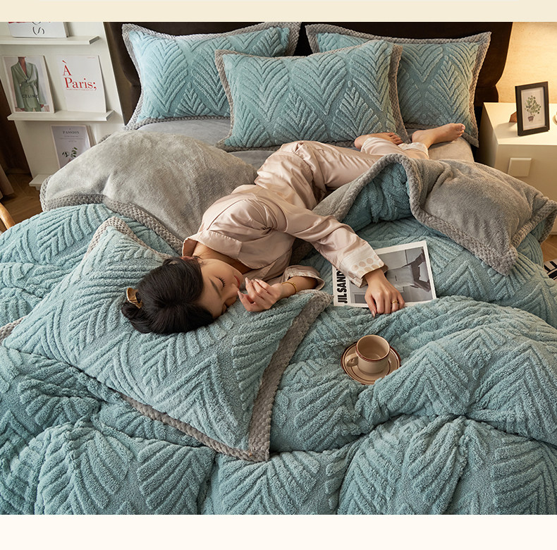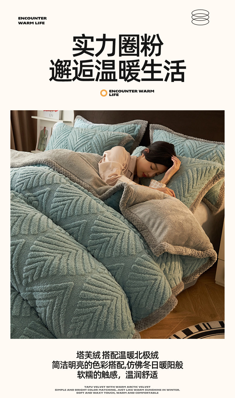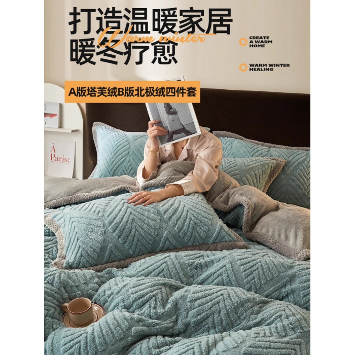 冬季加厚塔芙絨四件套加絨高克重牛奶絨被套床單學生宿捨三件套