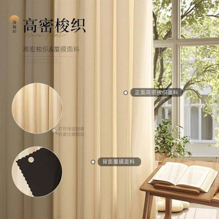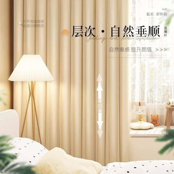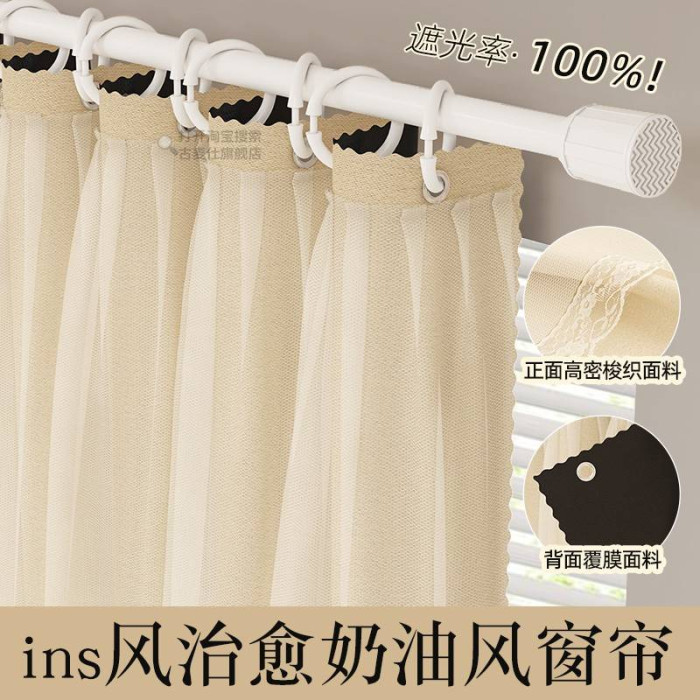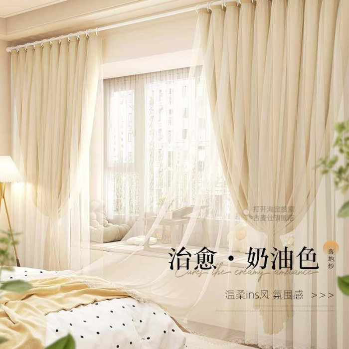 奶油色雙層帶紗全遮光窗簾輕奢現代簡約臥室客廳2026年新款