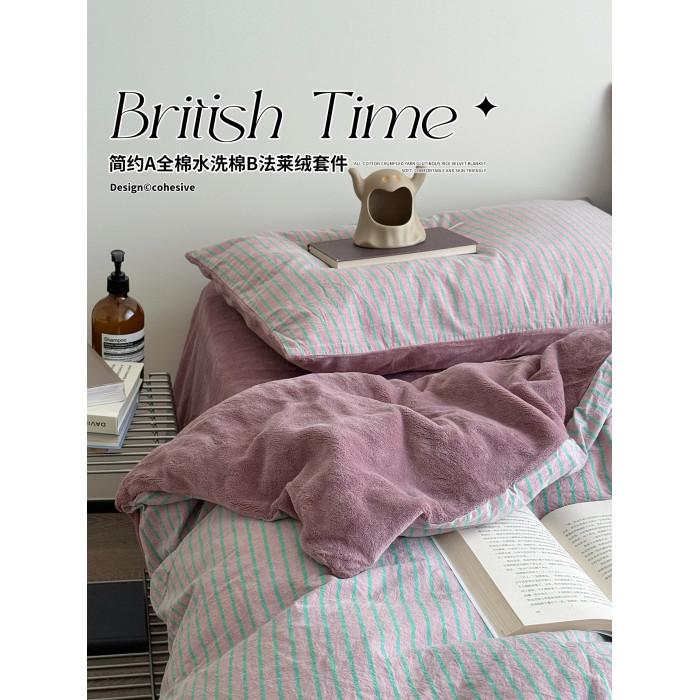 秋冬ab版全棉牛奶絨床上四件套加厚珊瑚絨面被套床單床包款三件套