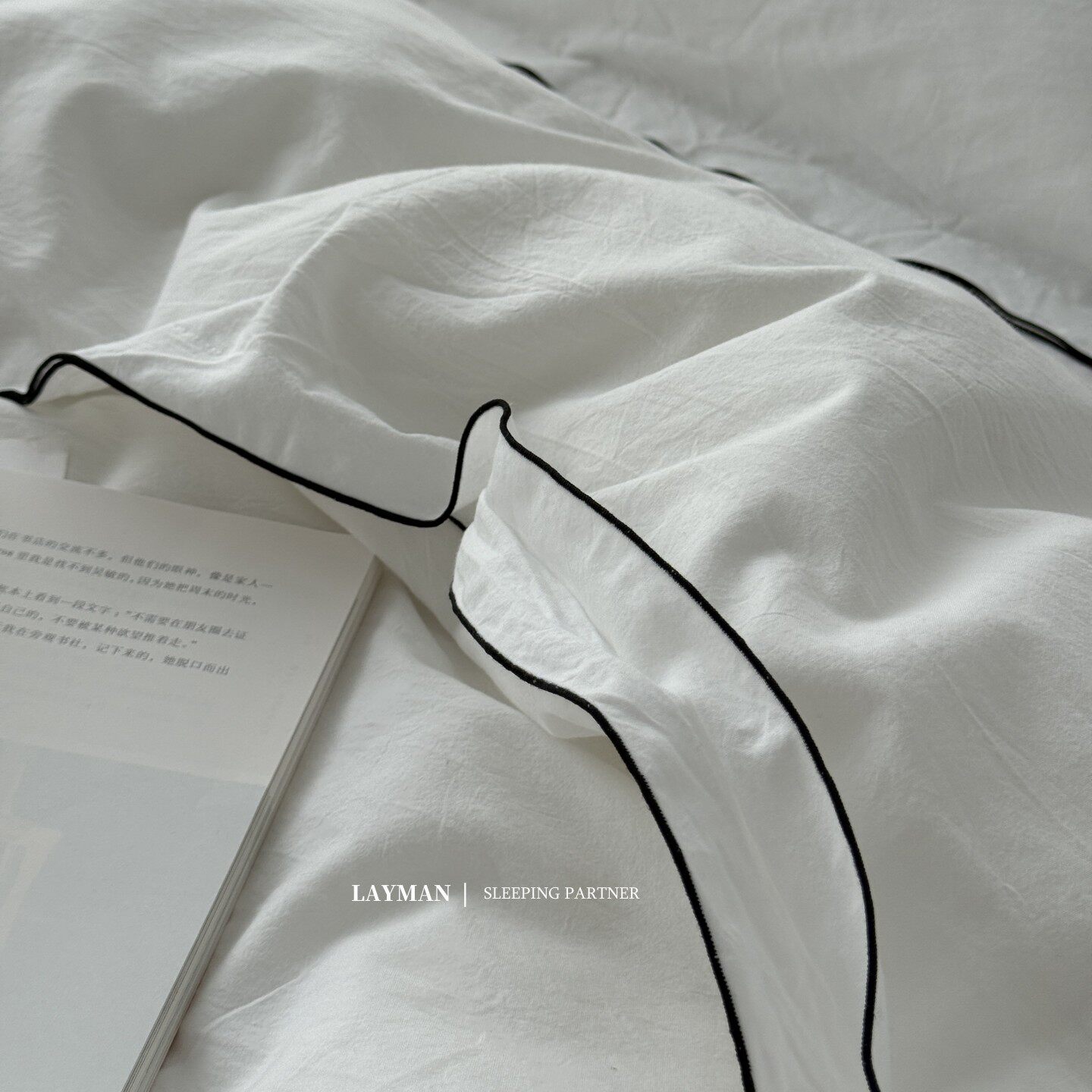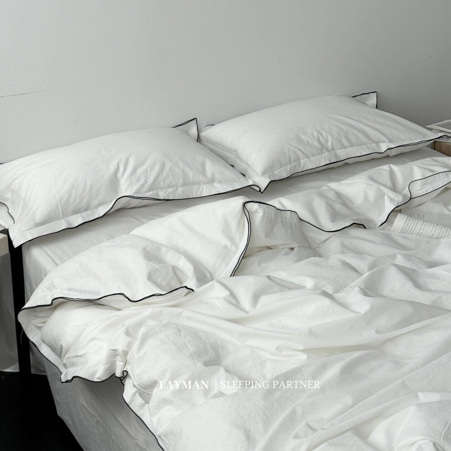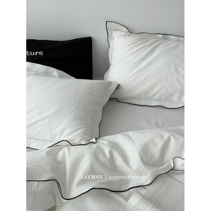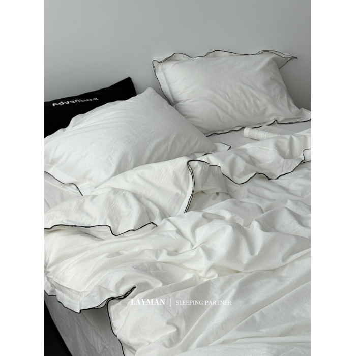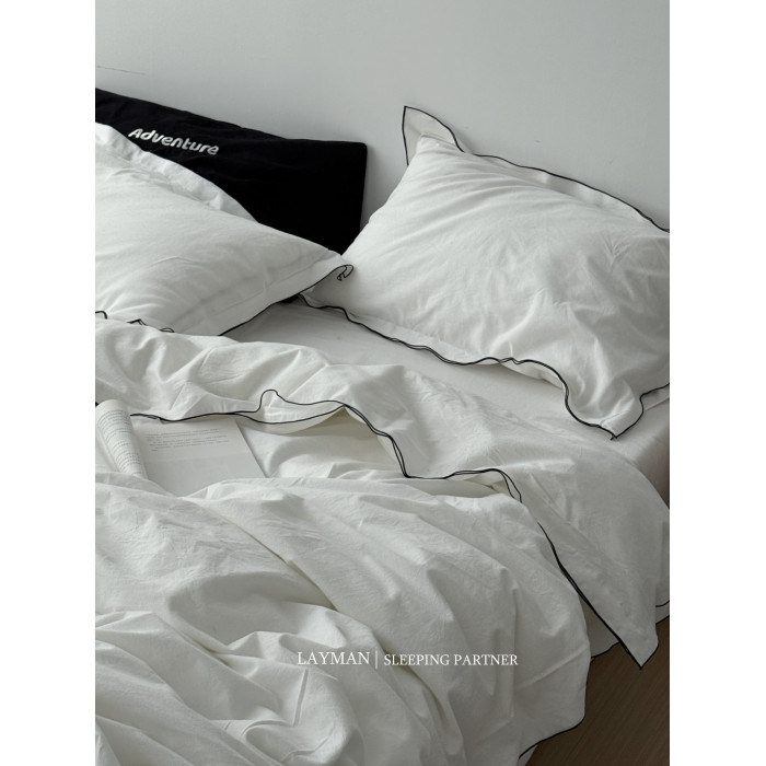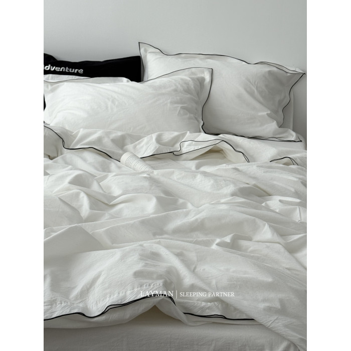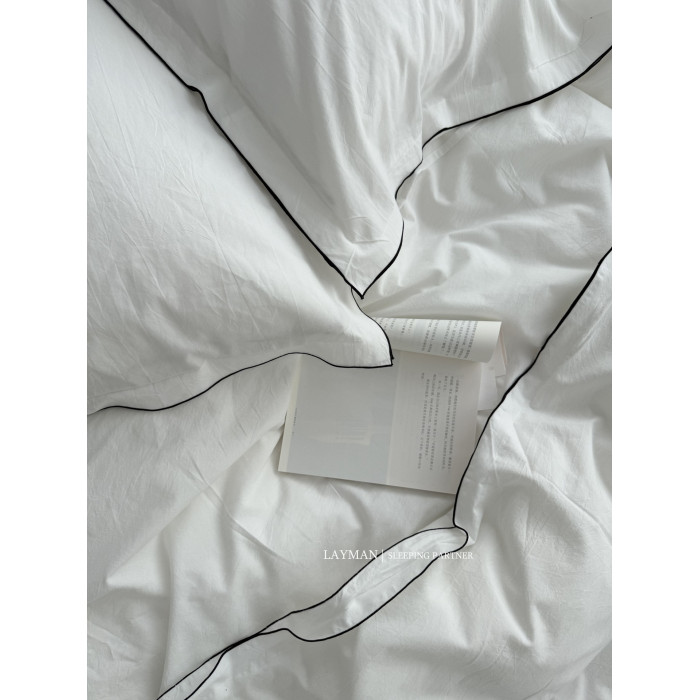 Layman外行 【白梨水】黑邊密拷白色全棉水洗棉四件套酒店民宿風