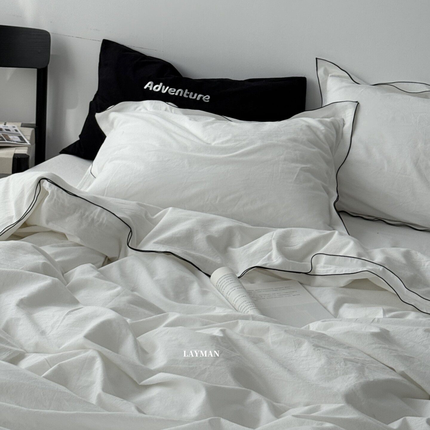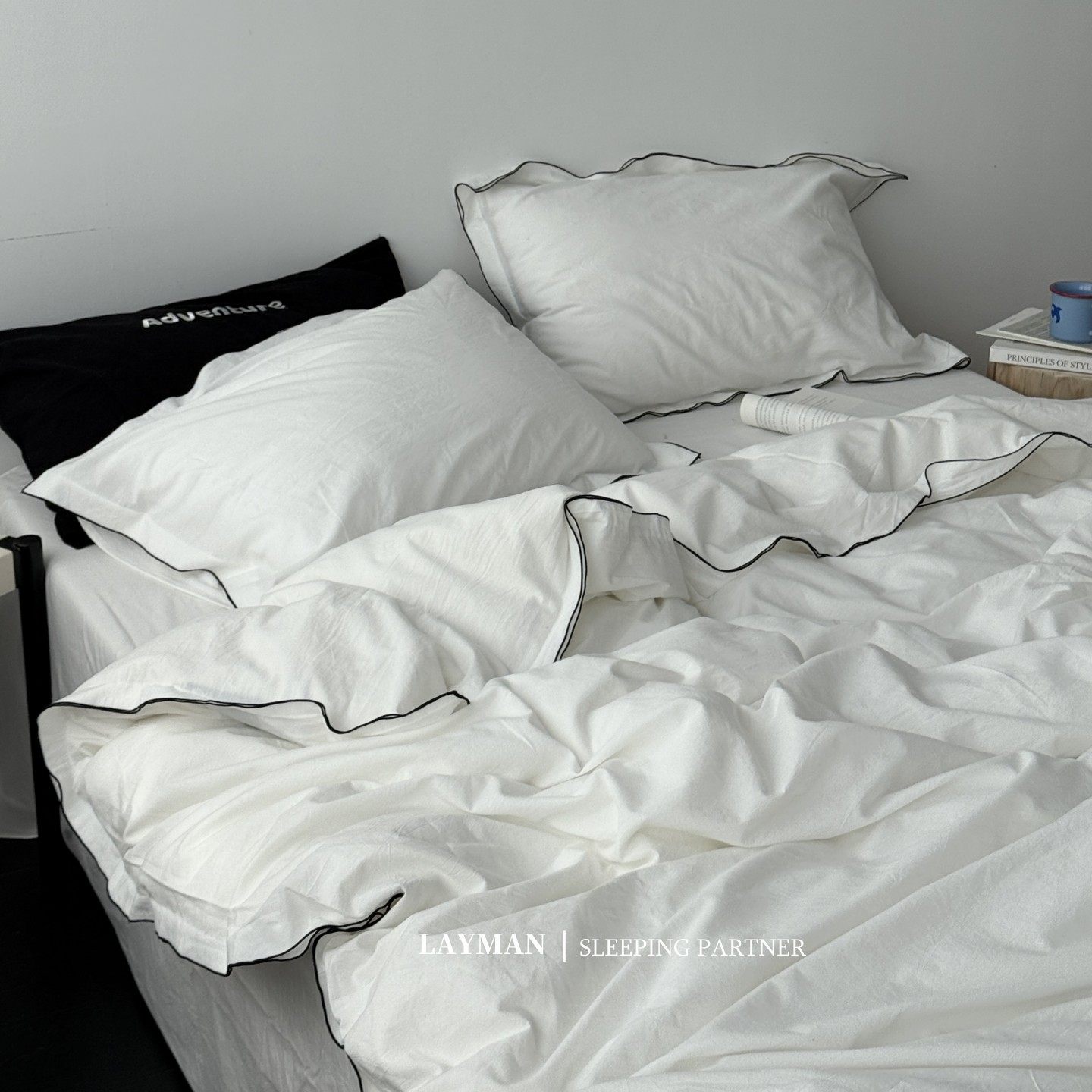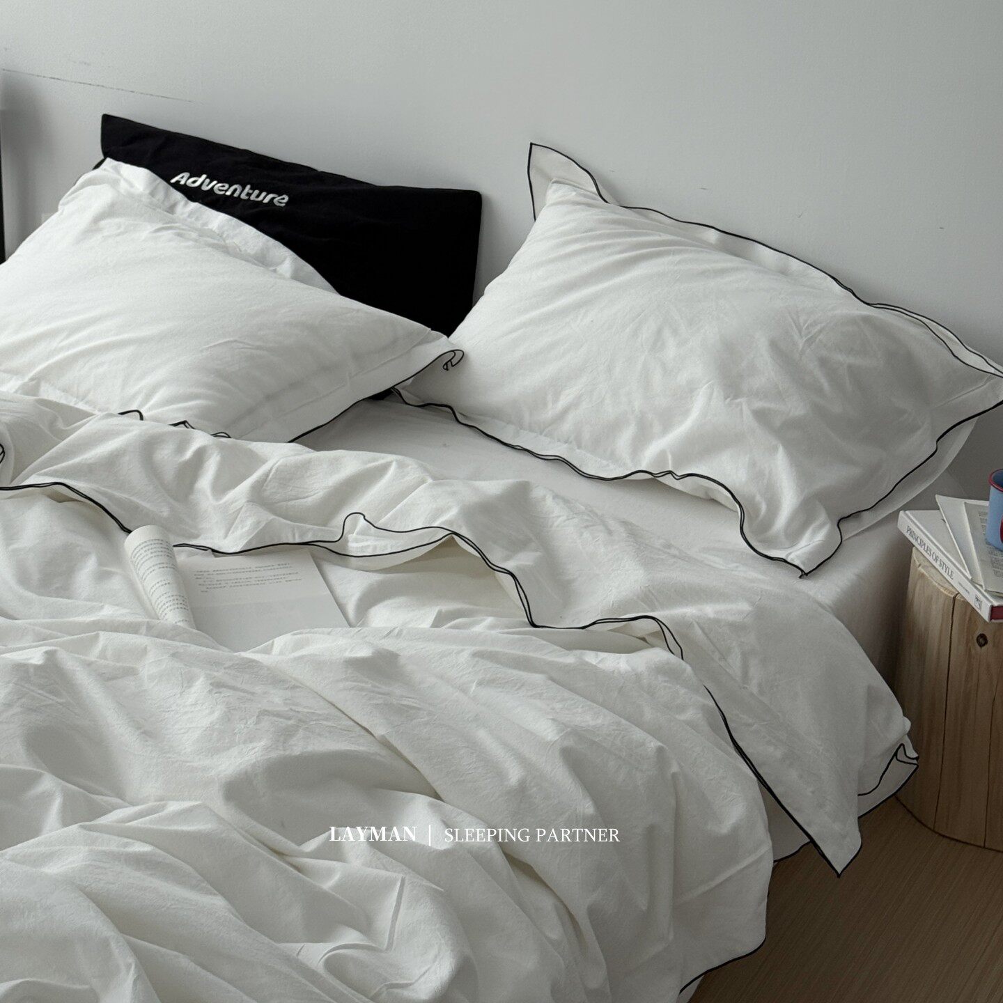 Layman外行 【白梨水】黑邊密拷白色全棉水洗棉四件套酒店民宿風