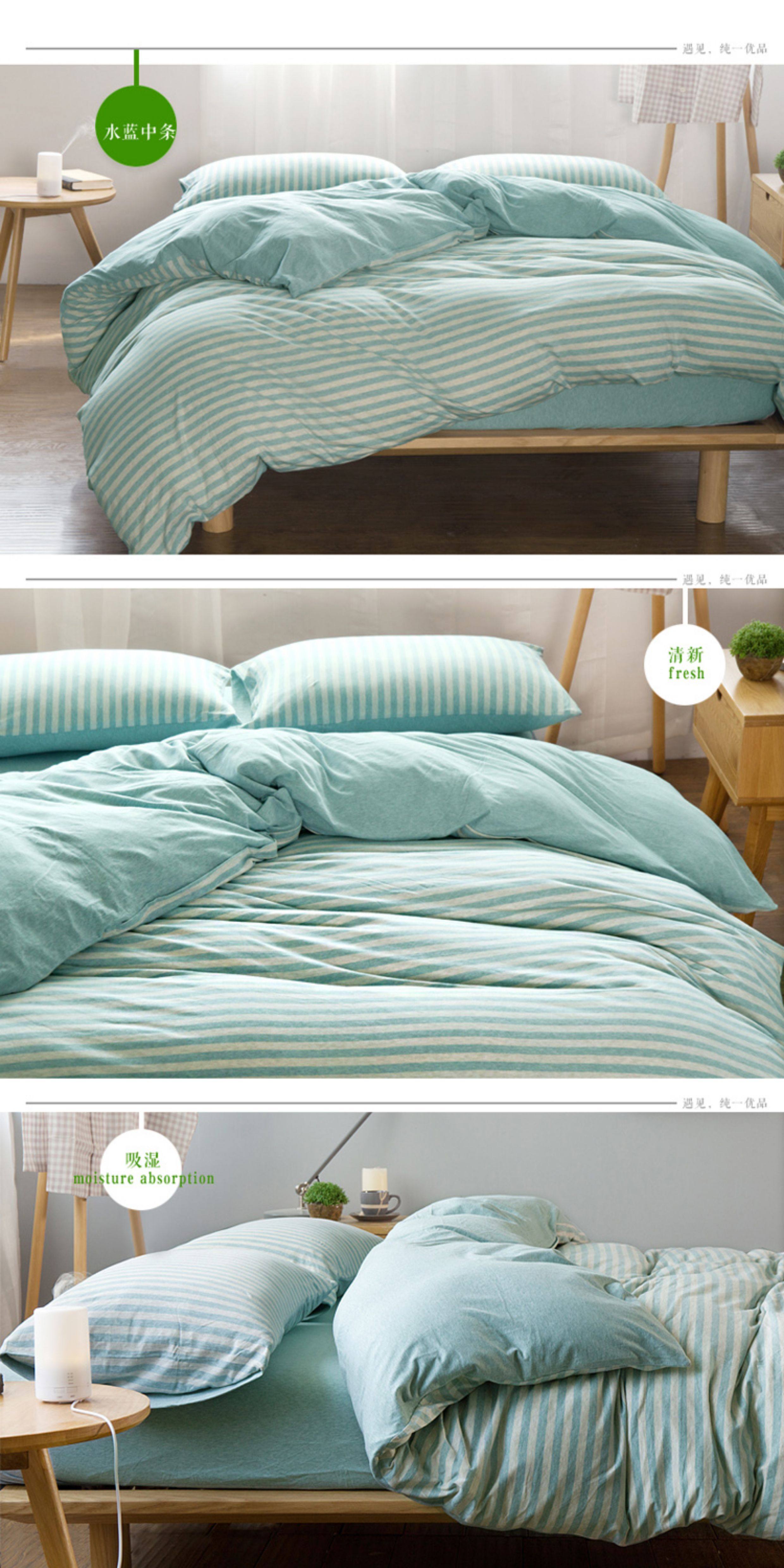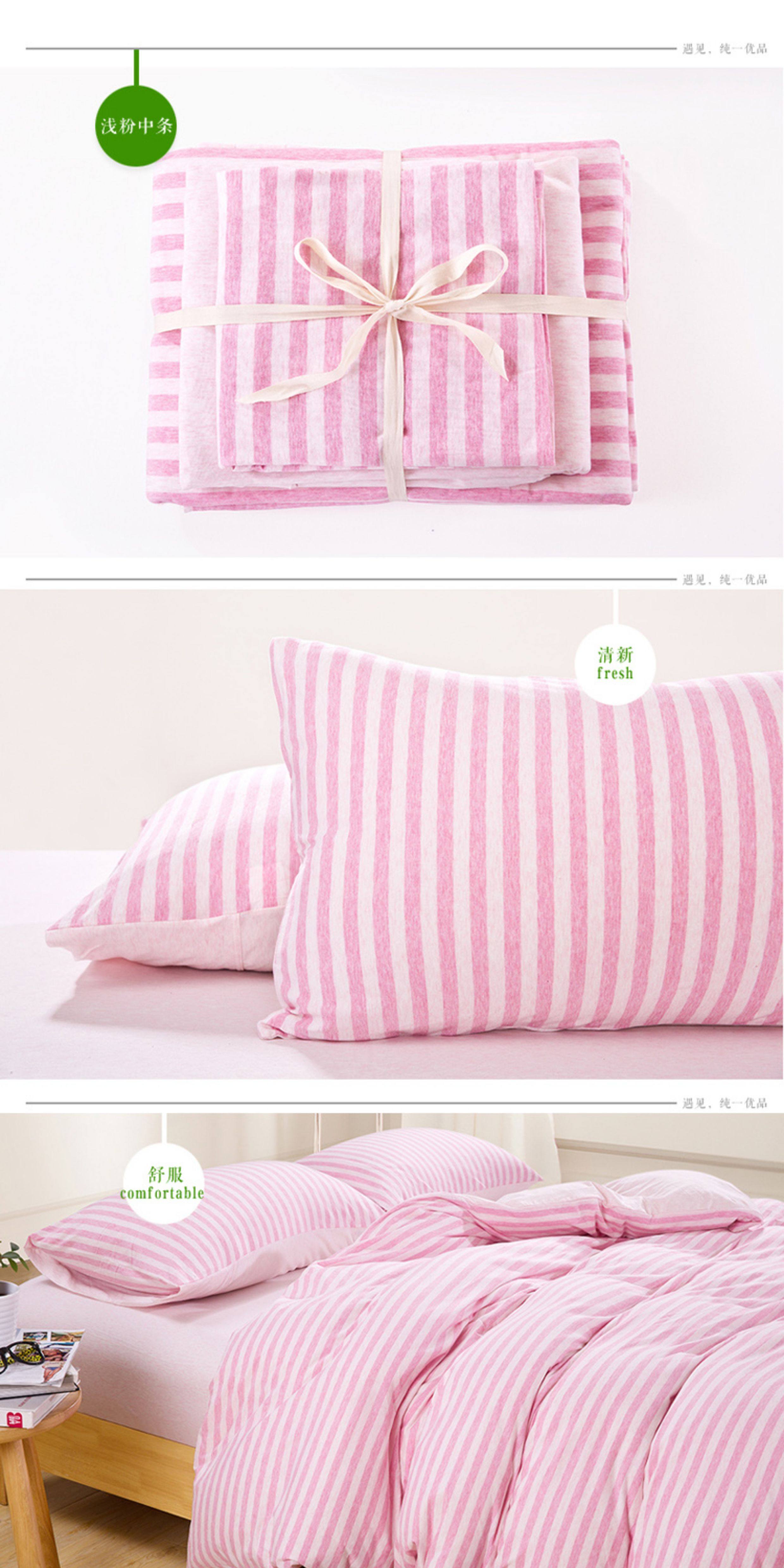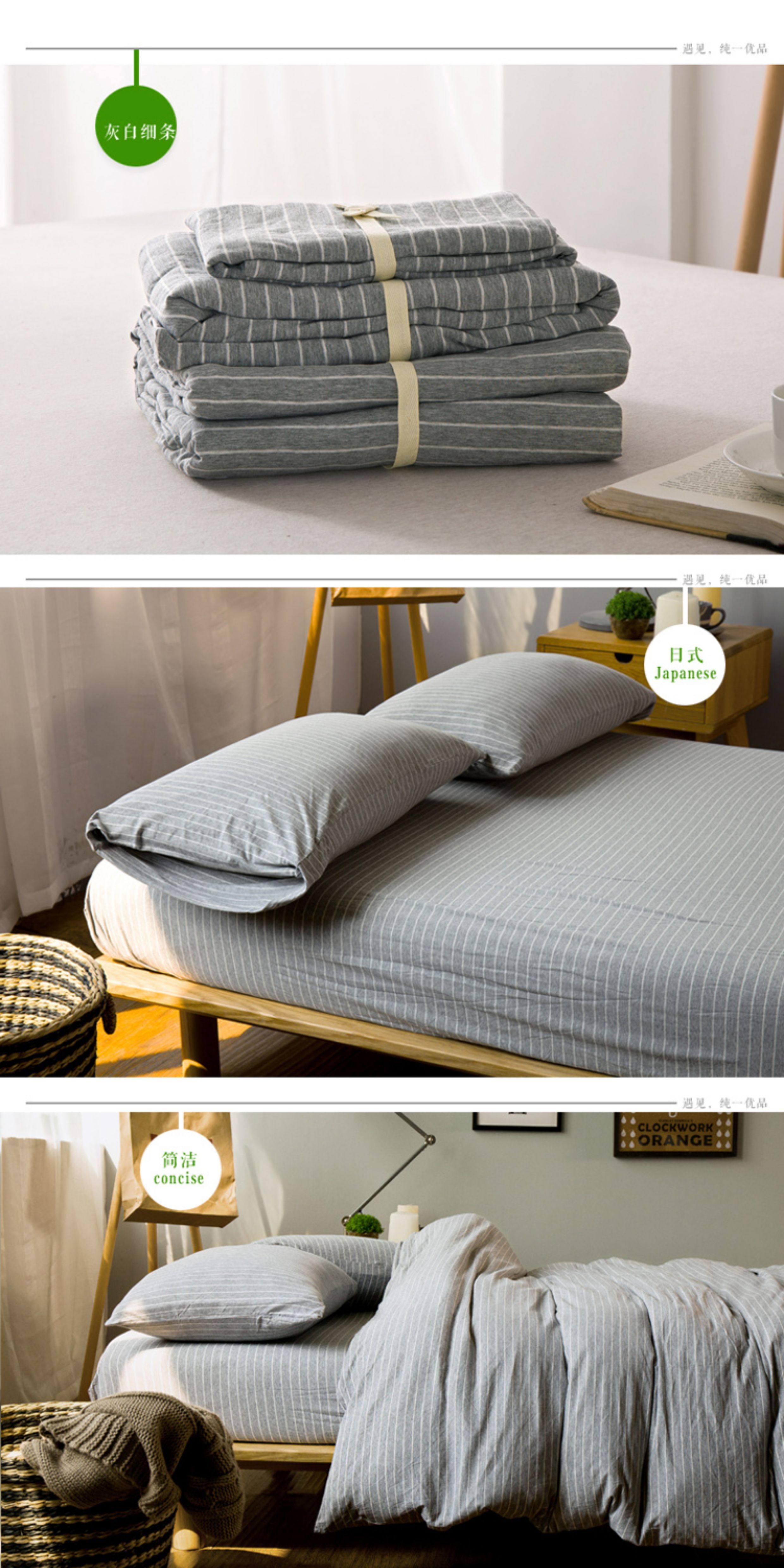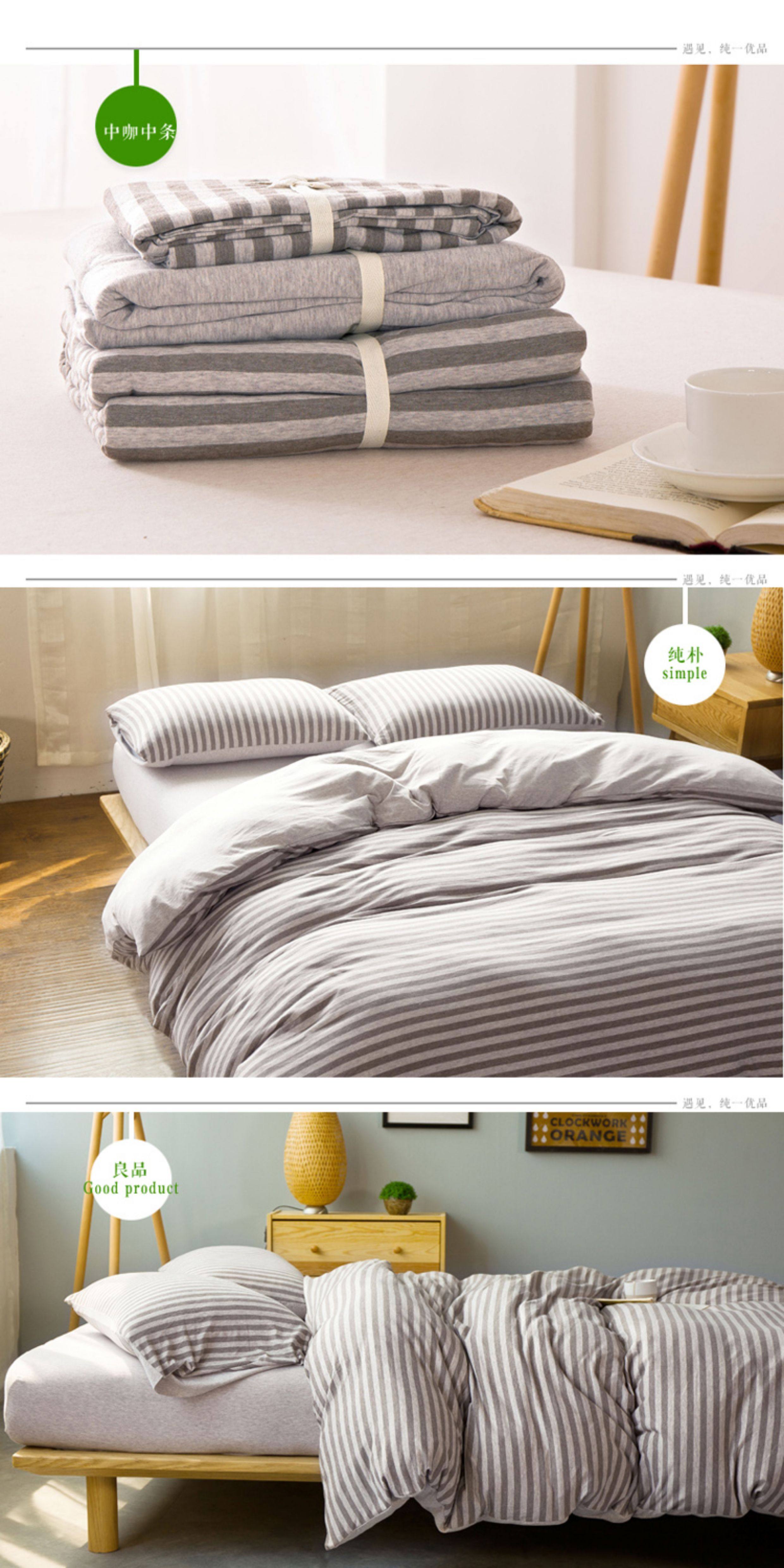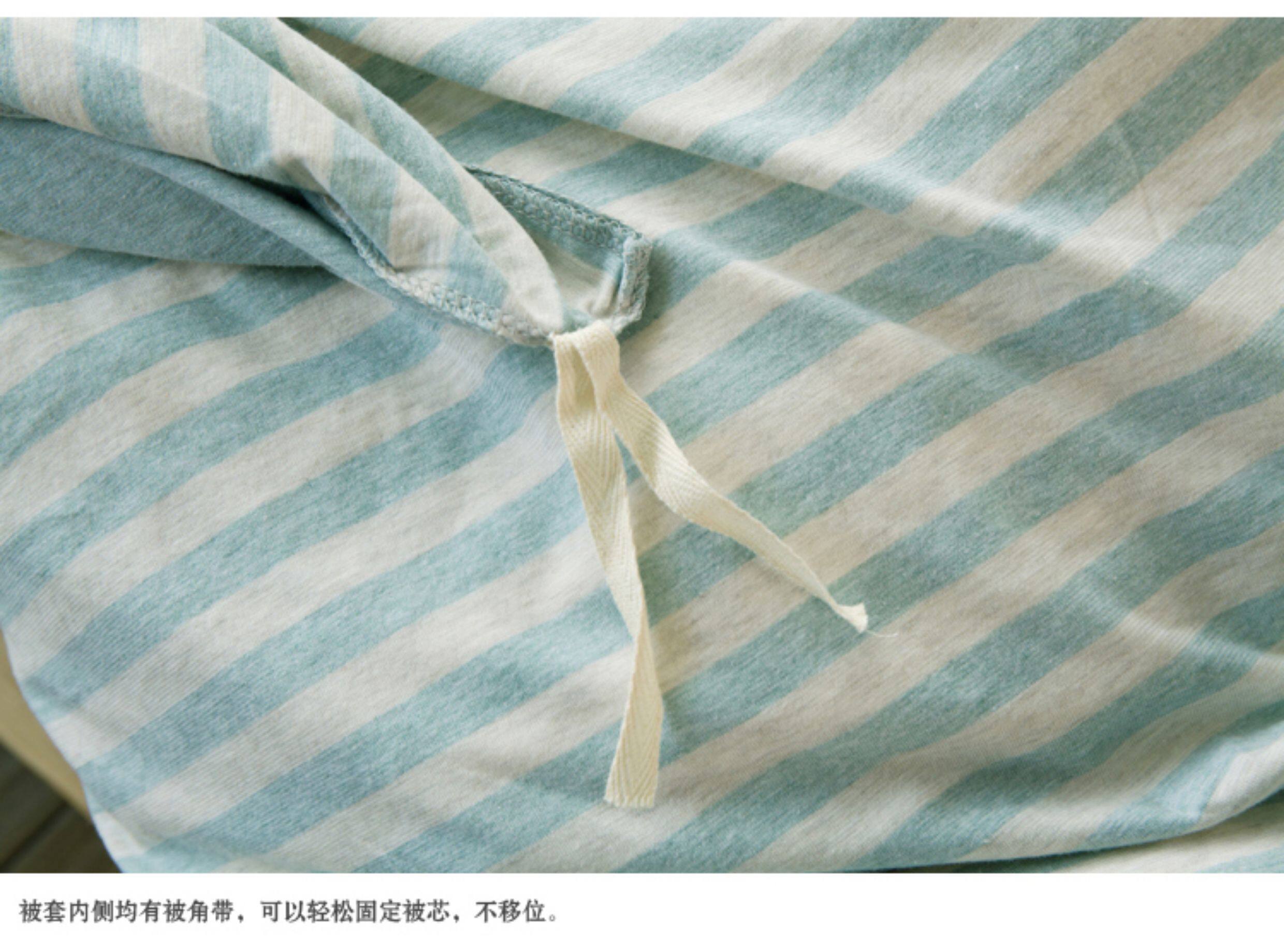 無印日式純棉裸睡天竺棉條紋四件套全棉針織棉1.8m床單床包式良品