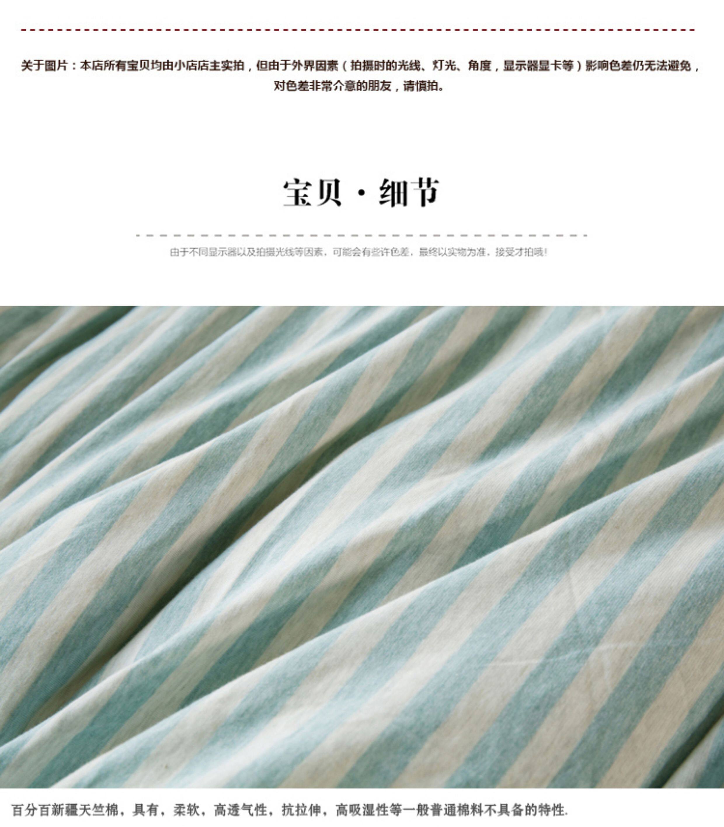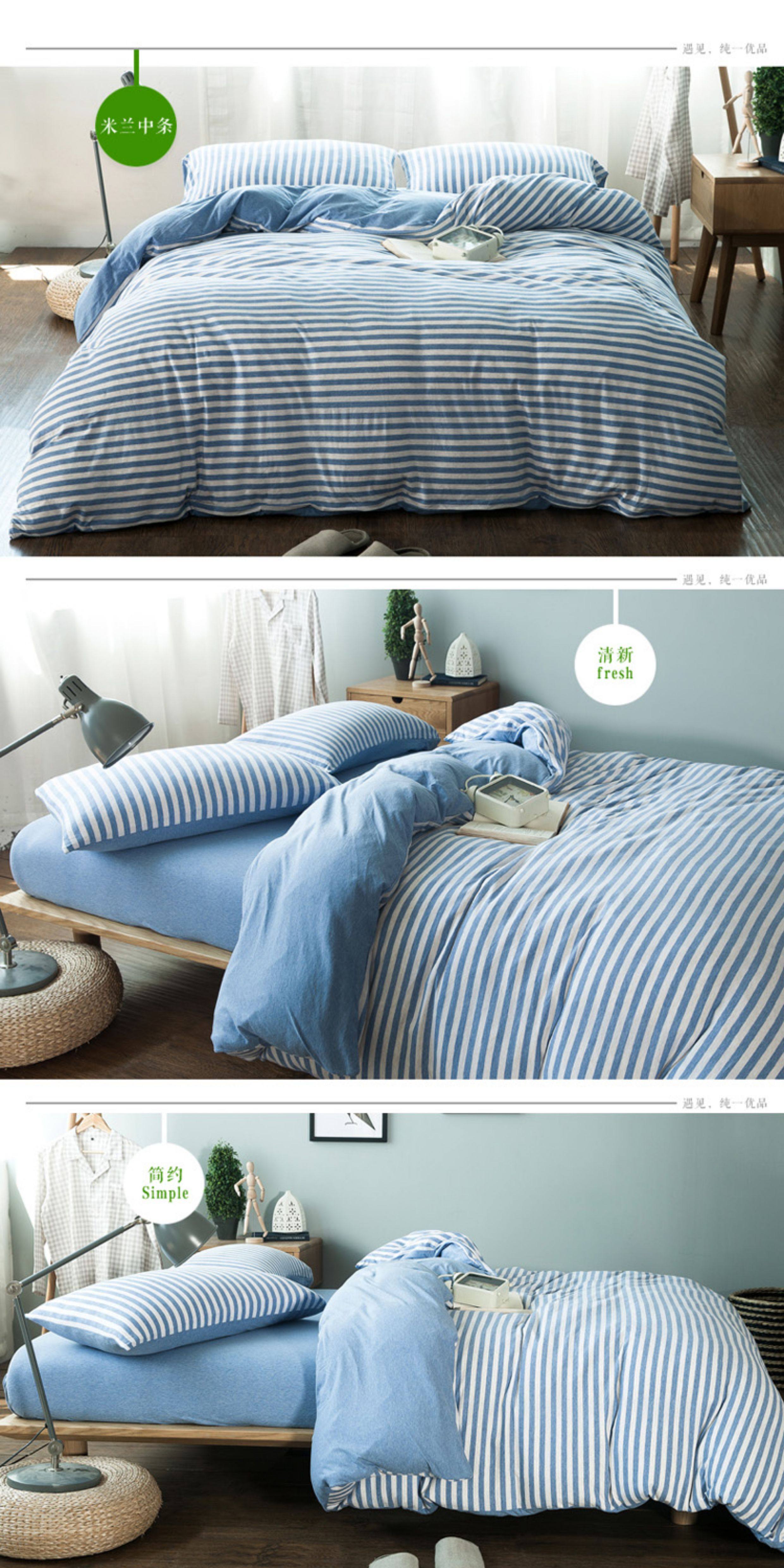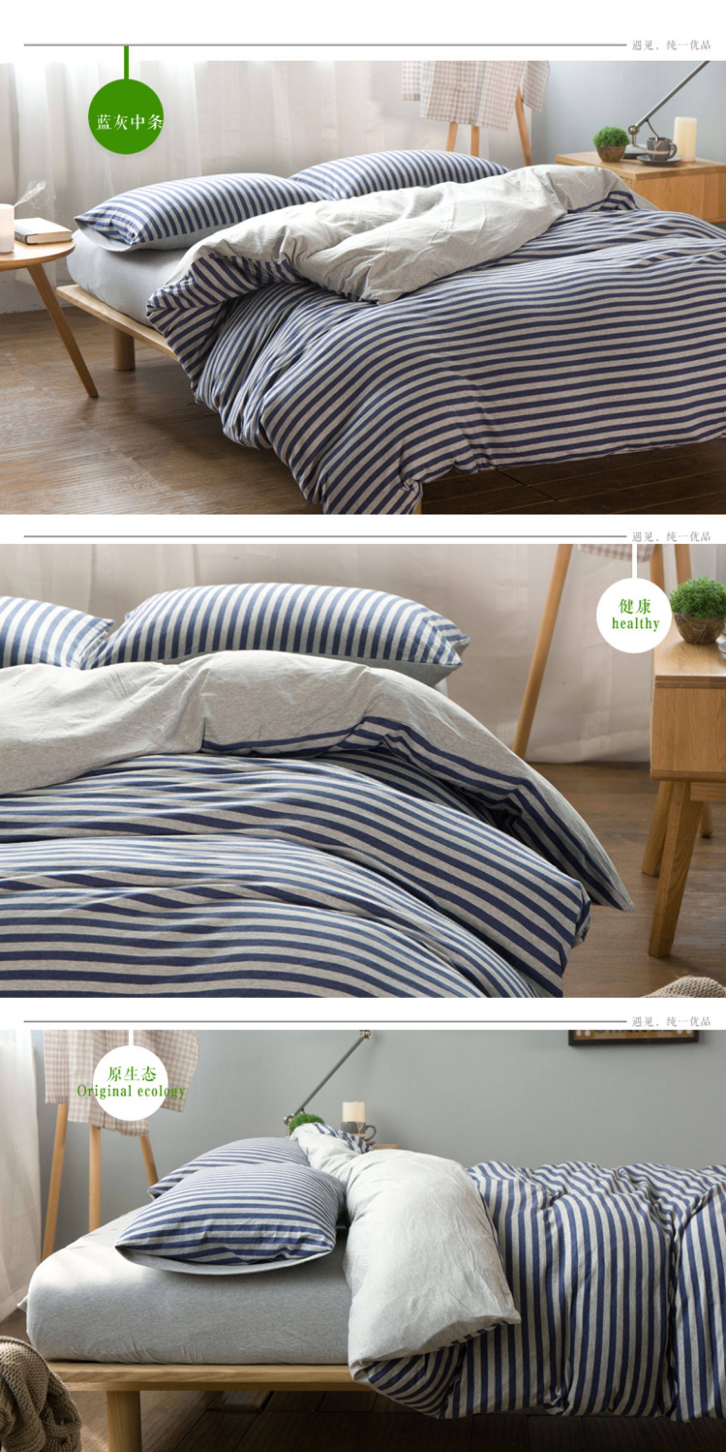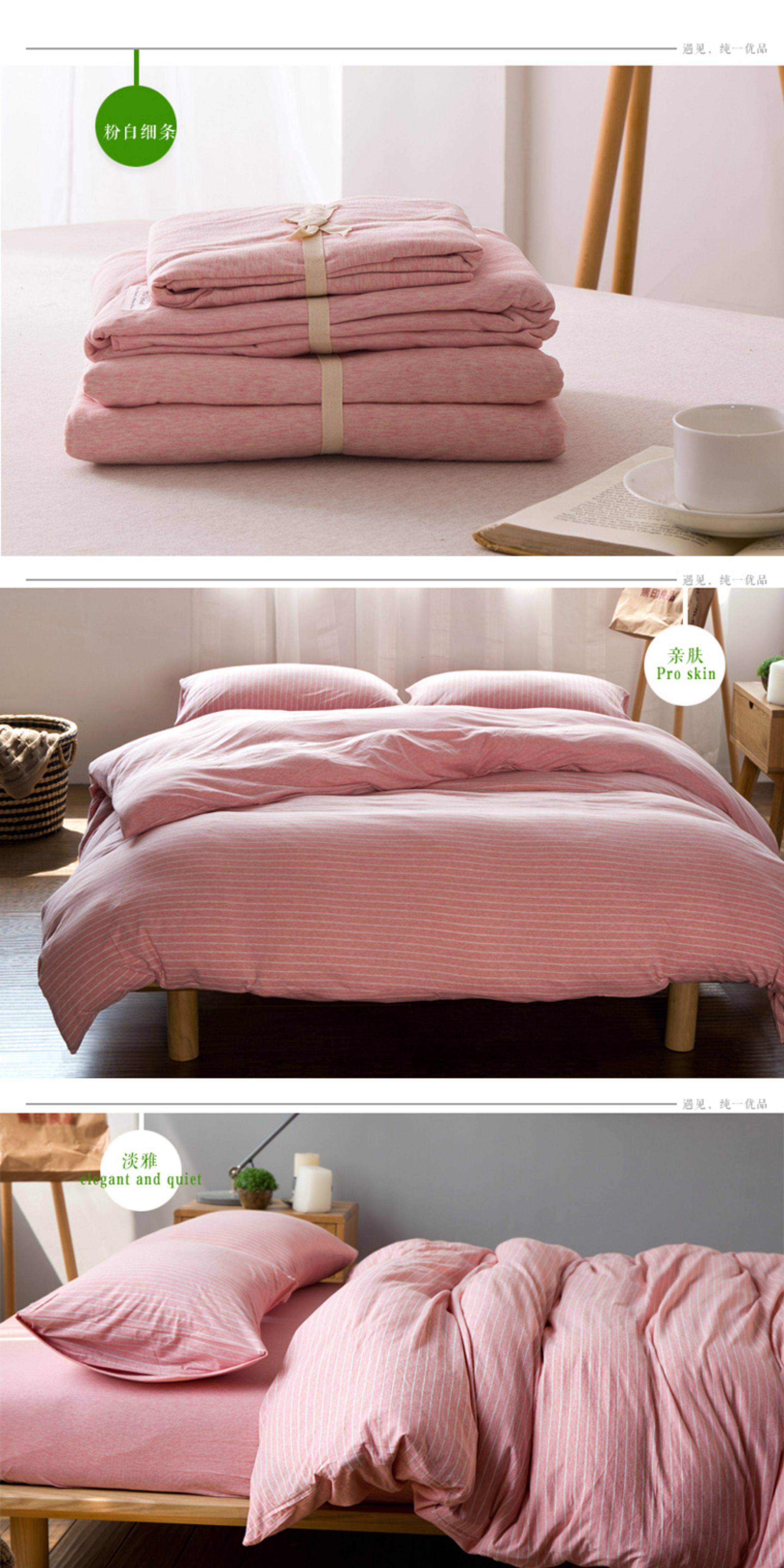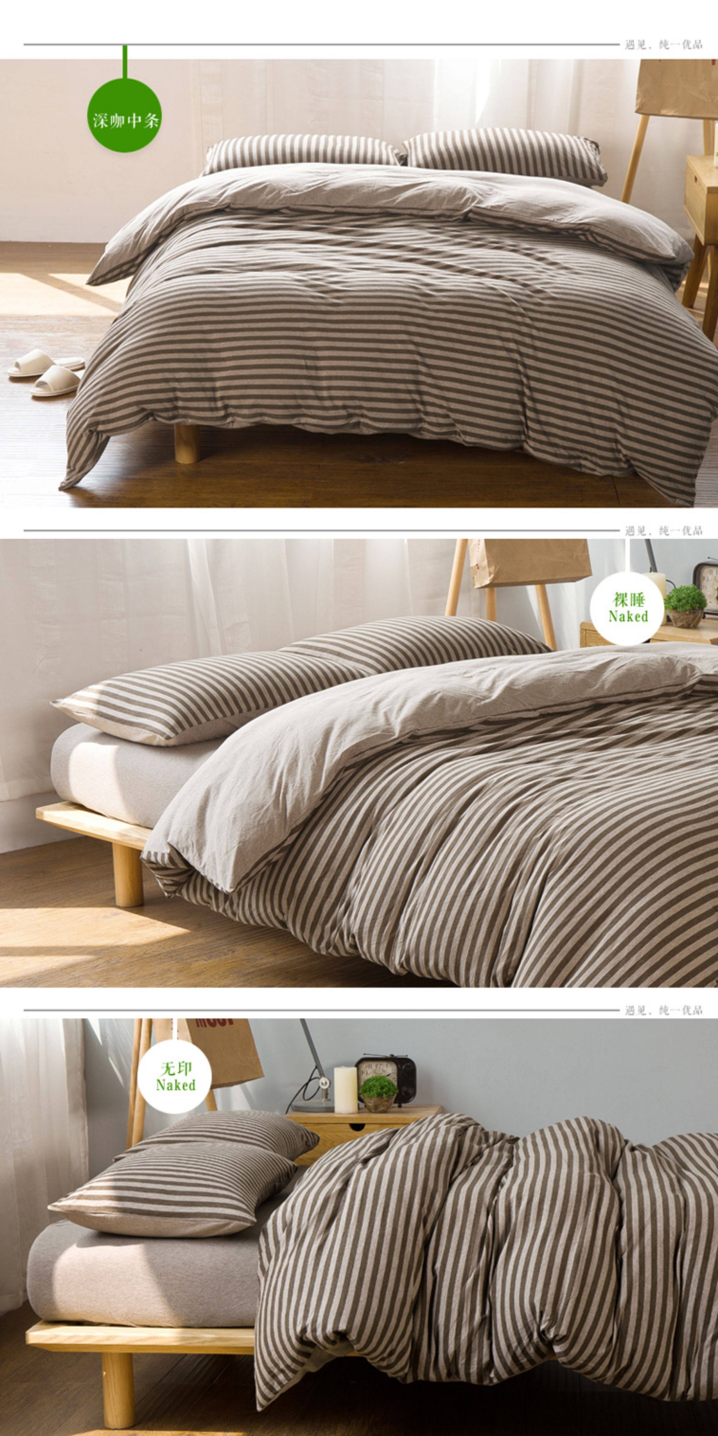無印日式純棉裸睡天竺棉條紋四件套全棉針織棉1.8m床單床包式良品