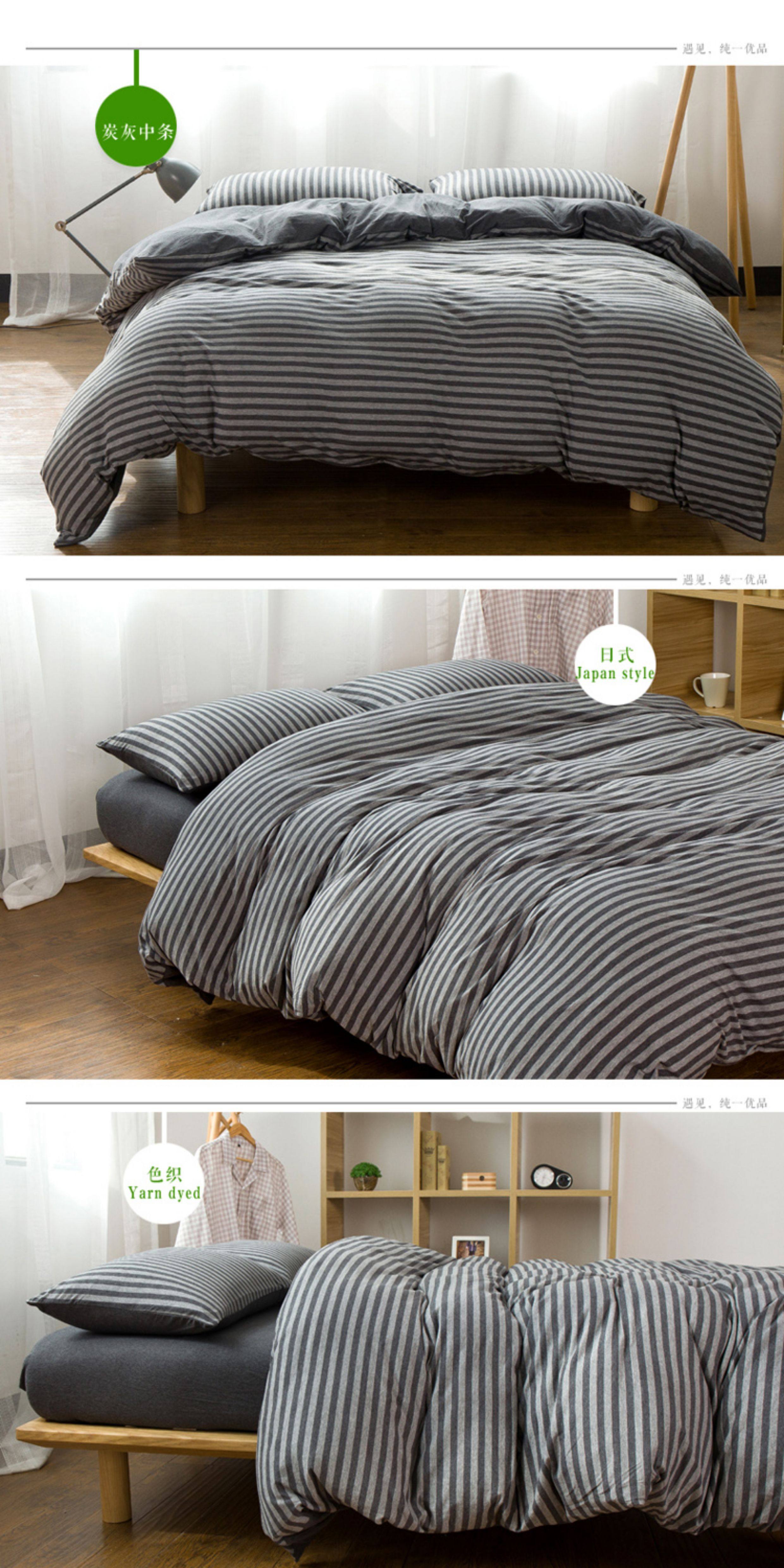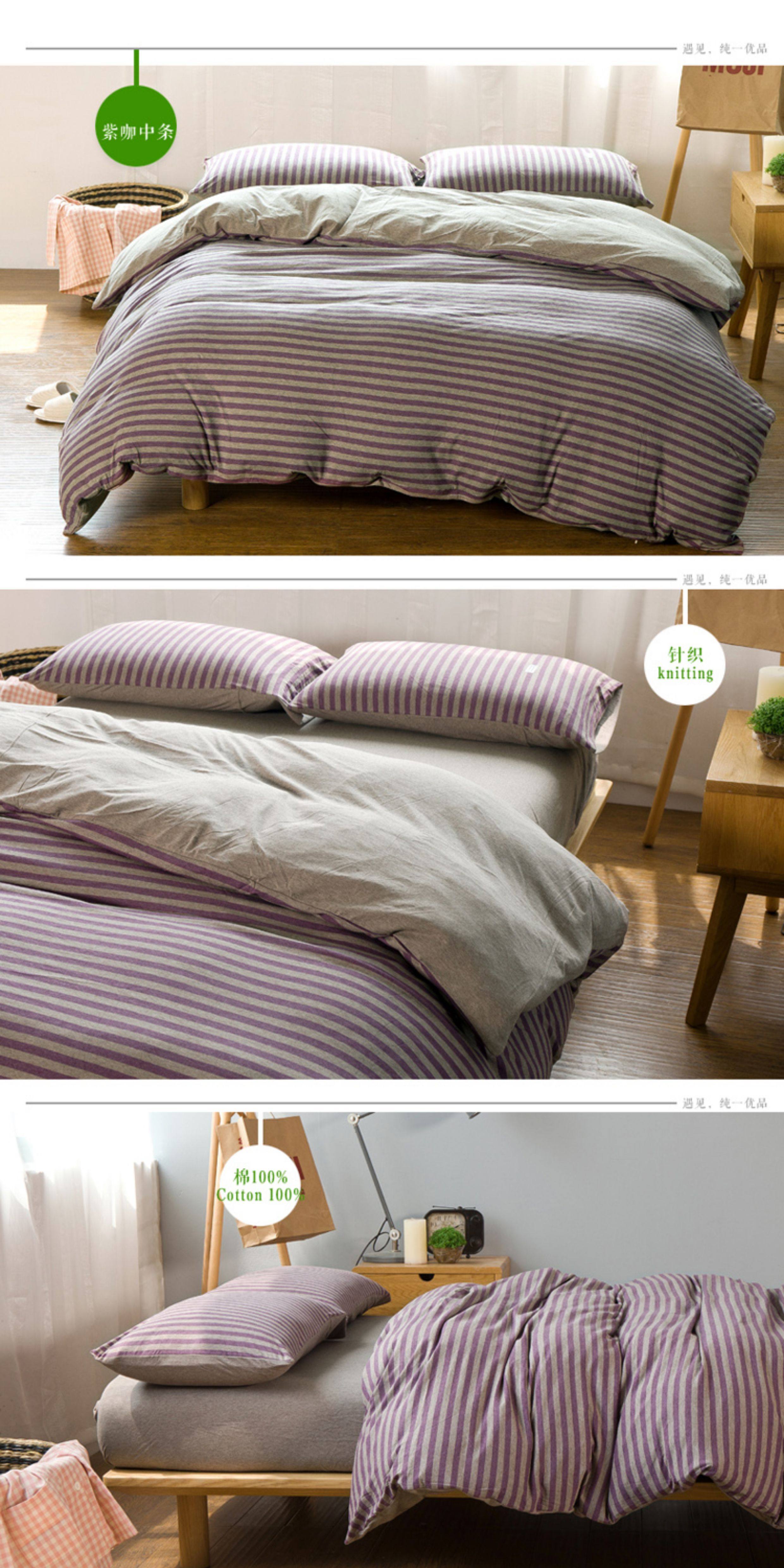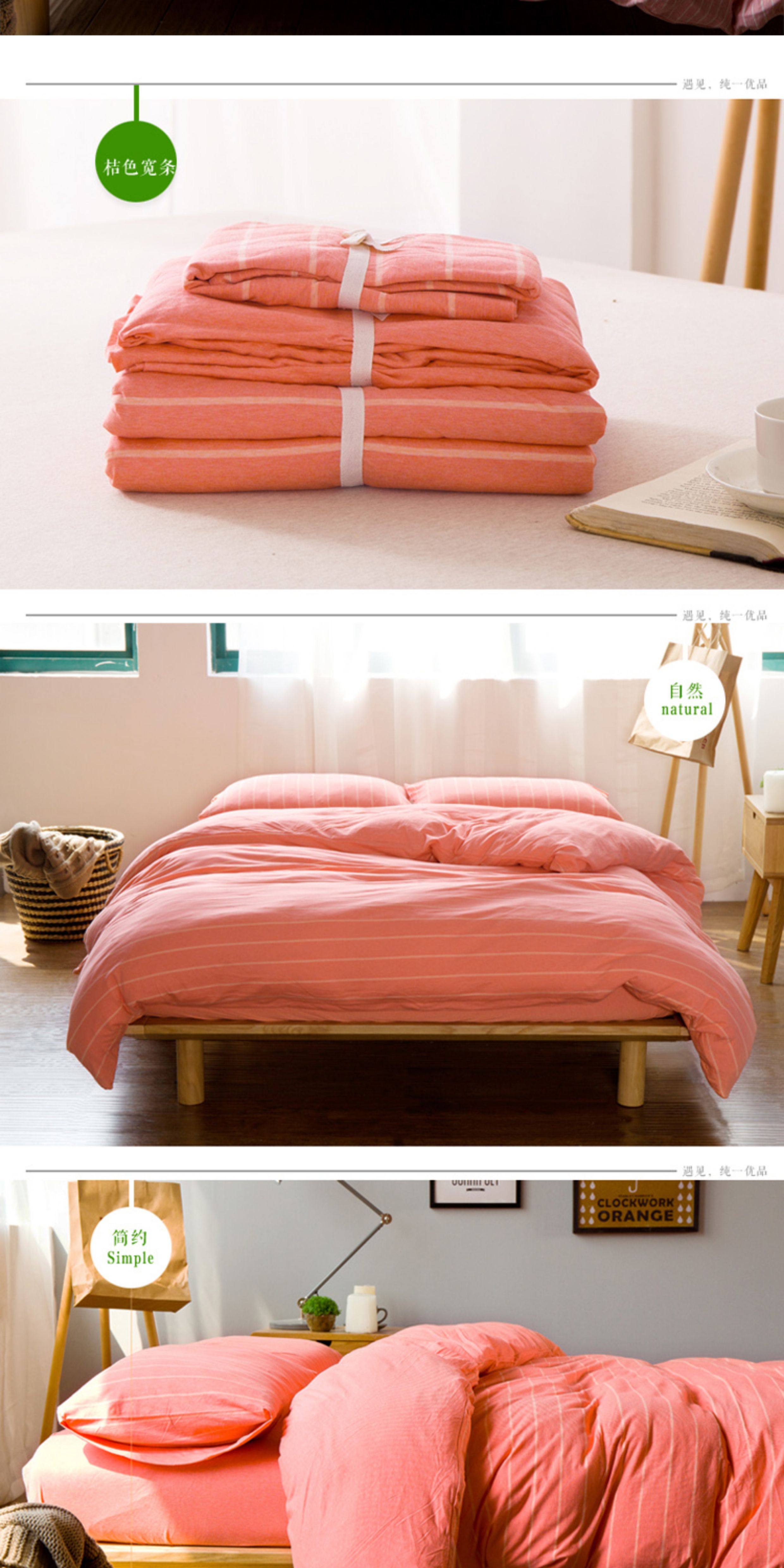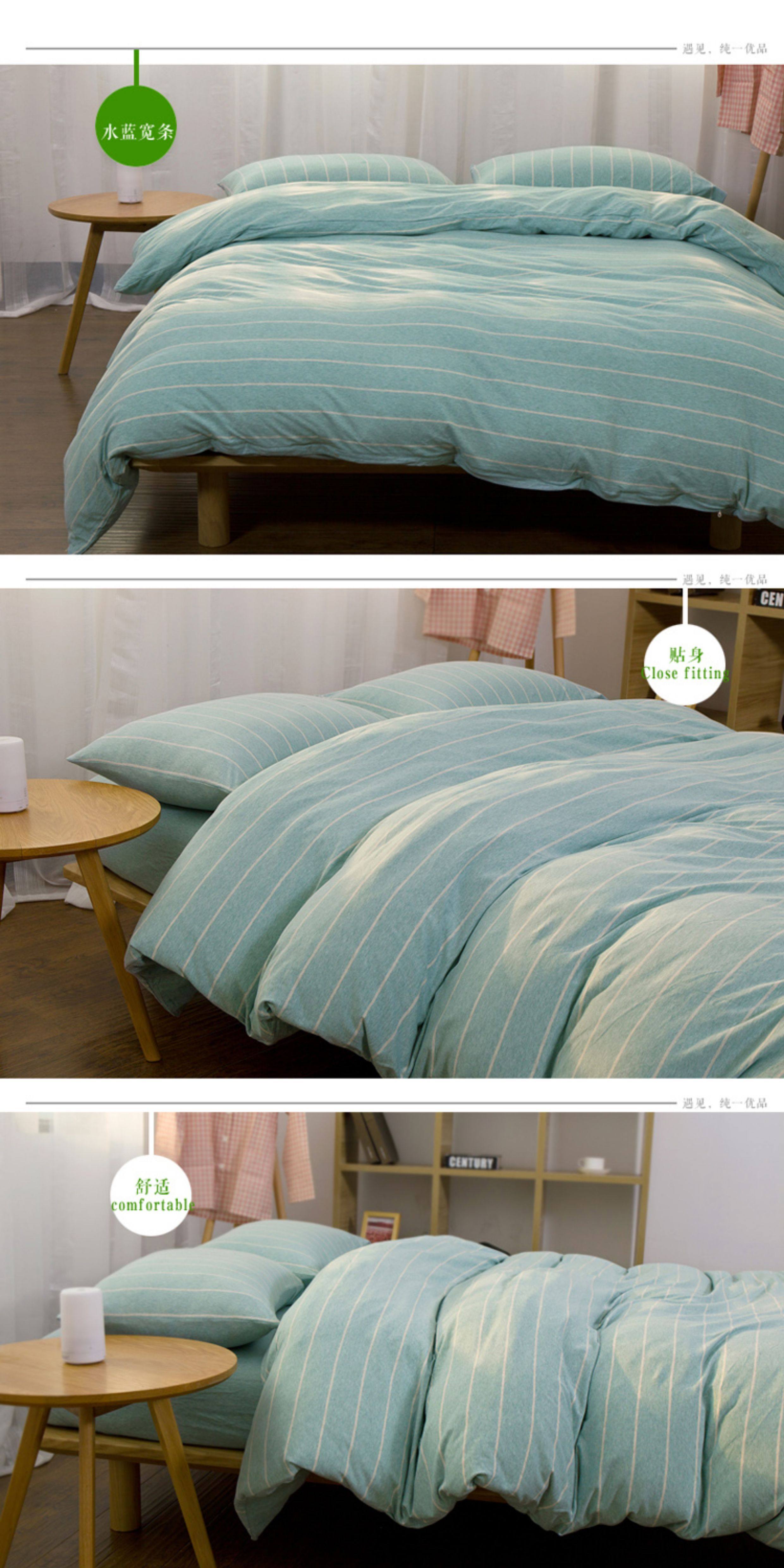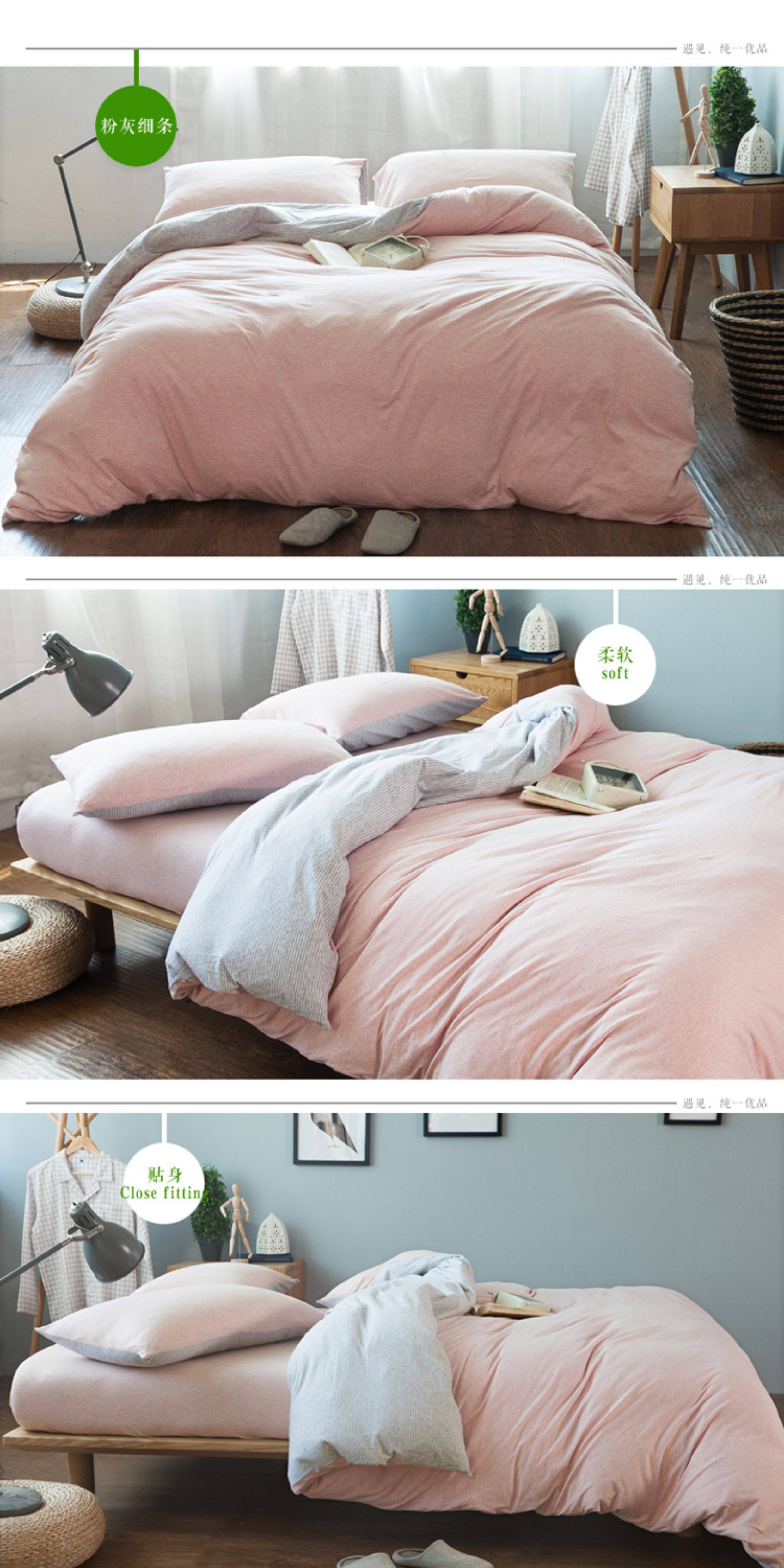 無印日式純棉裸睡天竺棉條紋四件套全棉針織棉1.8m床單床包式良品