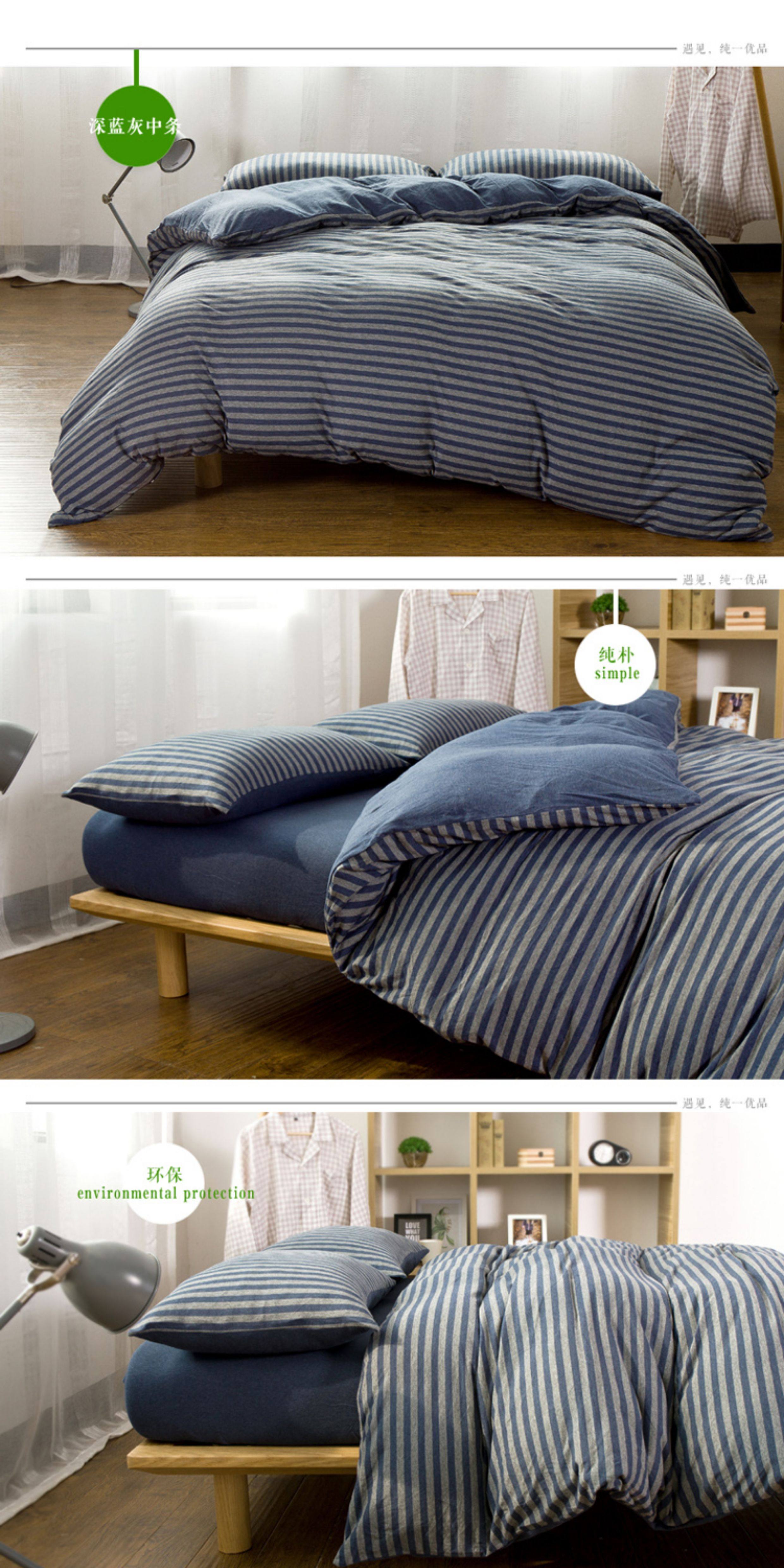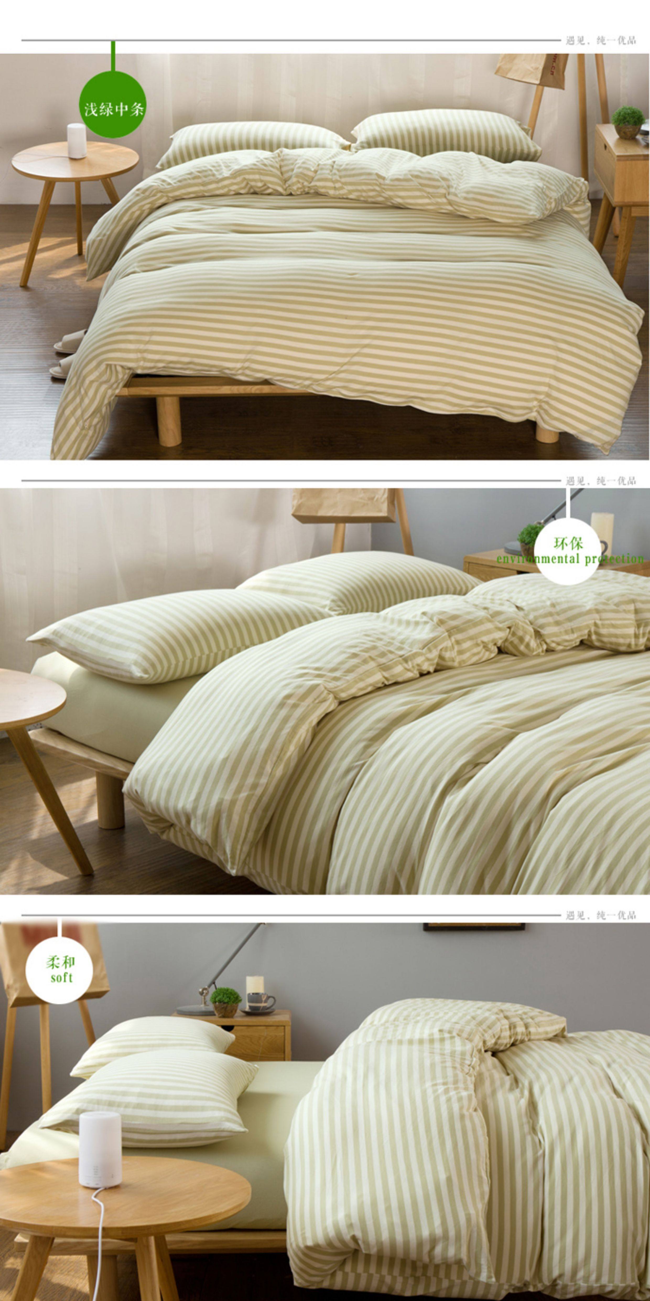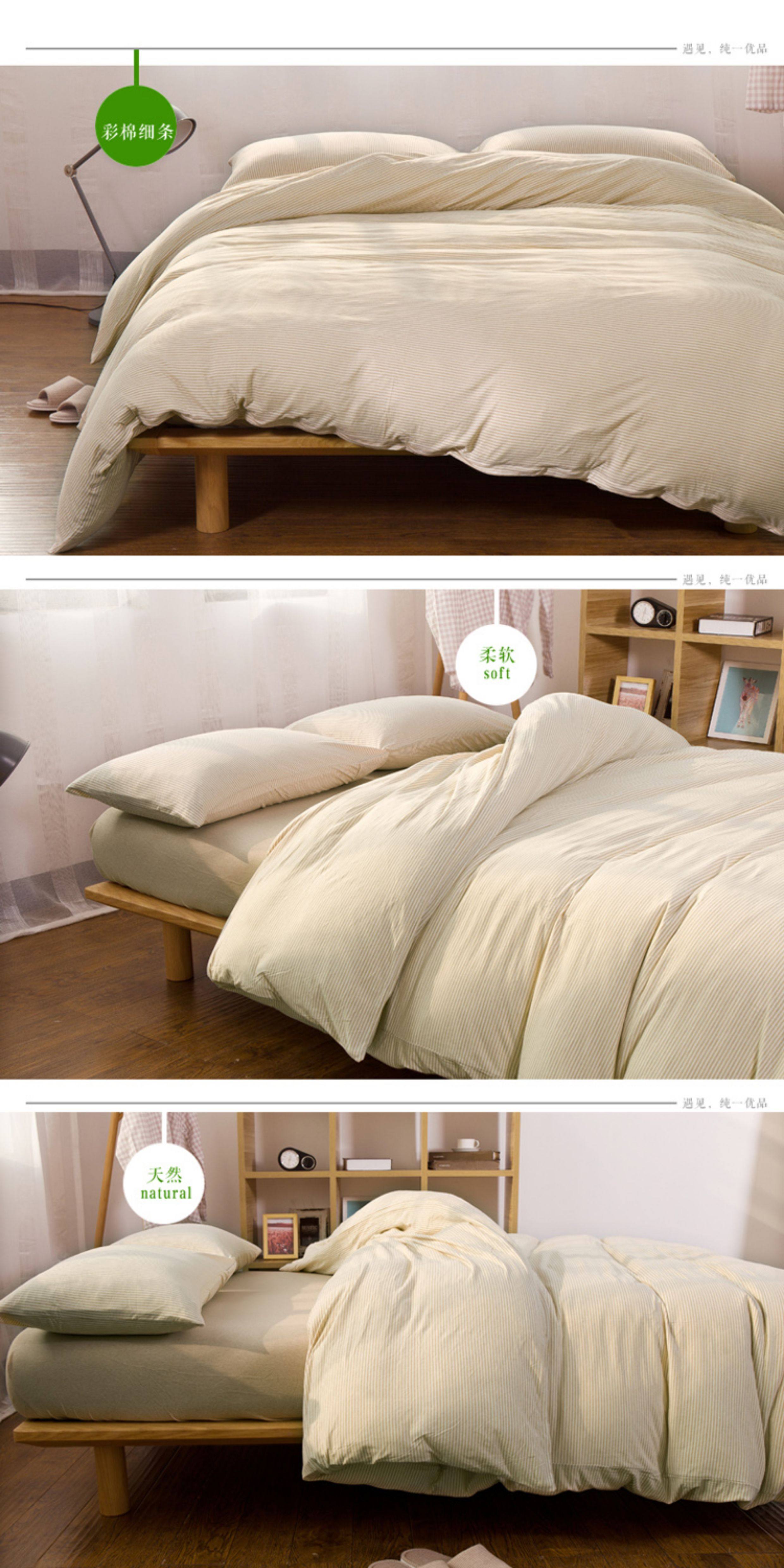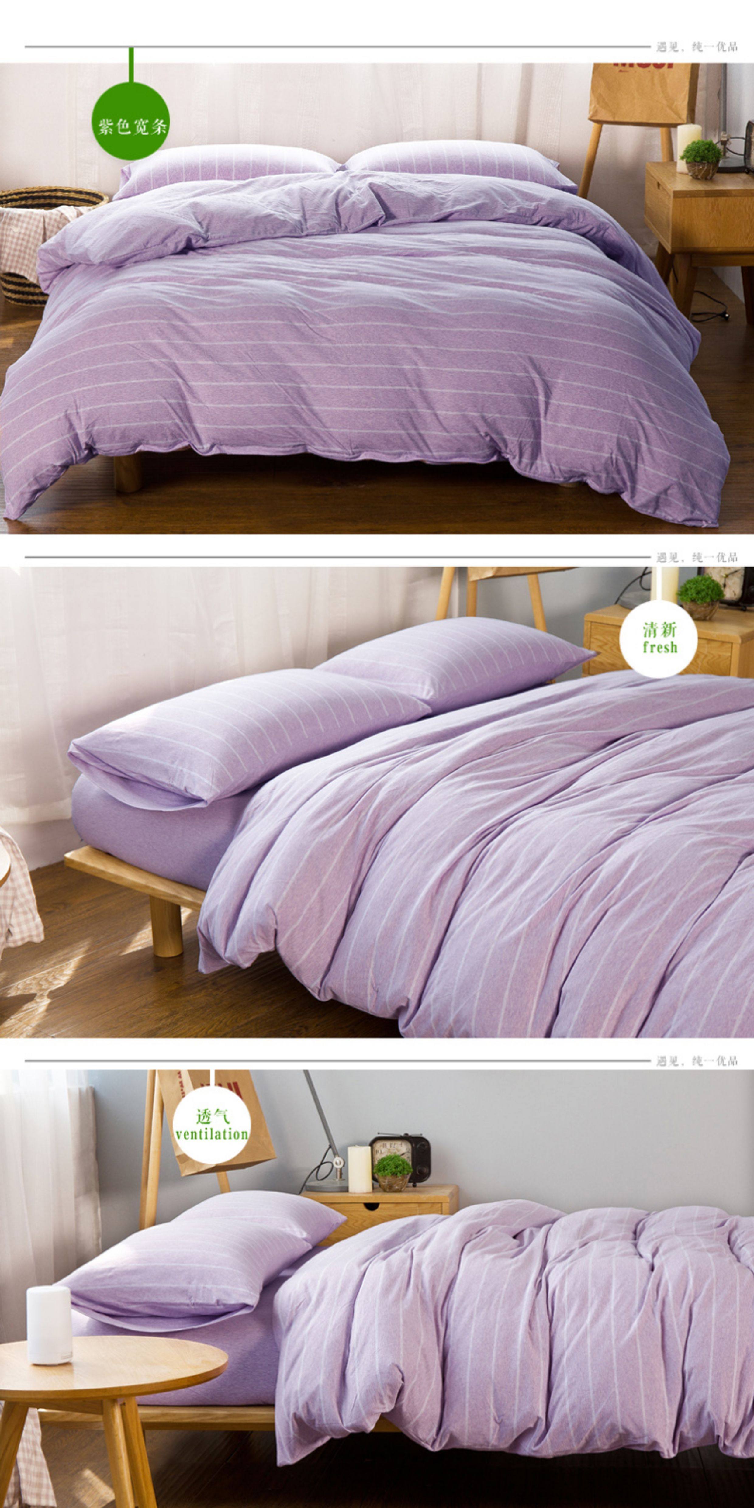 無印日式純棉裸睡天竺棉條紋四件套全棉針織棉1.8m床單床包式良品
