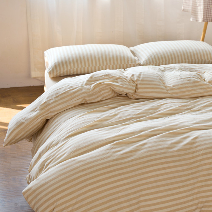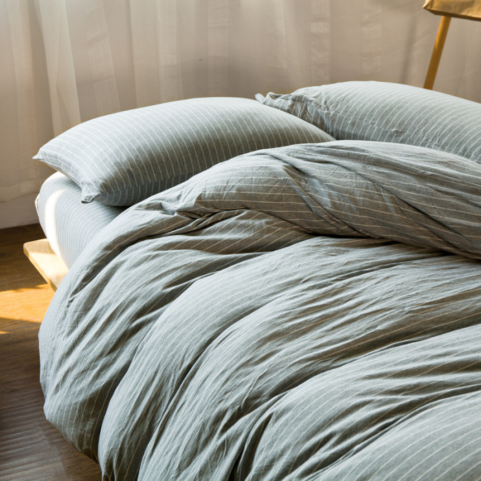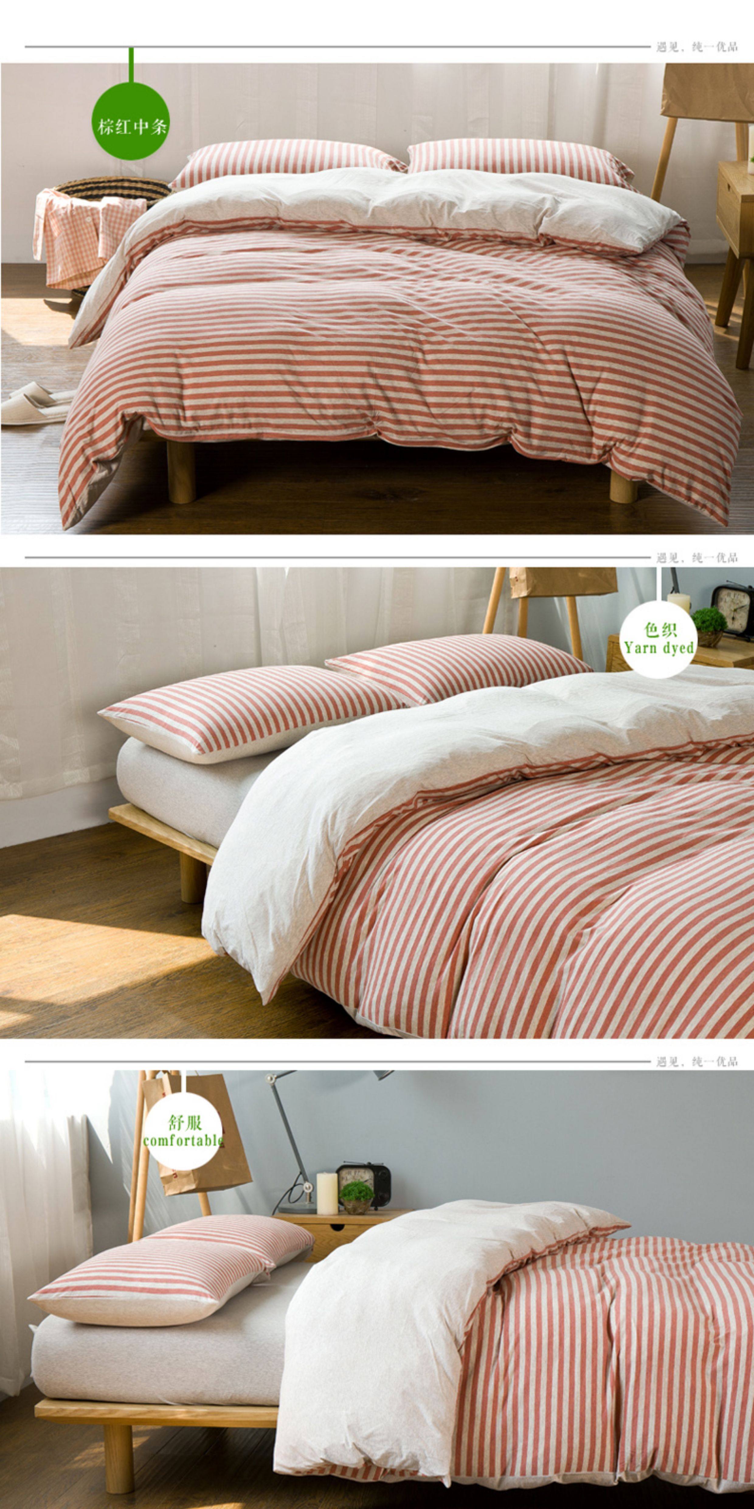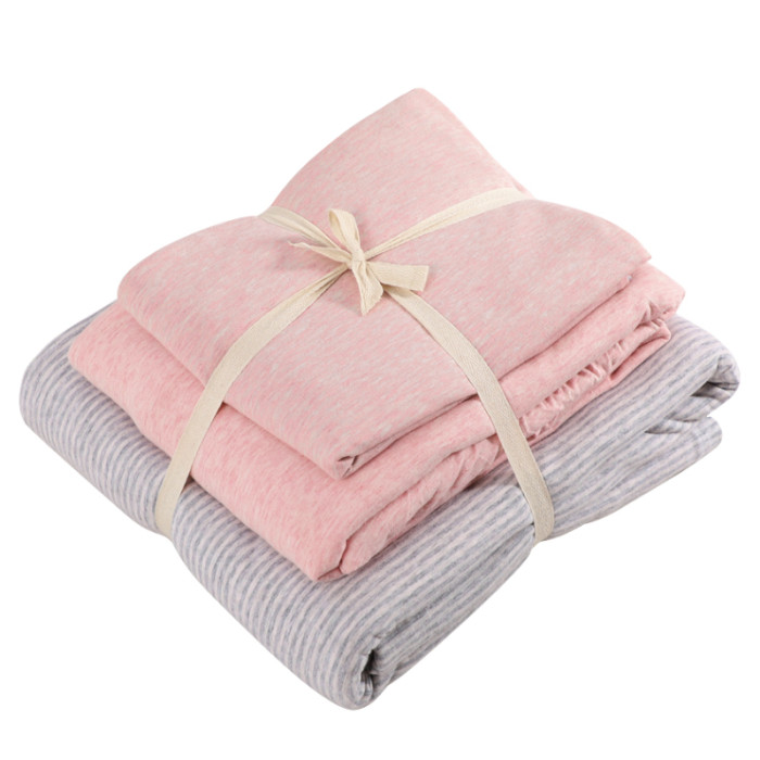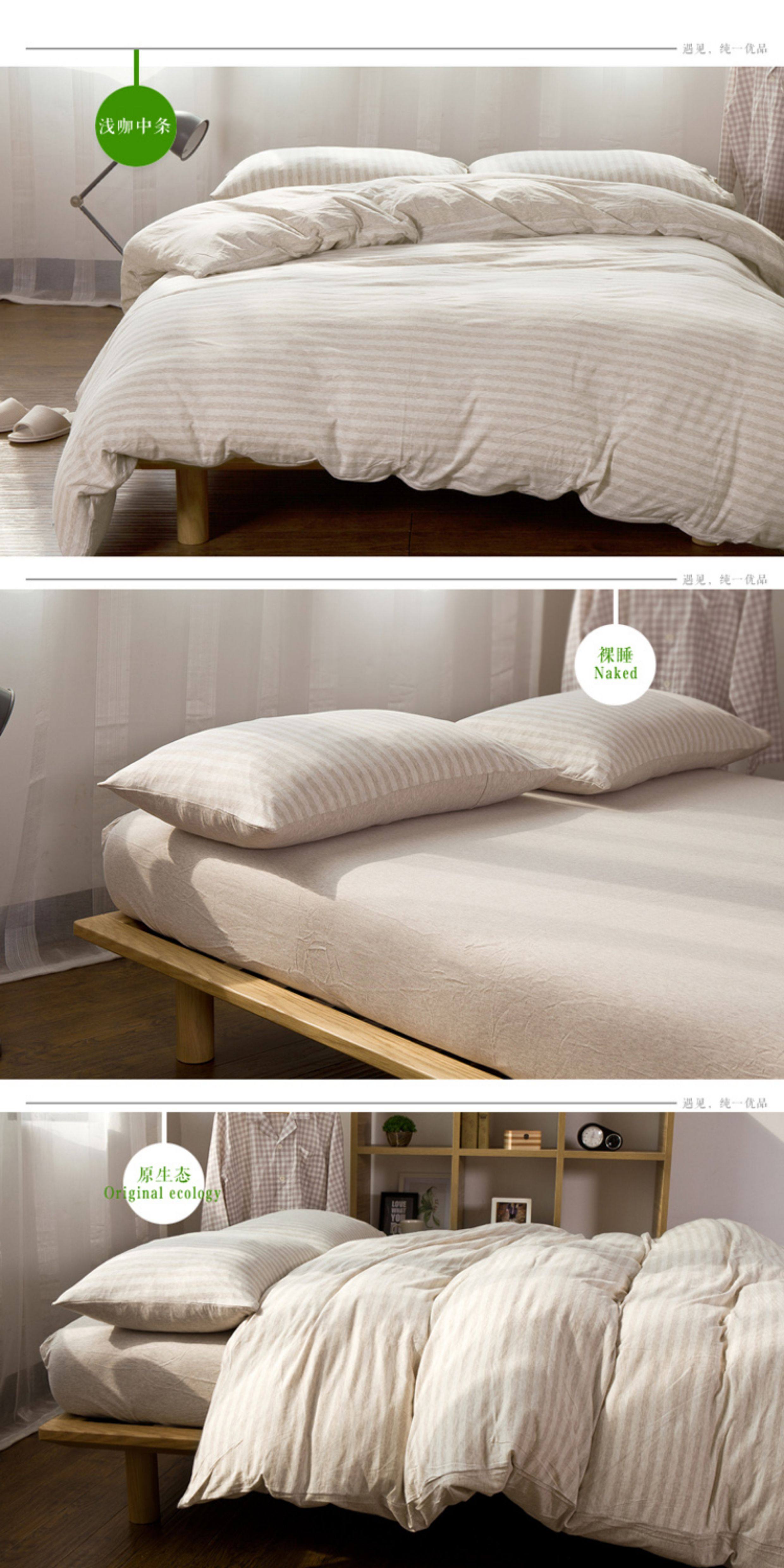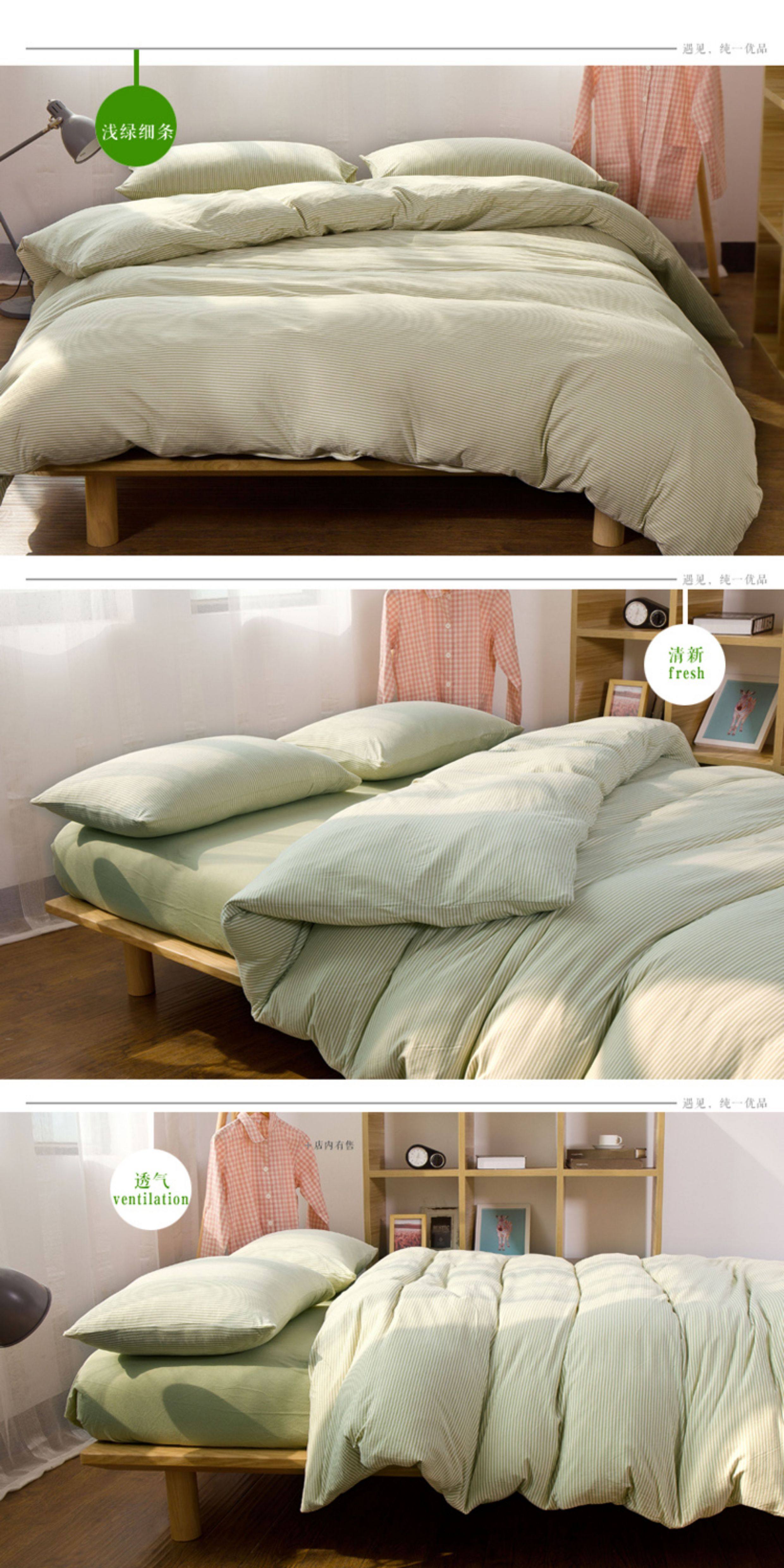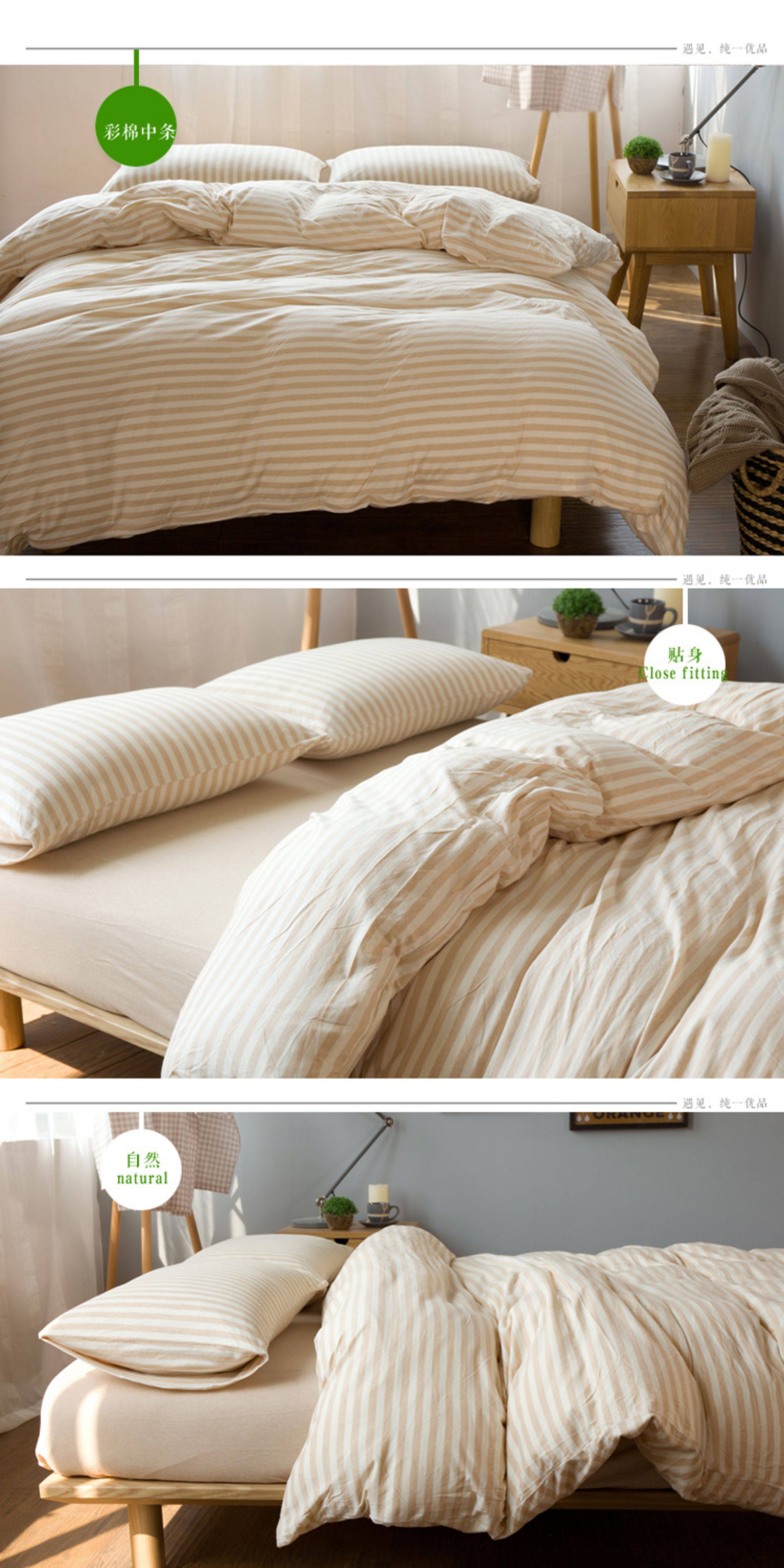 無印日式純棉裸睡天竺棉條紋四件套全棉針織棉1.8m床單床包式良品