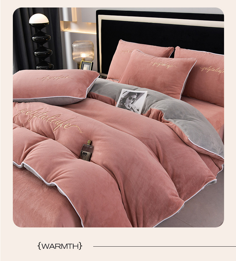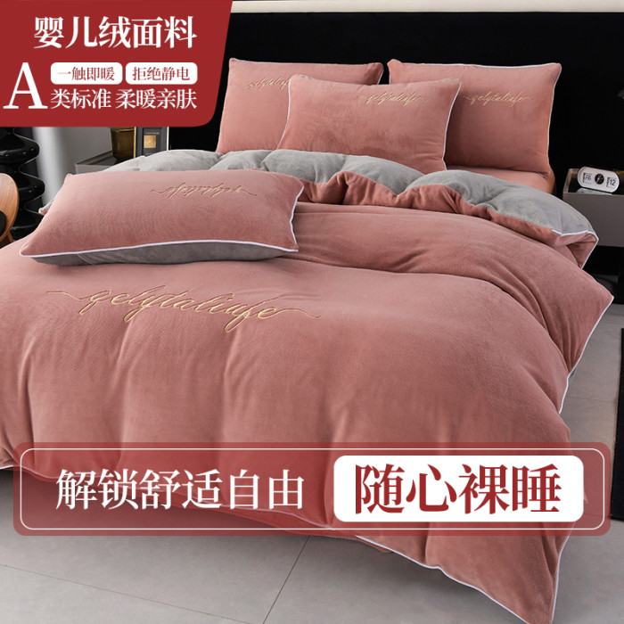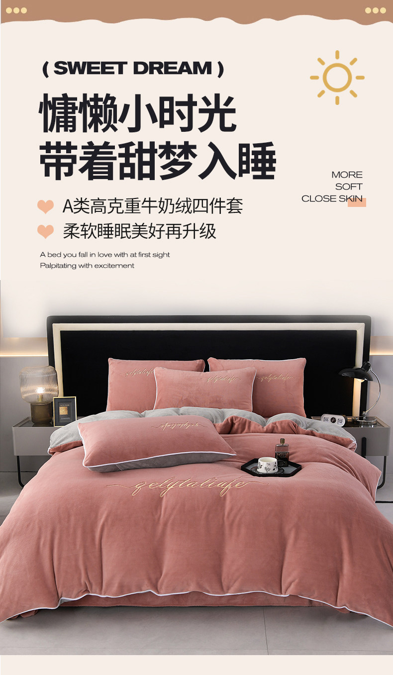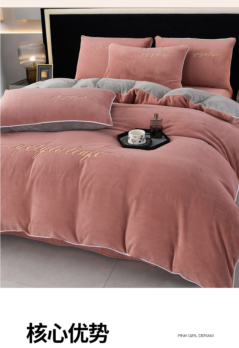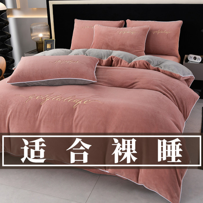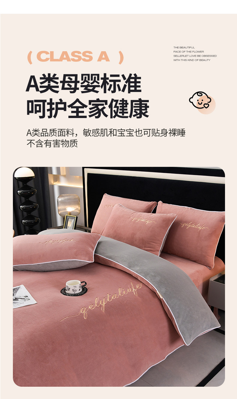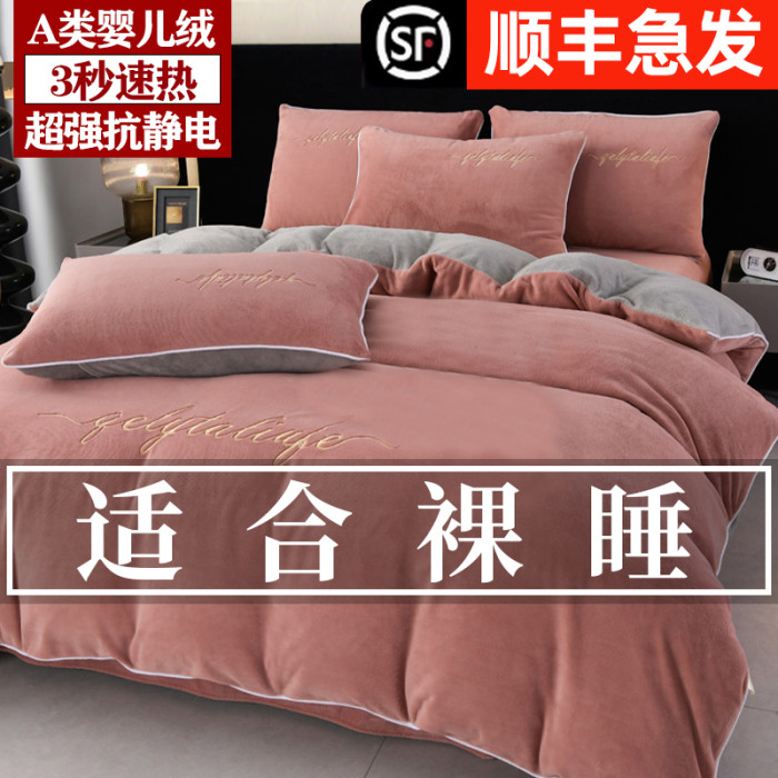 37℃恒溫保暖冬季牛奶絨床上四件套珊瑚雙面絨床單被套加厚床包