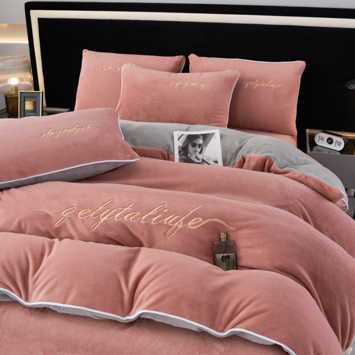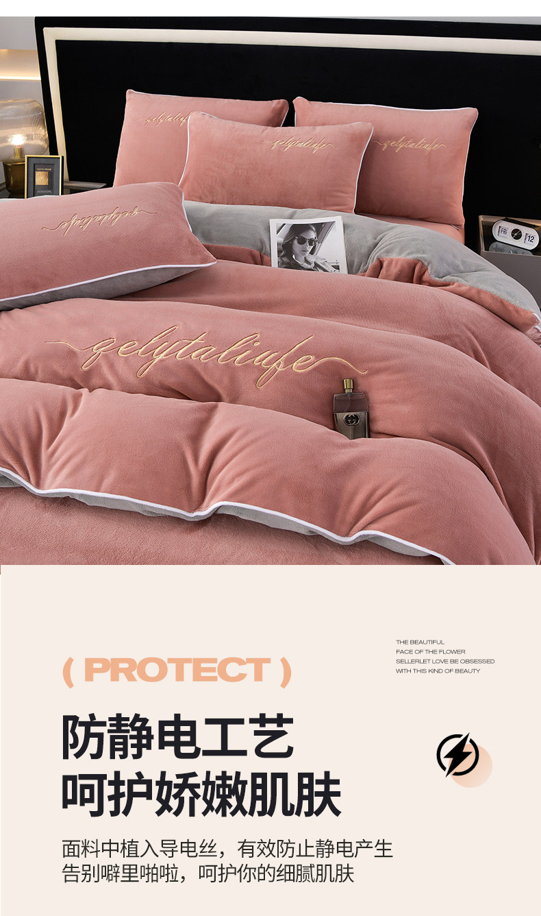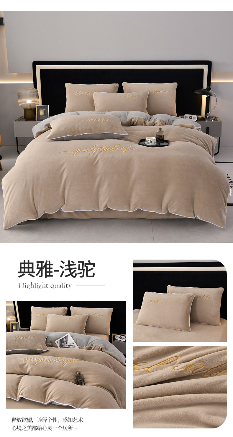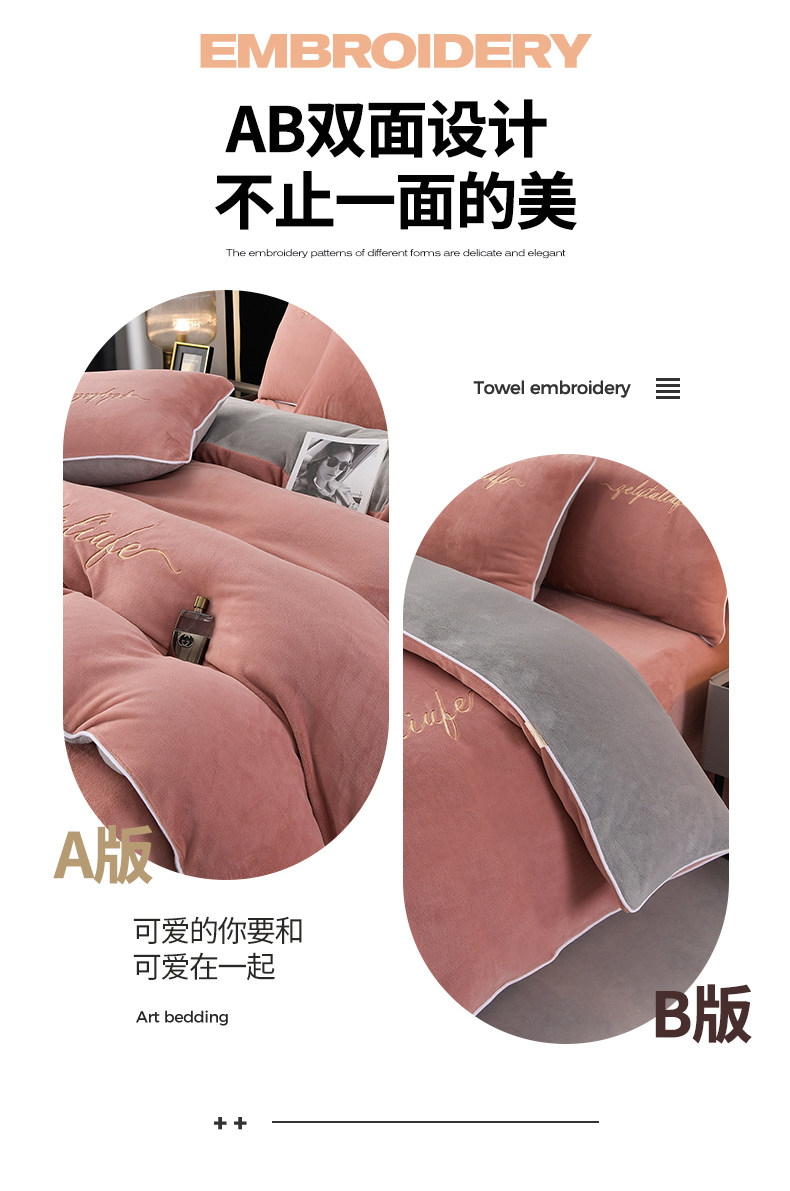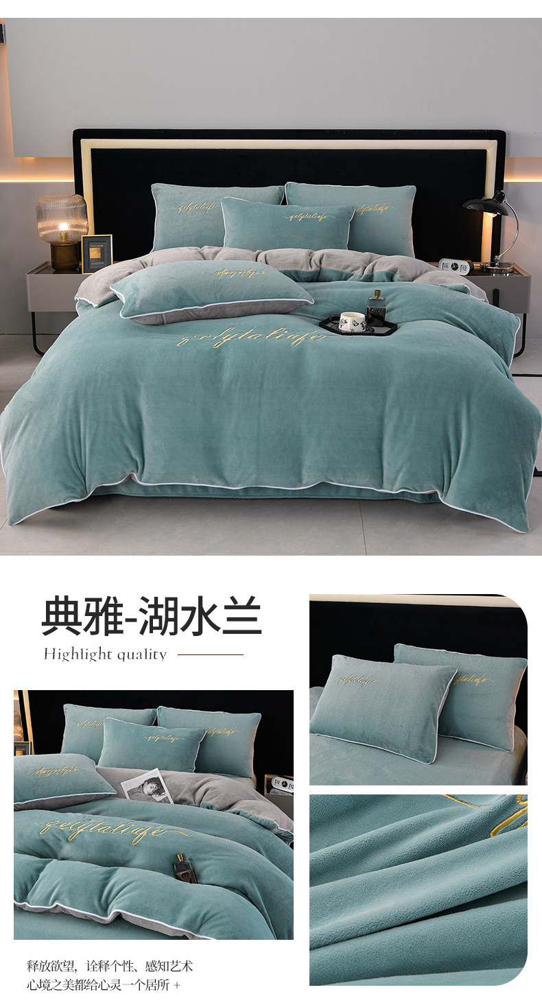 37℃恒溫保暖冬季牛奶絨床上四件套珊瑚雙面絨床單被套加厚床包