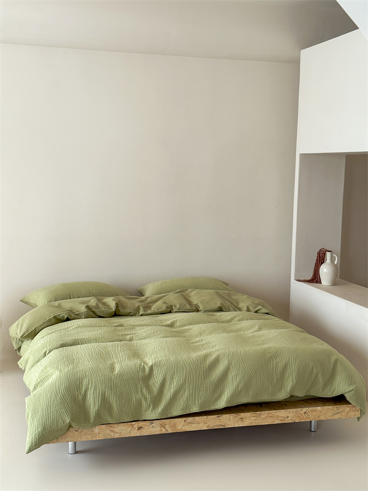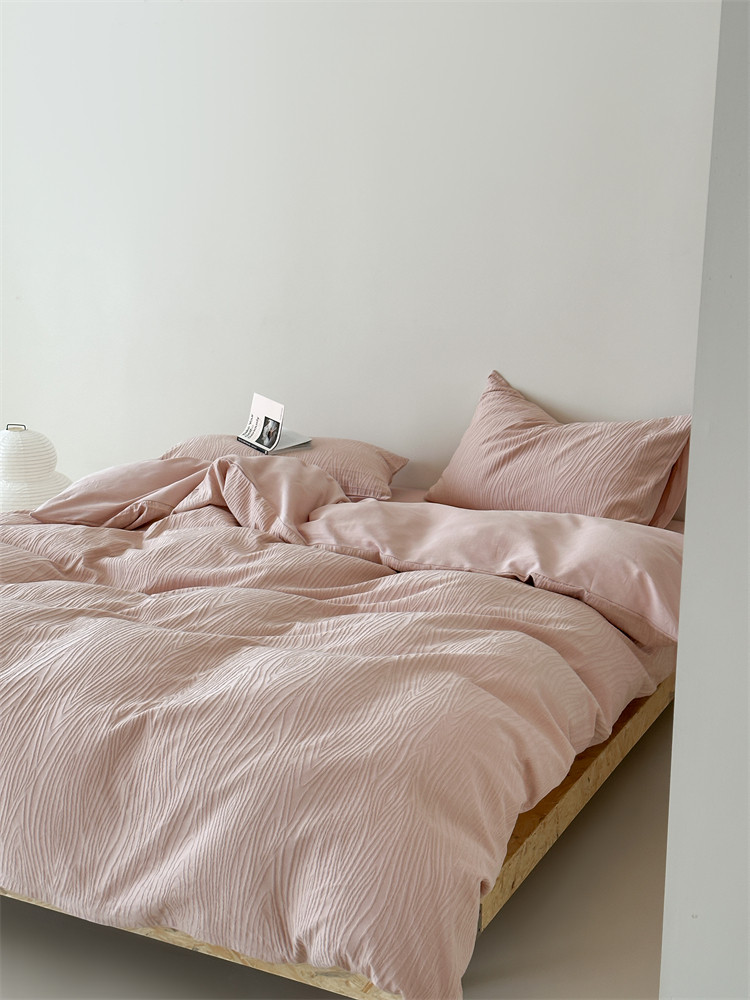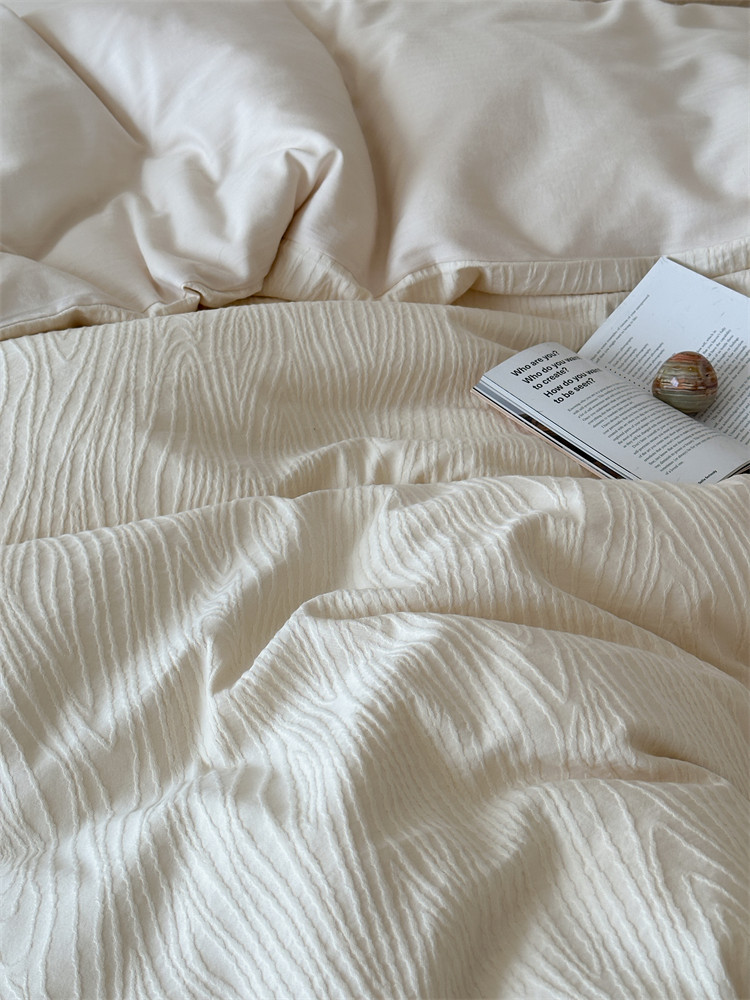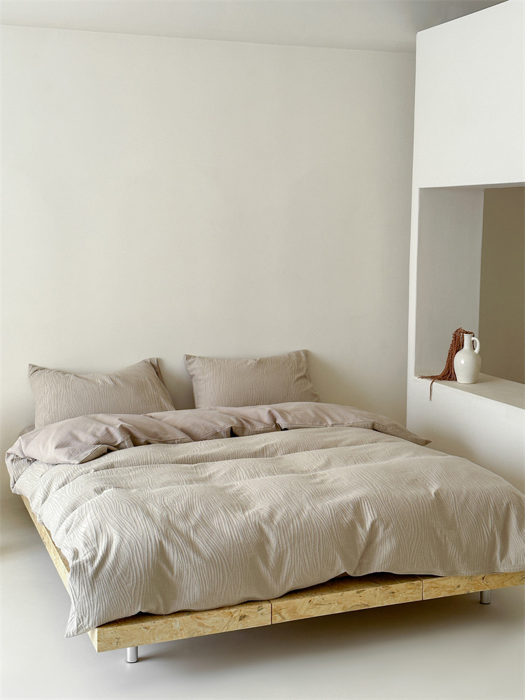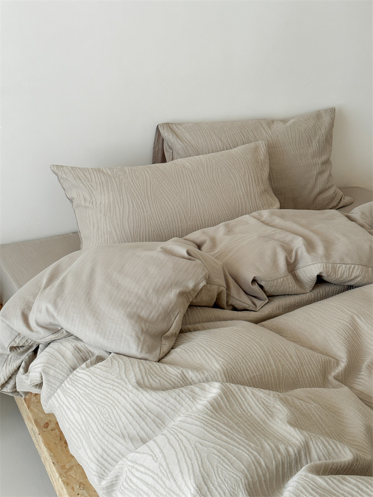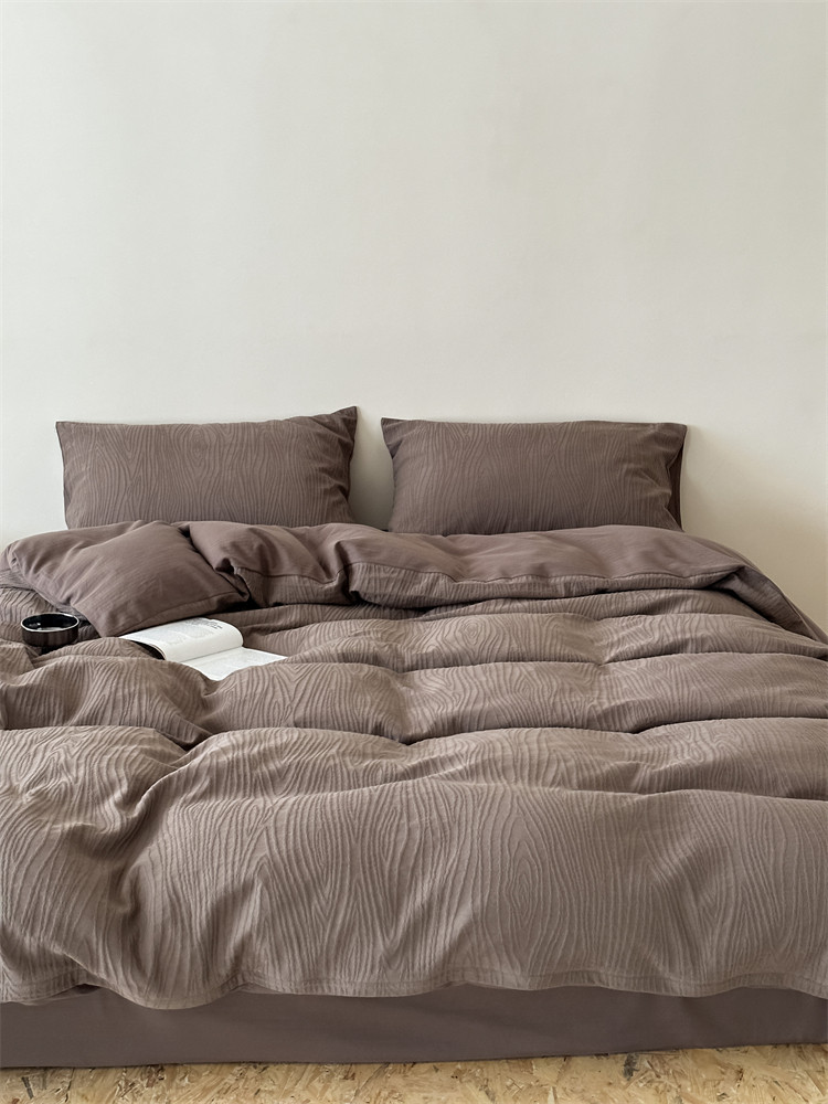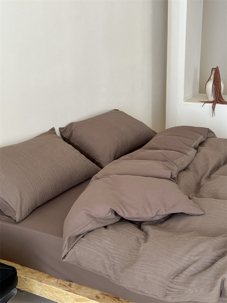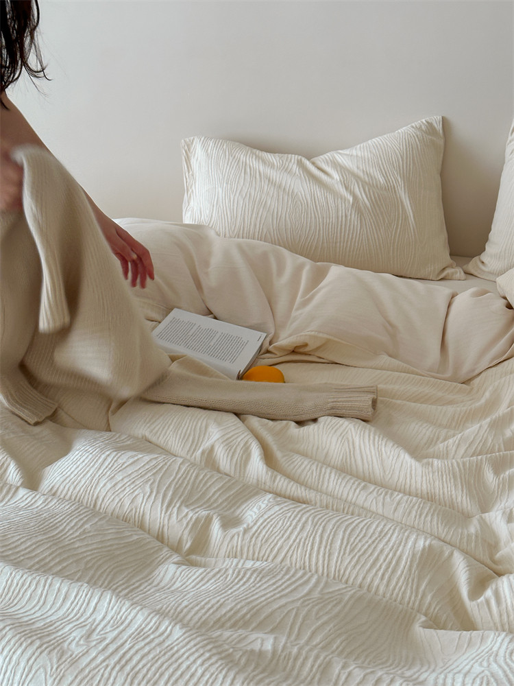 A類全棉侘寂風高級肌理感床包四件套純棉日式簡約風提花春夏被套