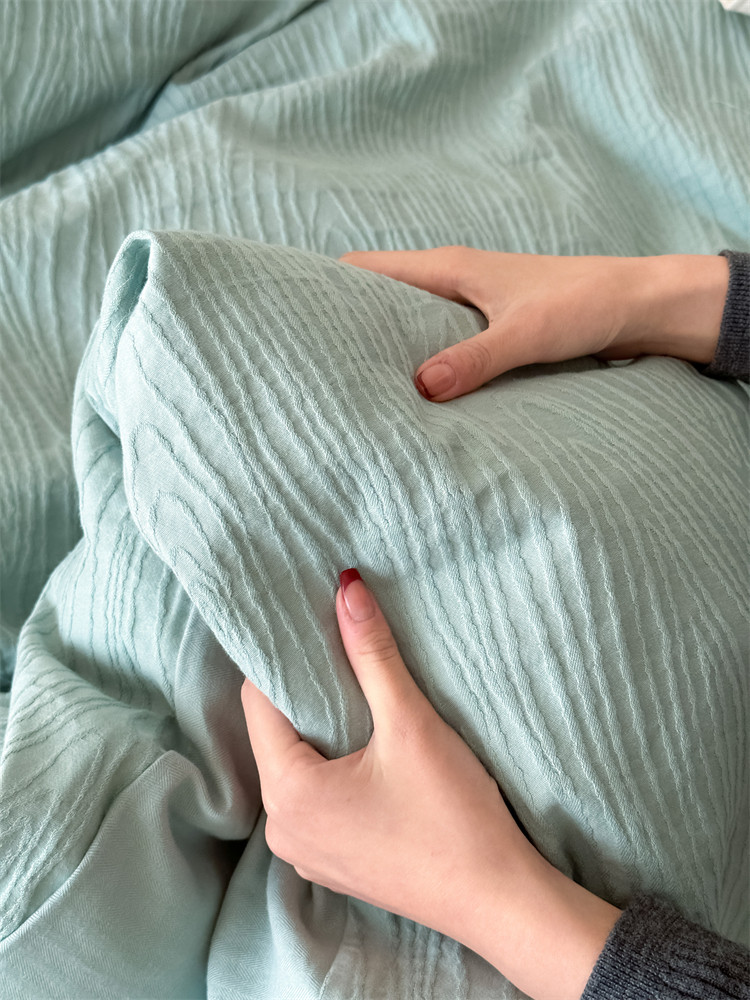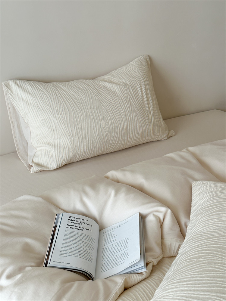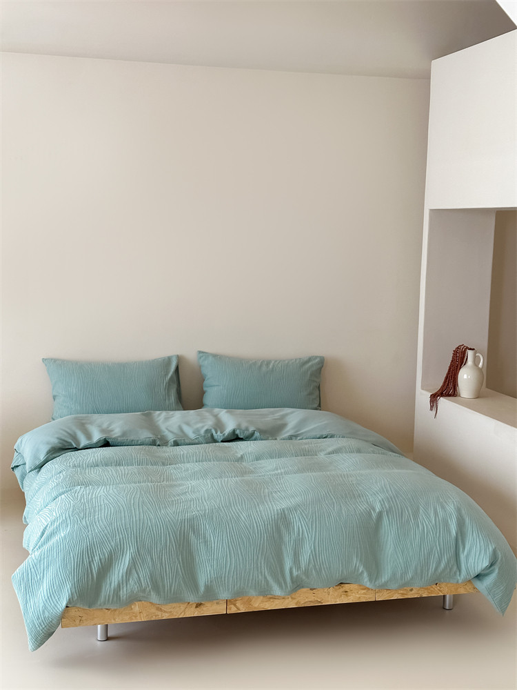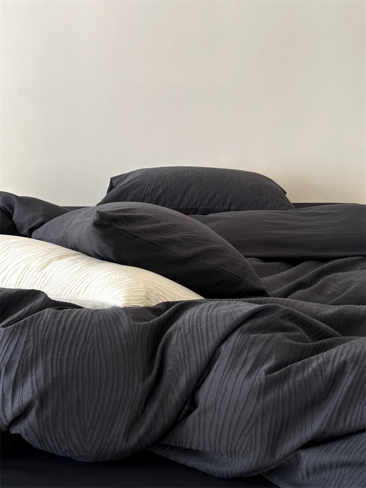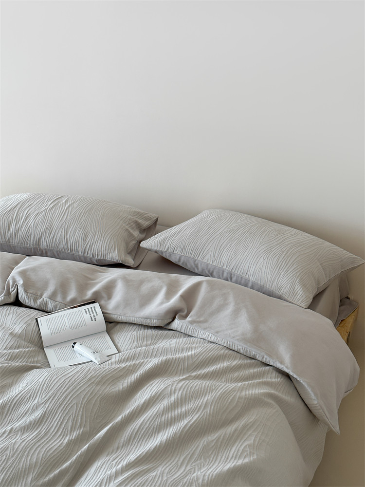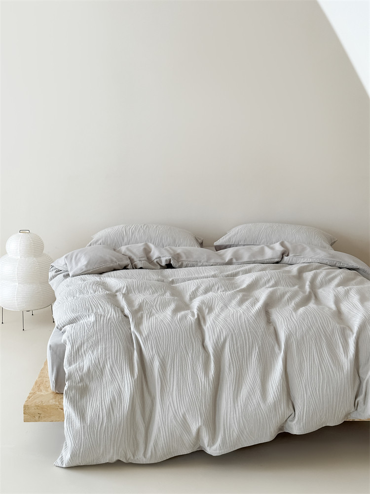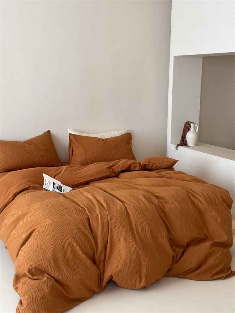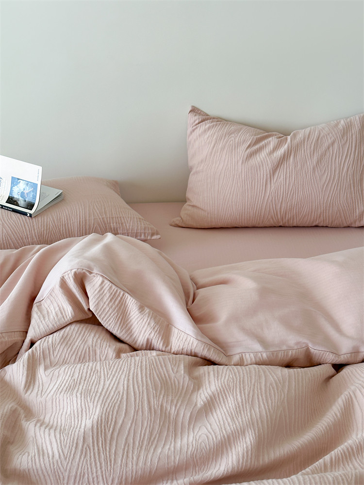 A類全棉侘寂風高級肌理感床包四件套純棉日式簡約風提花春夏被套