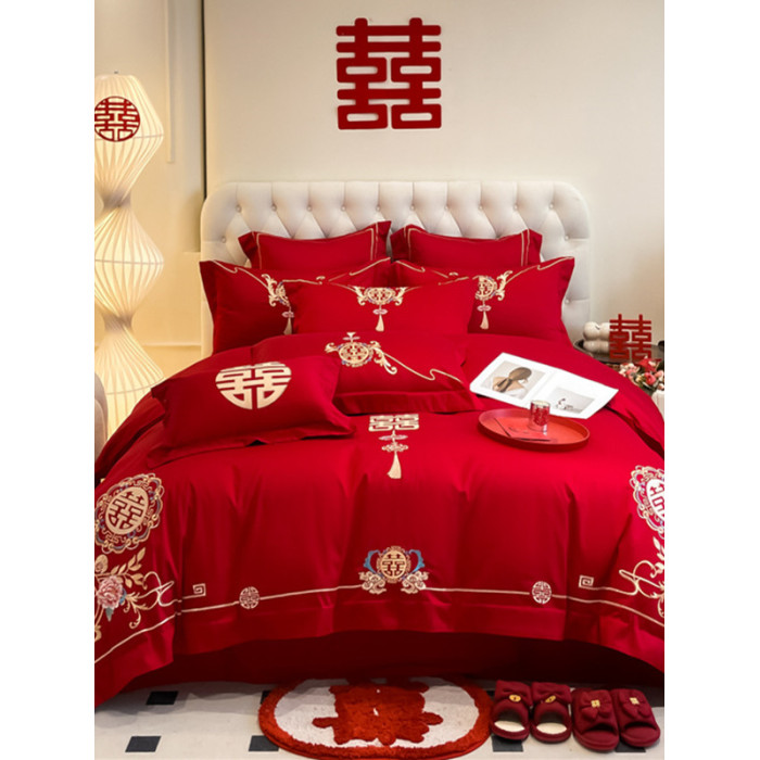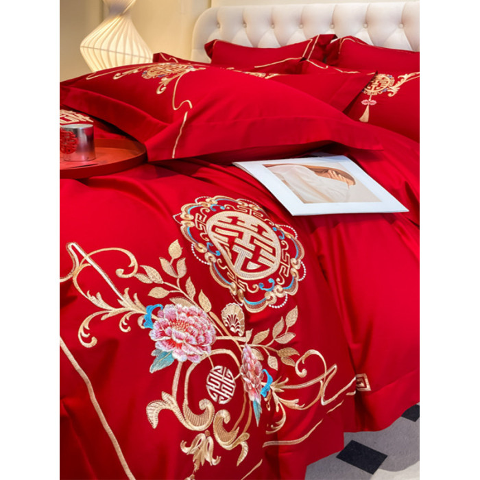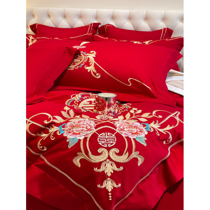 高檔中式結婚四件套大紅色婚慶純棉被套婚房喜被新婚陪嫁床上用品
