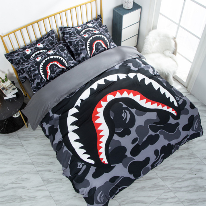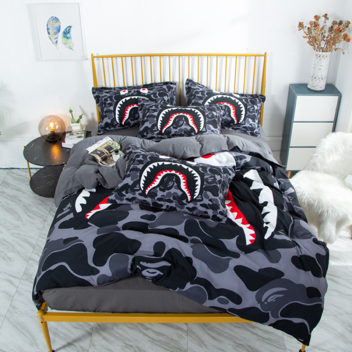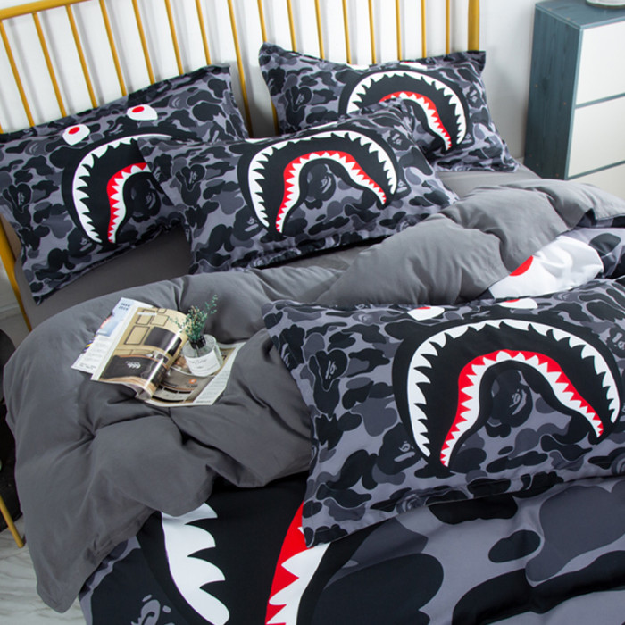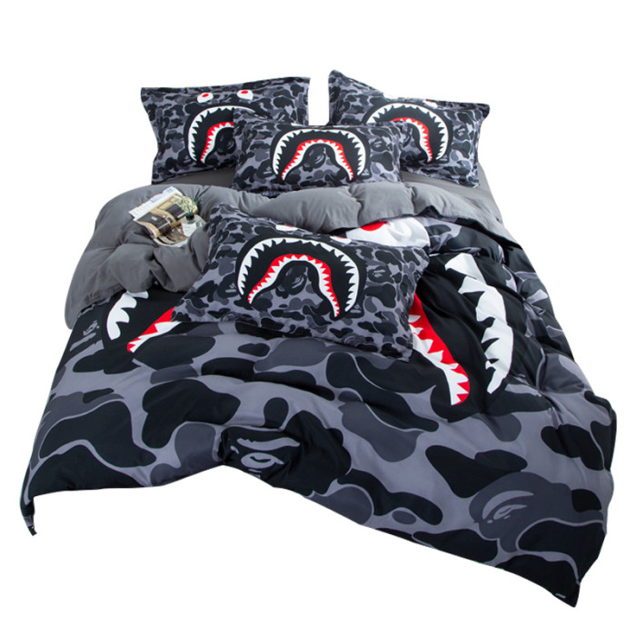 開學季潮牌鯊魚四件套個性網紅款1.5m學生男女宿捨床單被罩三件套