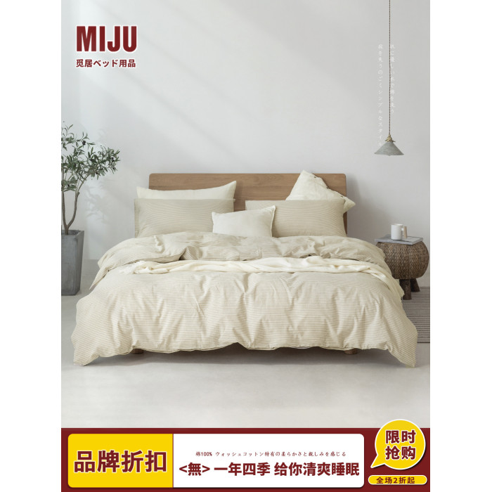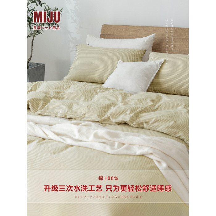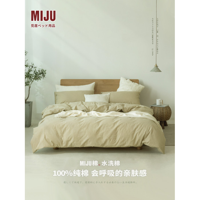 MIJU覔居純棉床上四件套全棉純色水洗床品床單被套床包宿捨三件套