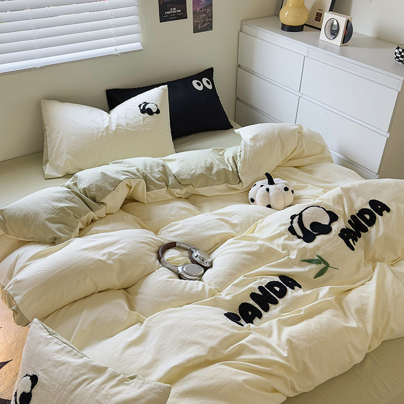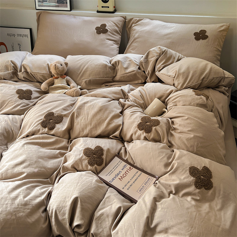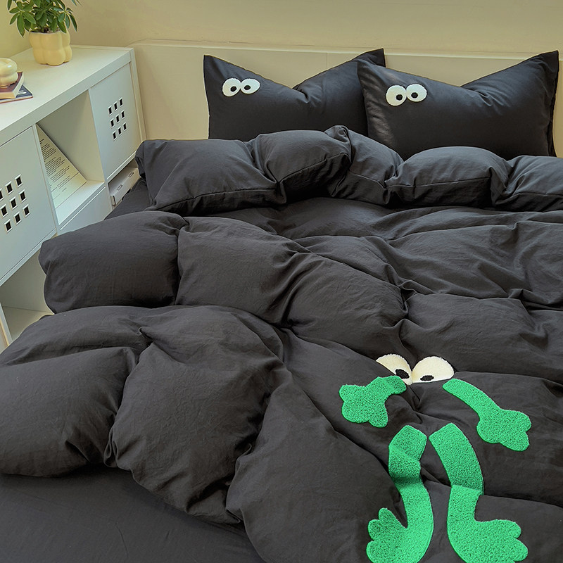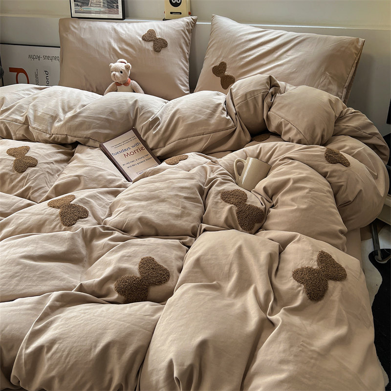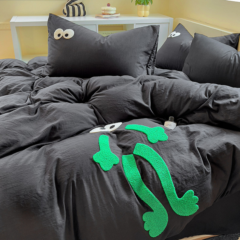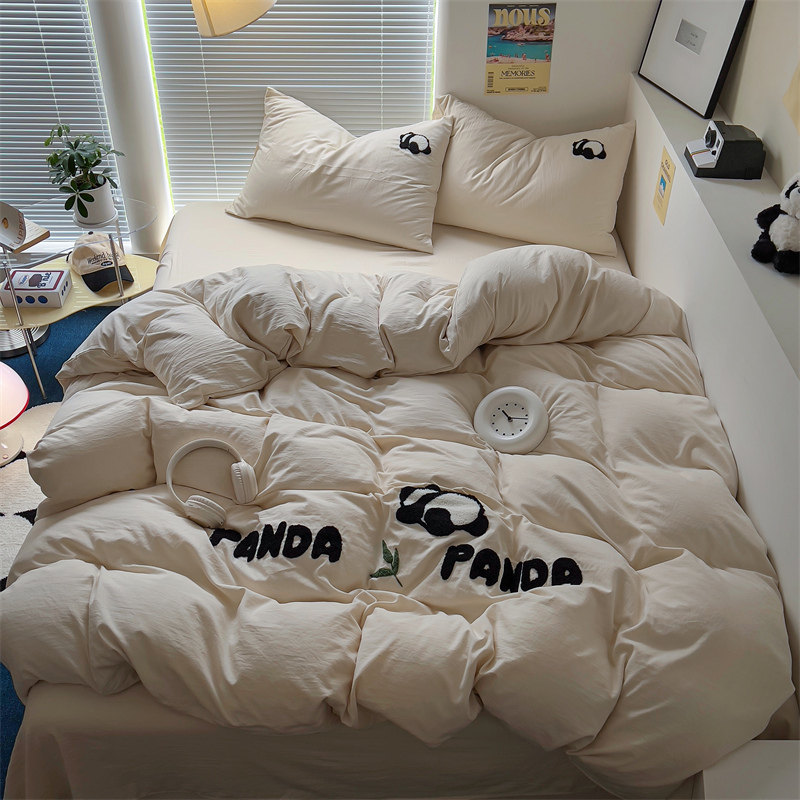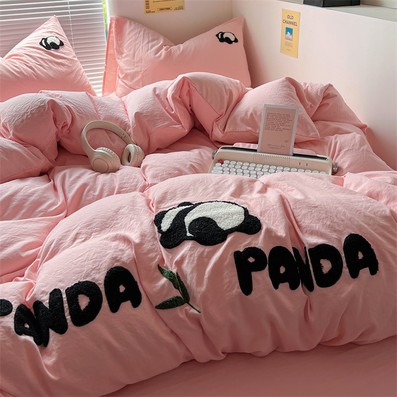 ins風卡通毛巾綉水洗棉四件套床上被套宿捨床單學生三件套床品1.5