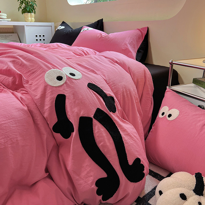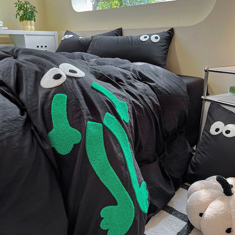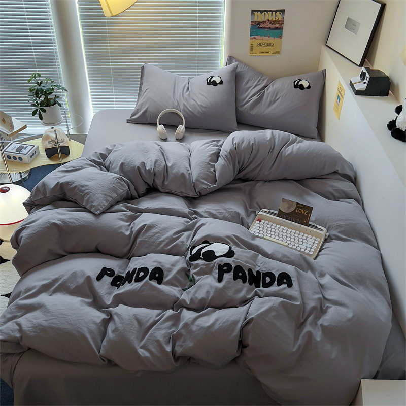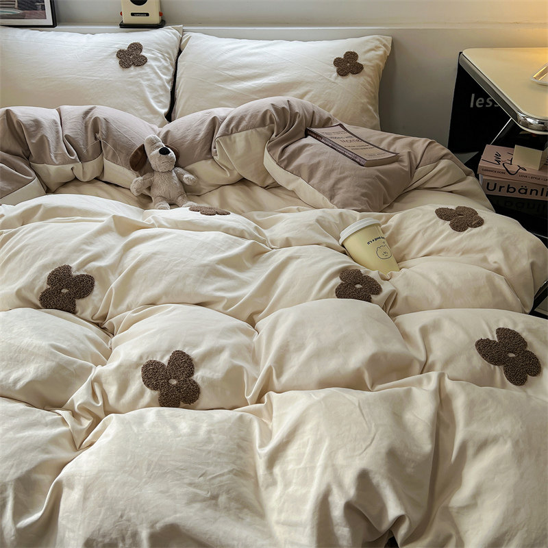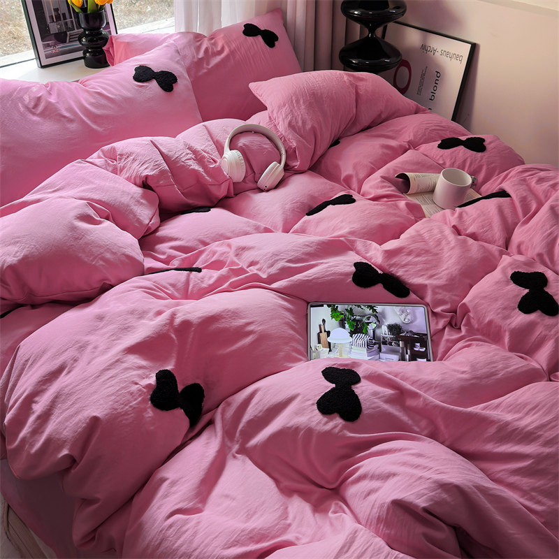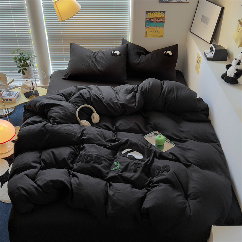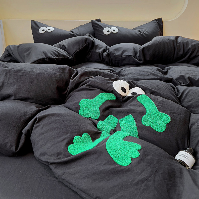 ins風卡通毛巾綉水洗棉四件套床上被套宿捨床單學生三件套床品1.5