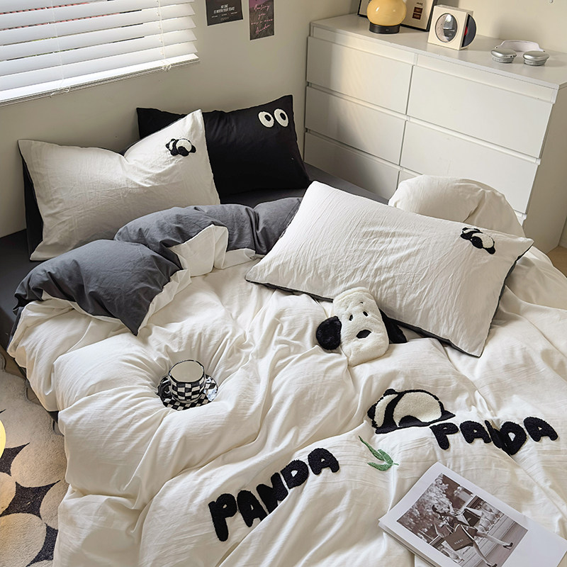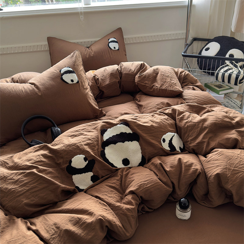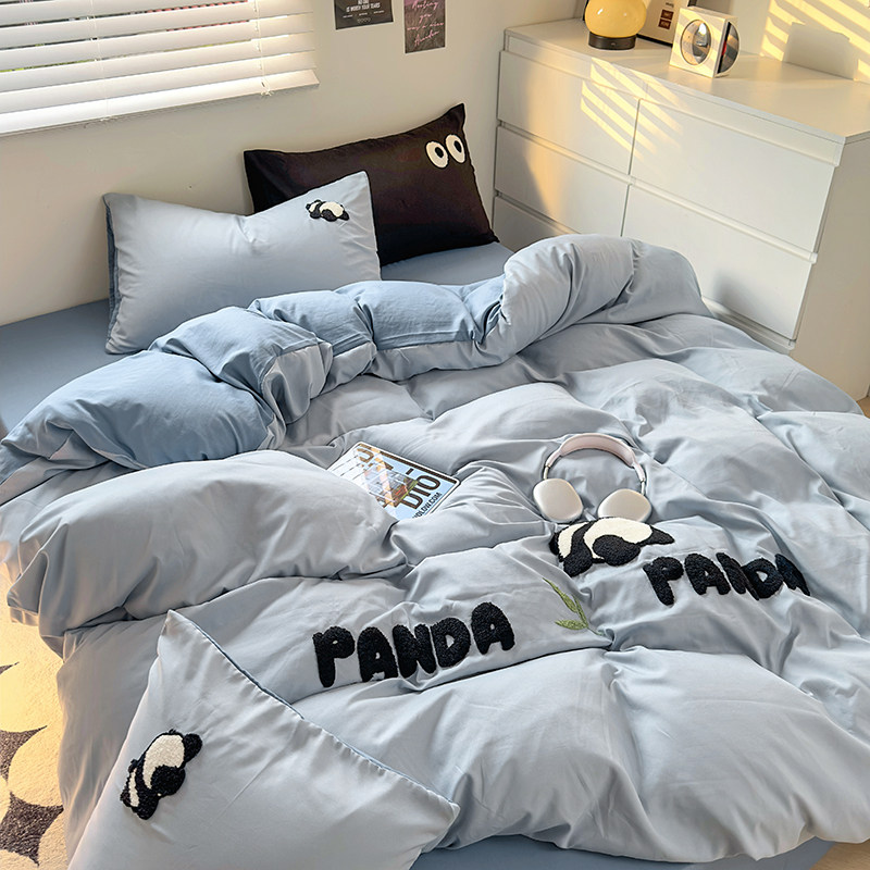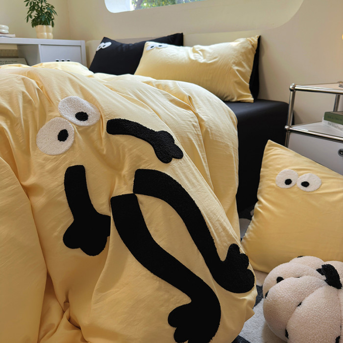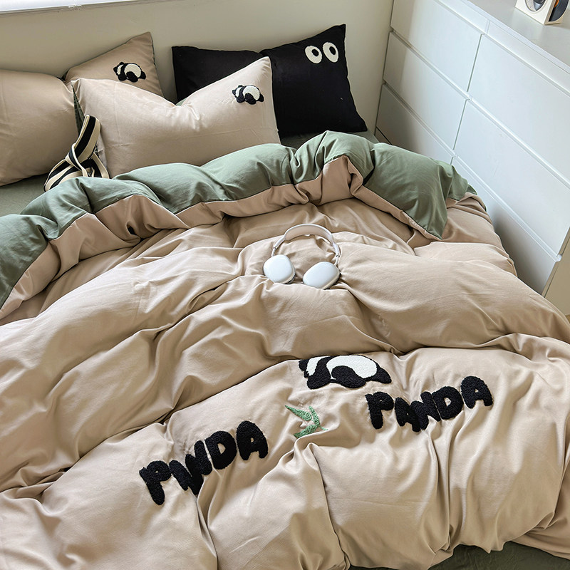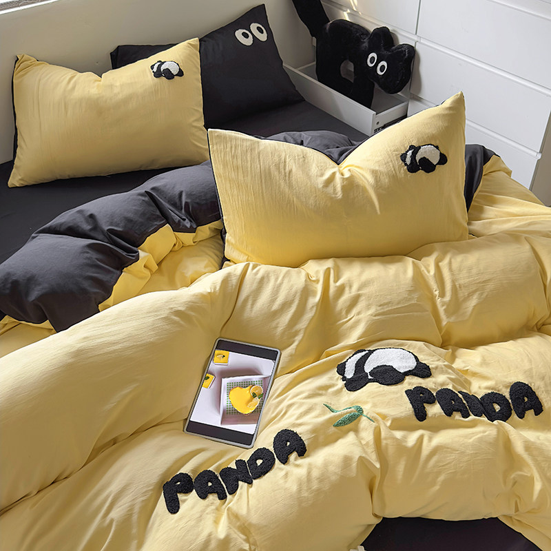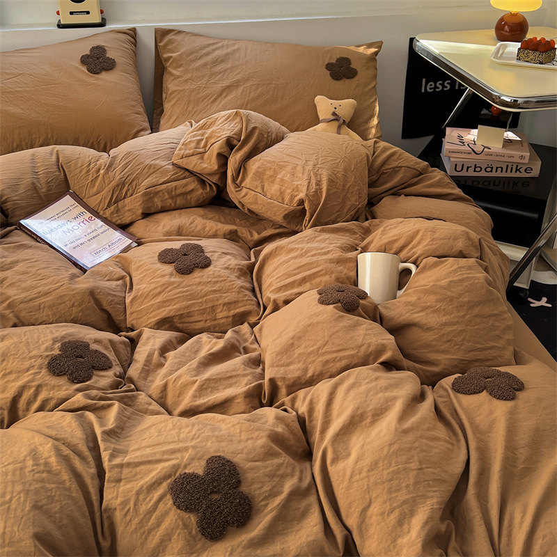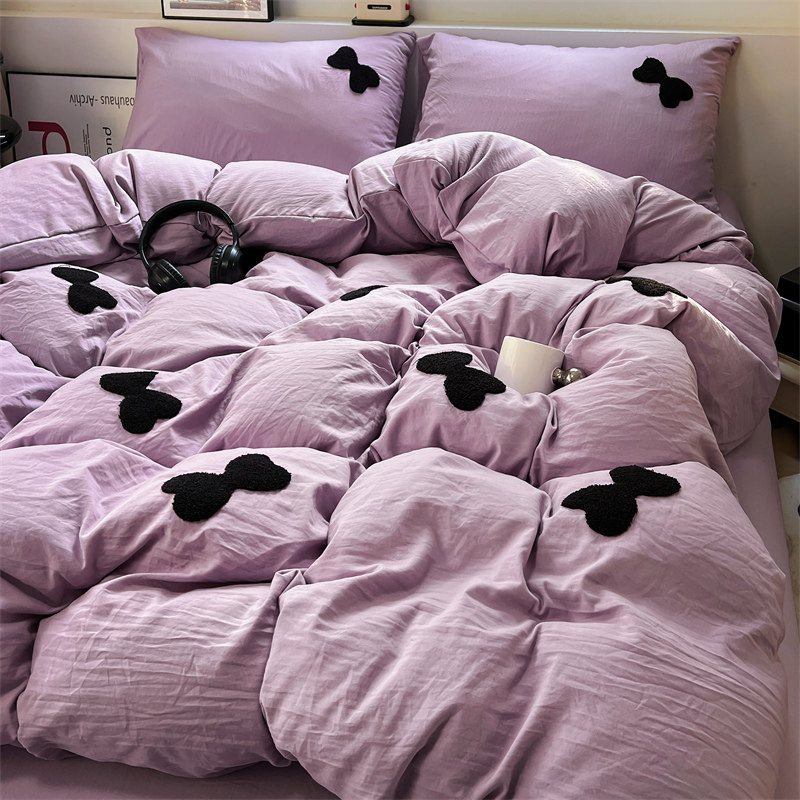 ins風卡通毛巾綉水洗棉四件套床上被套宿捨床單學生三件套床品1.5