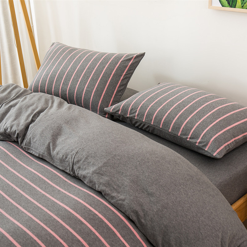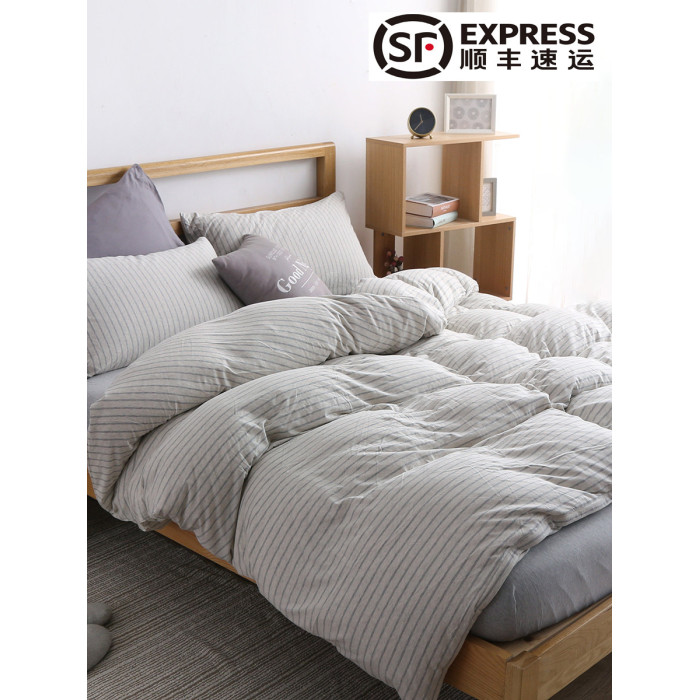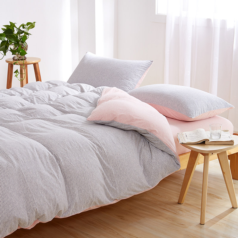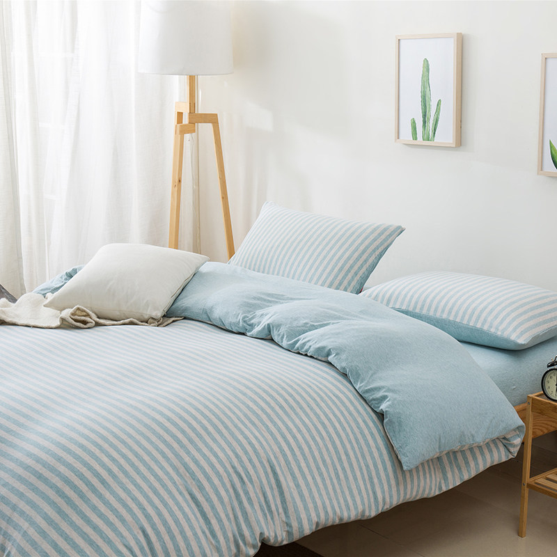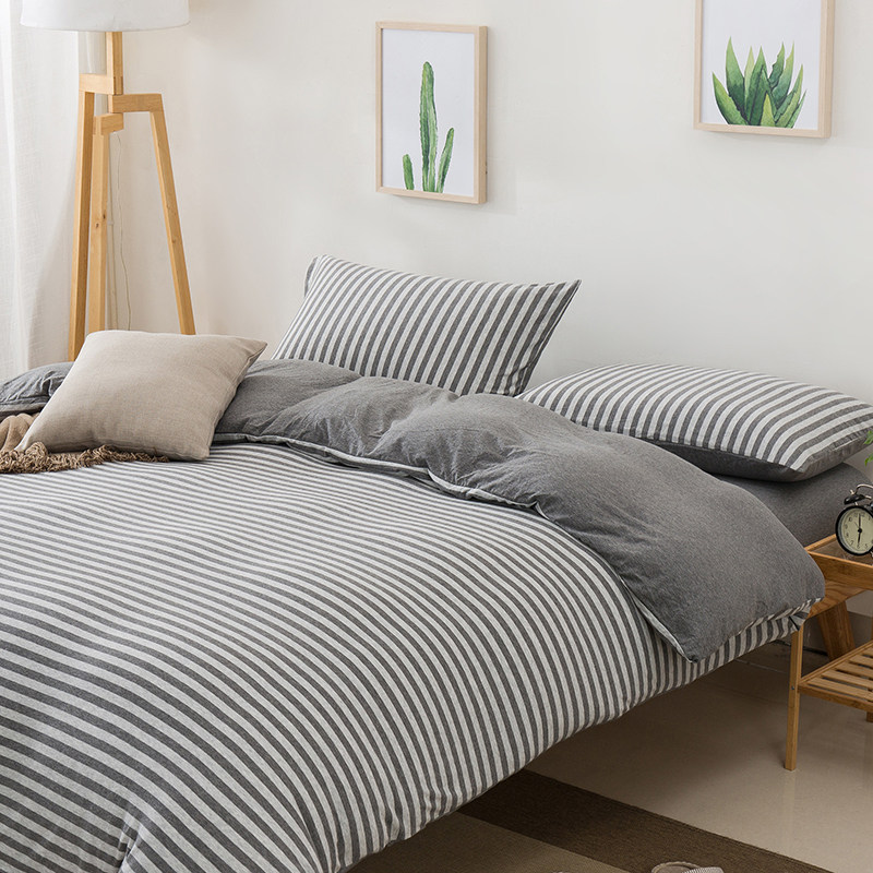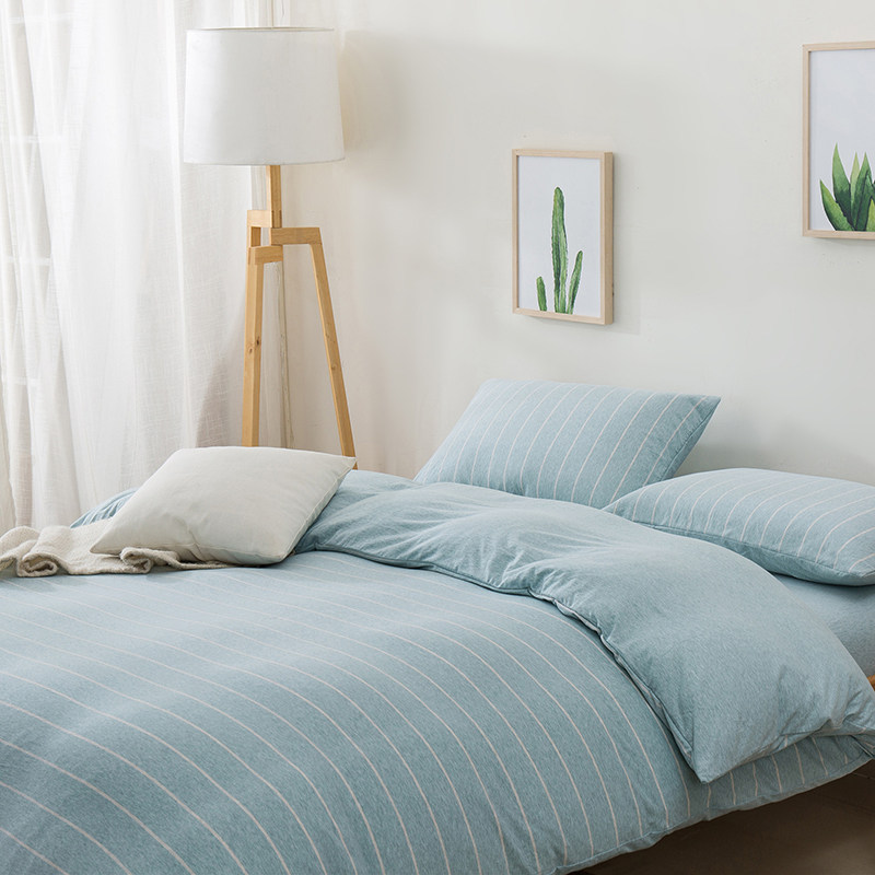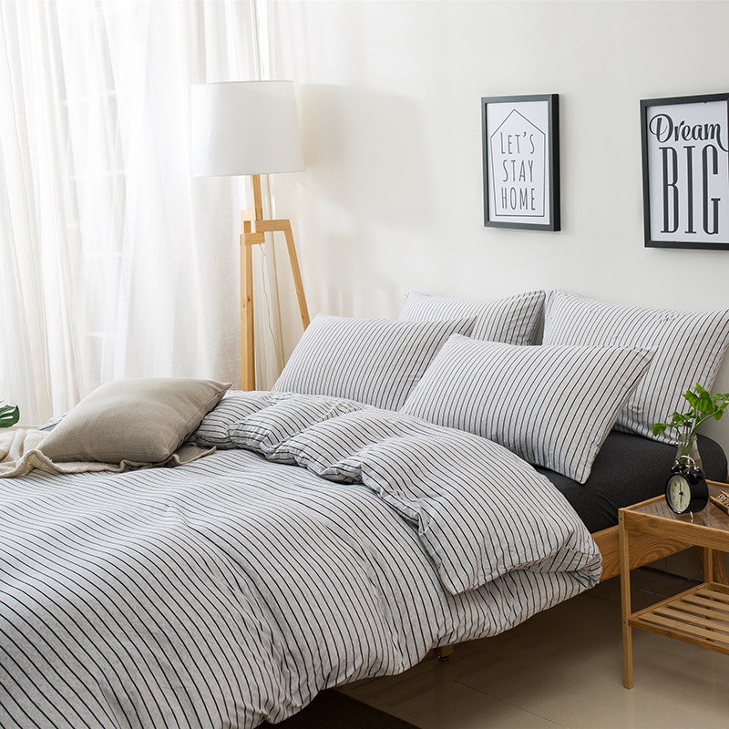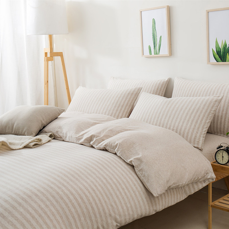 裸睡神器 色織全棉天竺棉四件套 A類純棉針織棉北歐日系床上用品