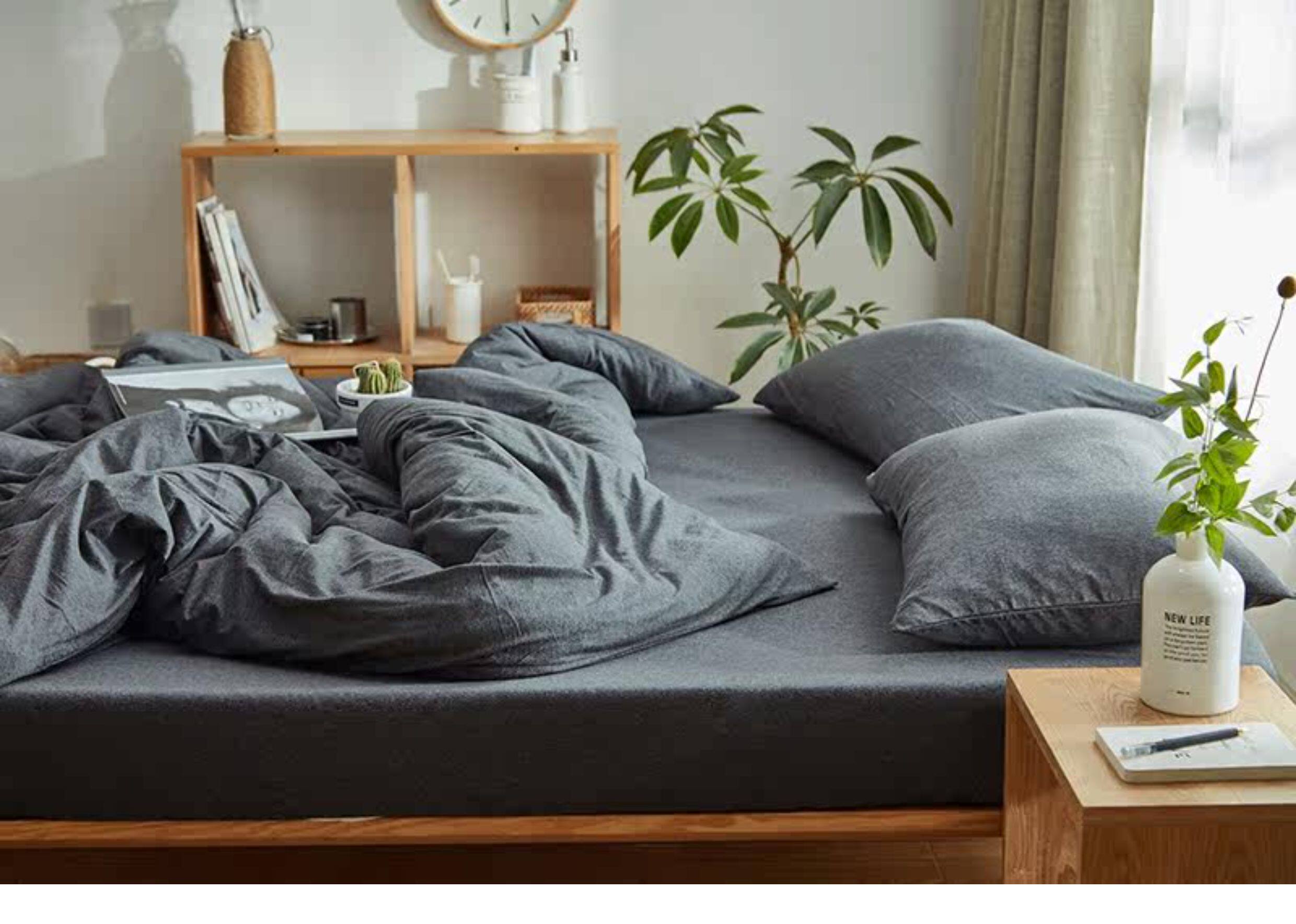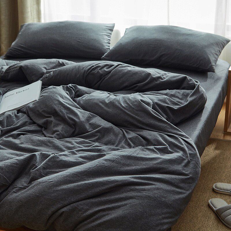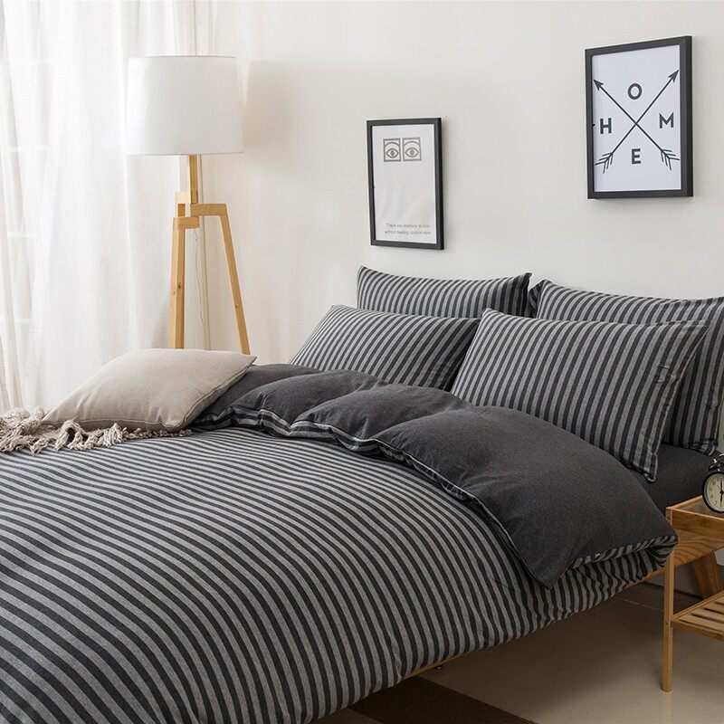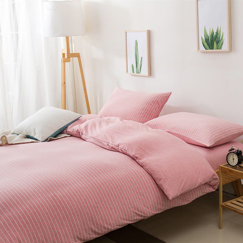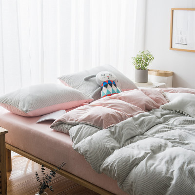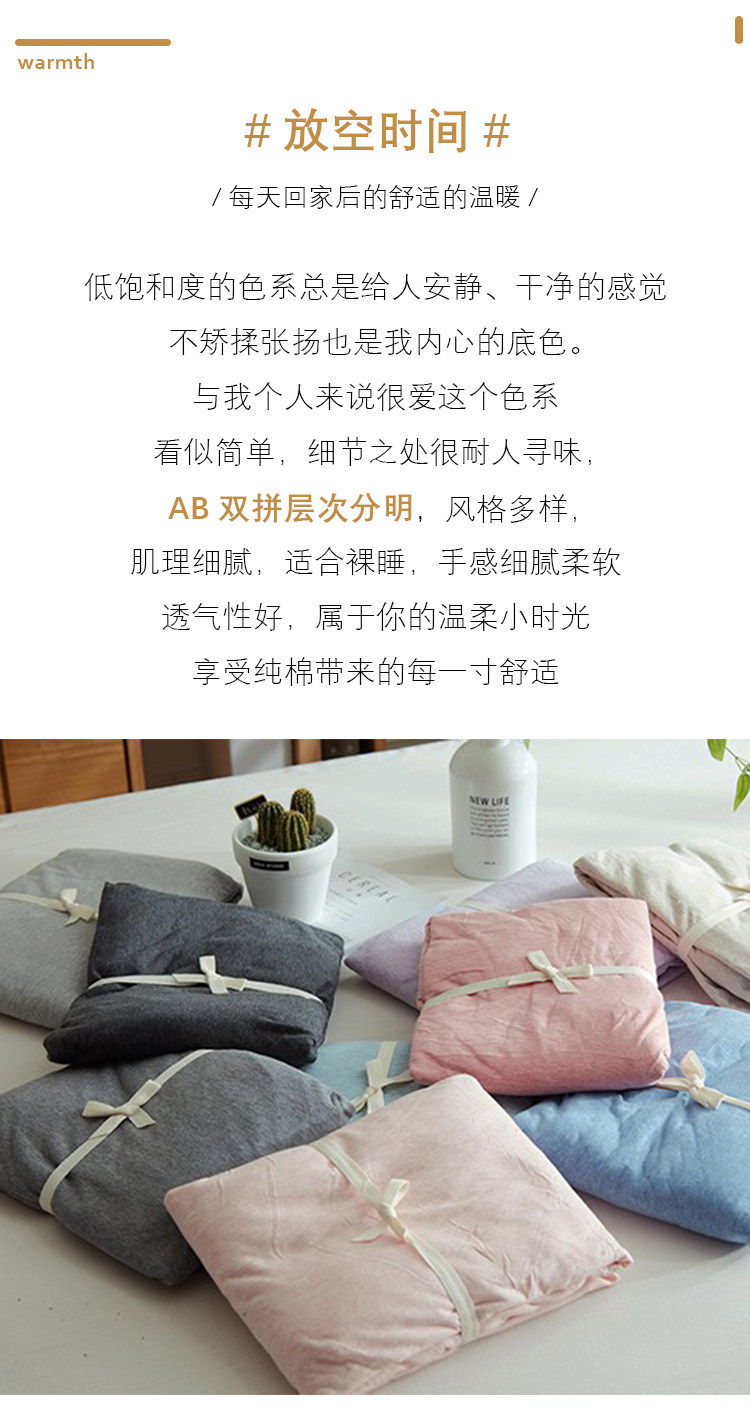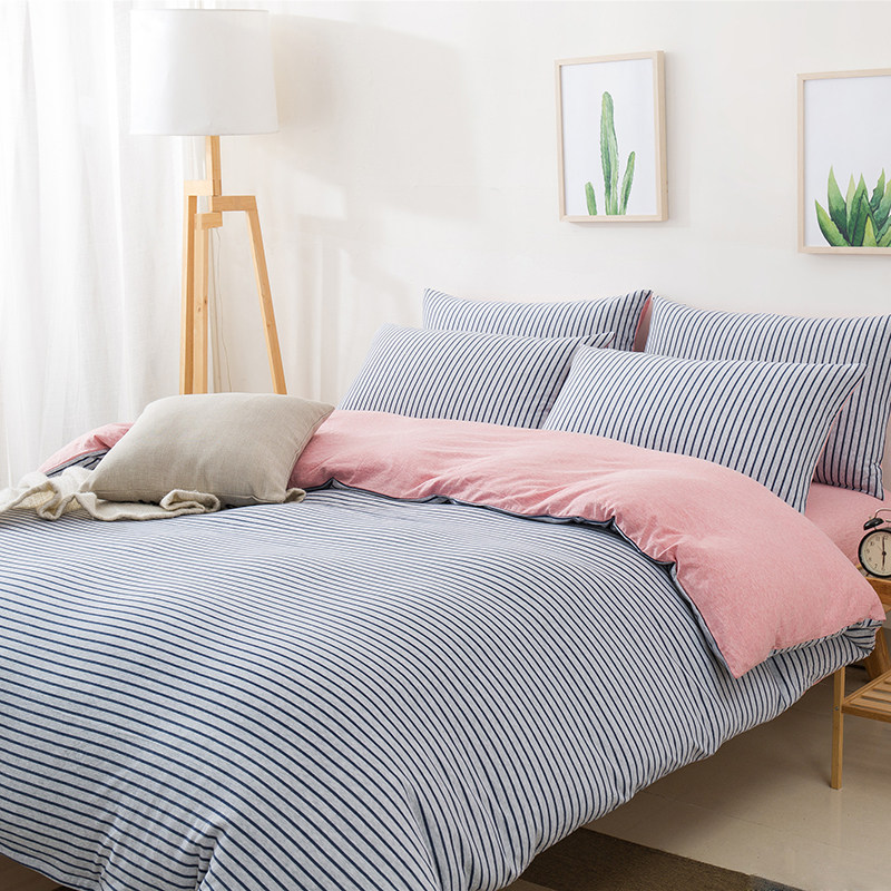 裸睡神器 色織全棉天竺棉四件套 A類純棉針織棉北歐日系床上用品