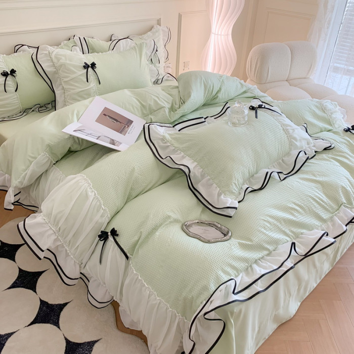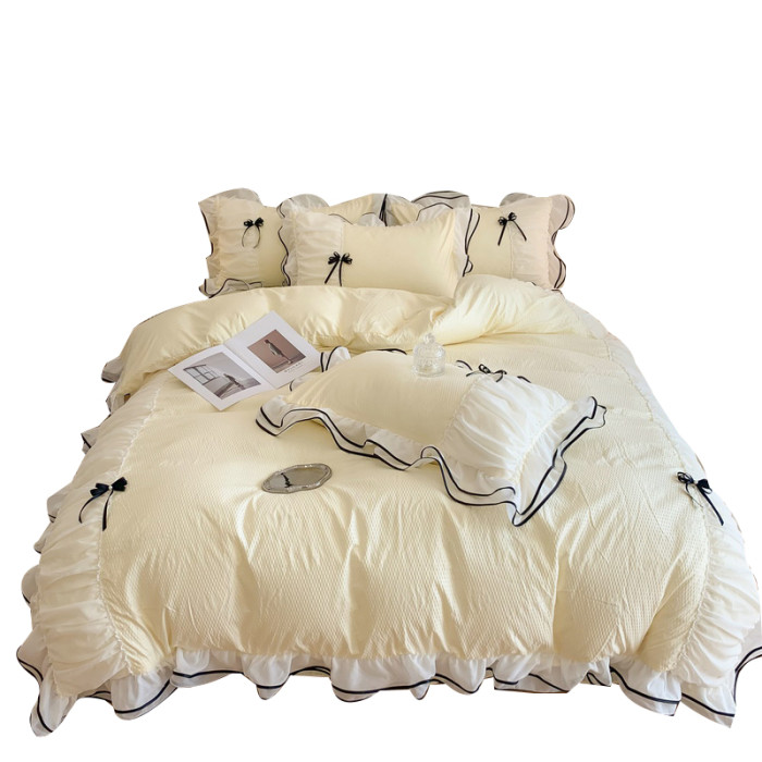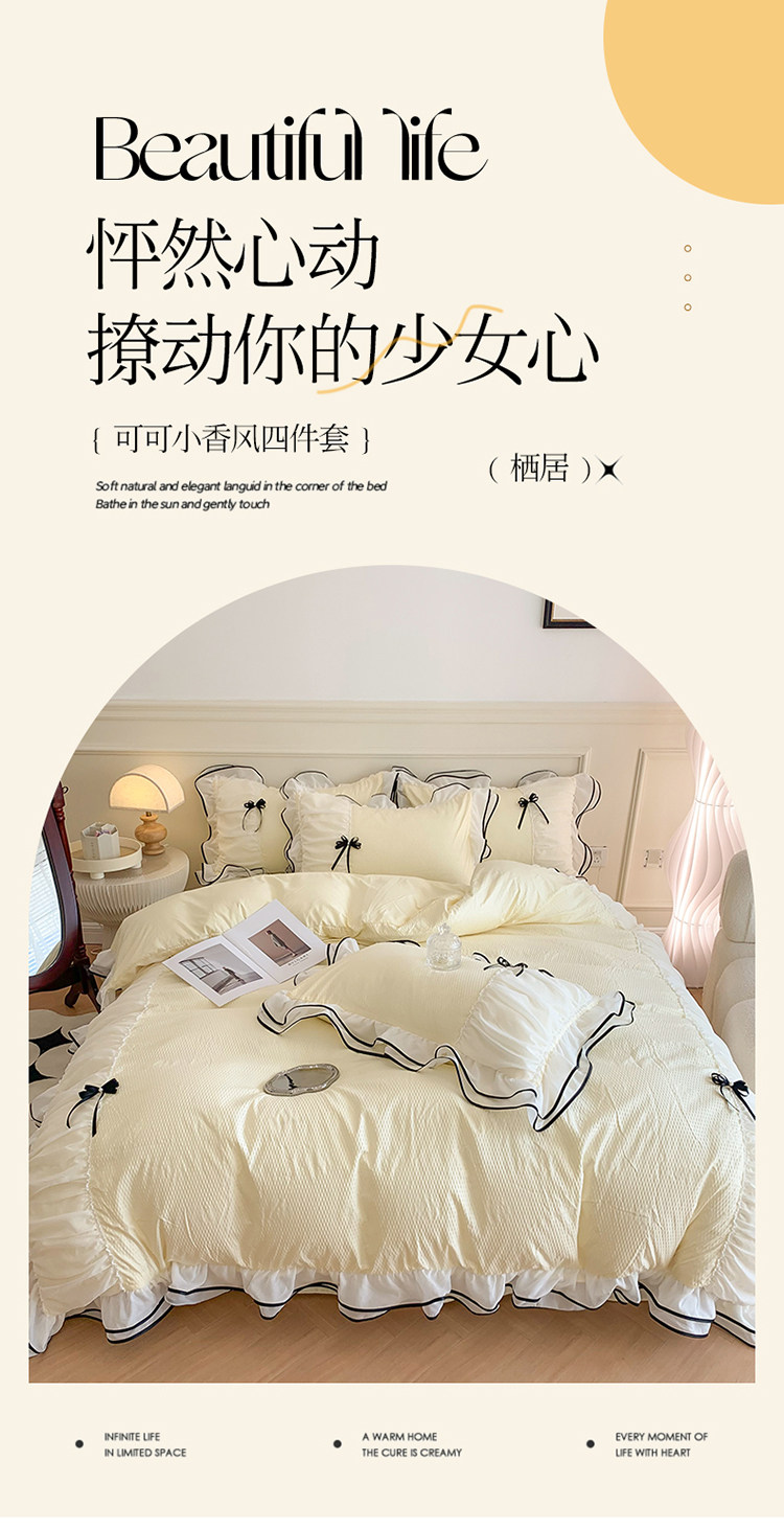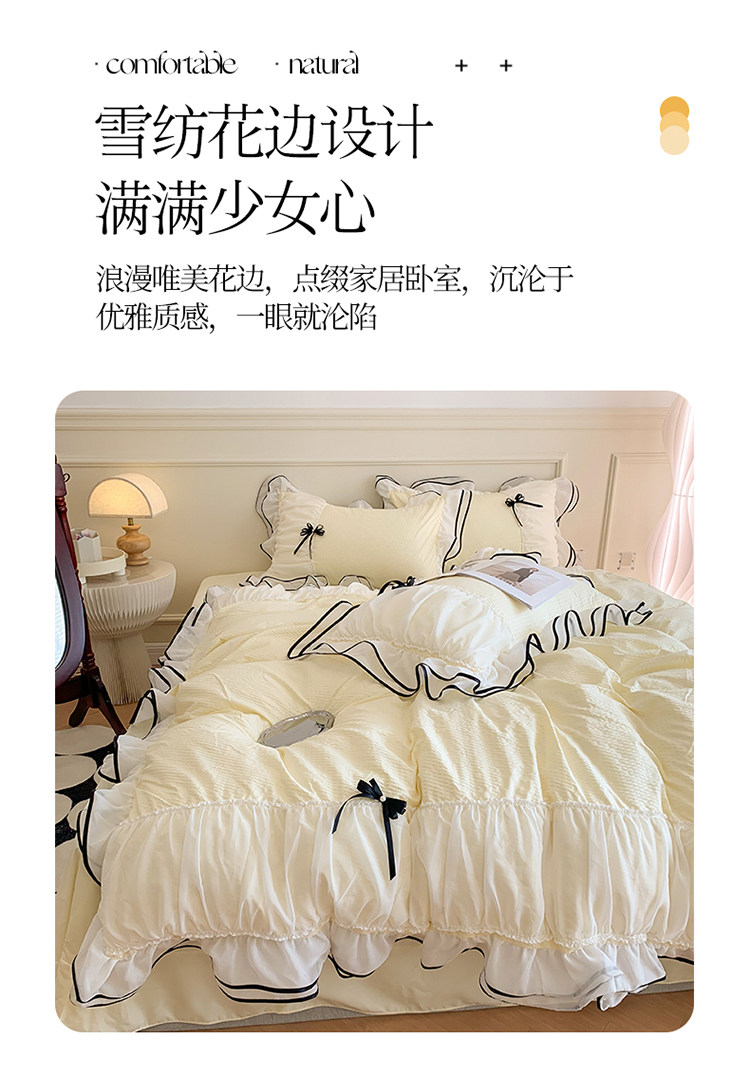 小紅書推薦裸睡公主風花邊純棉床上四件套全棉床單被套被罩少女心
