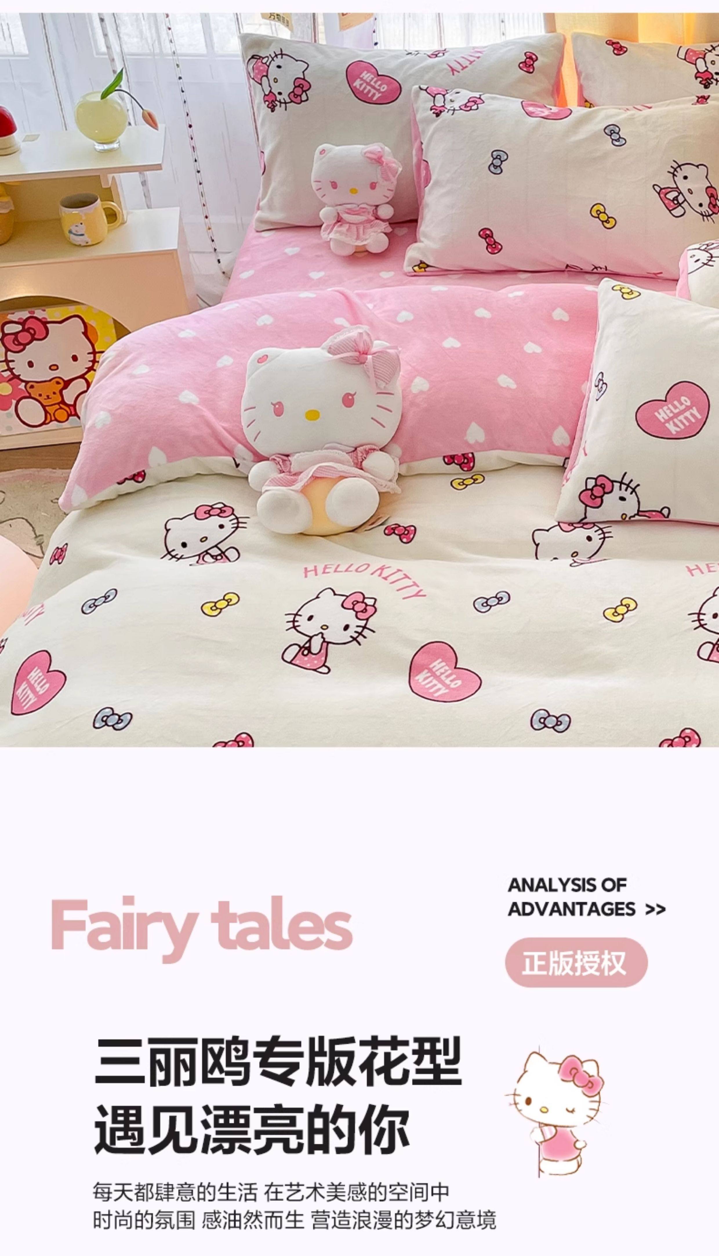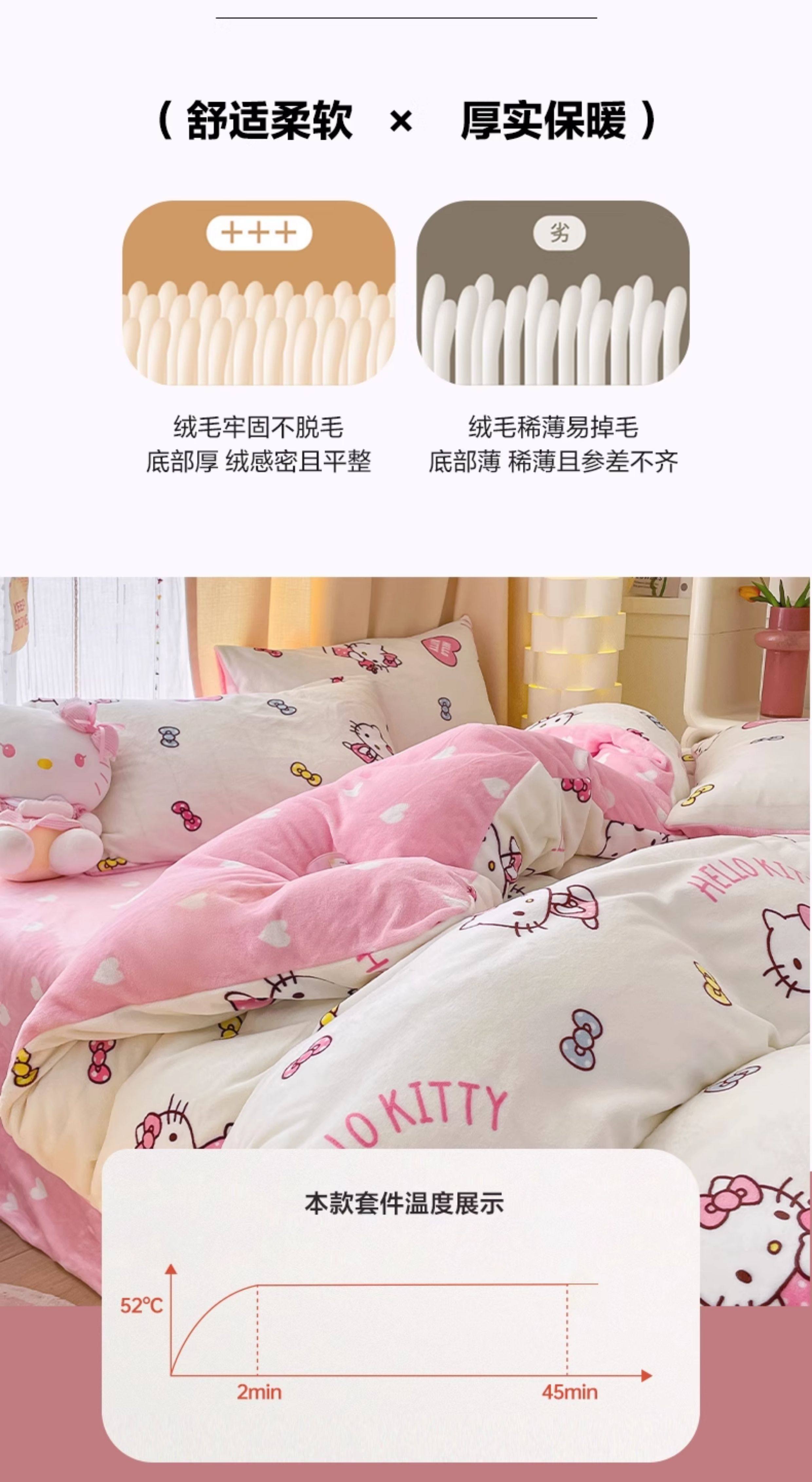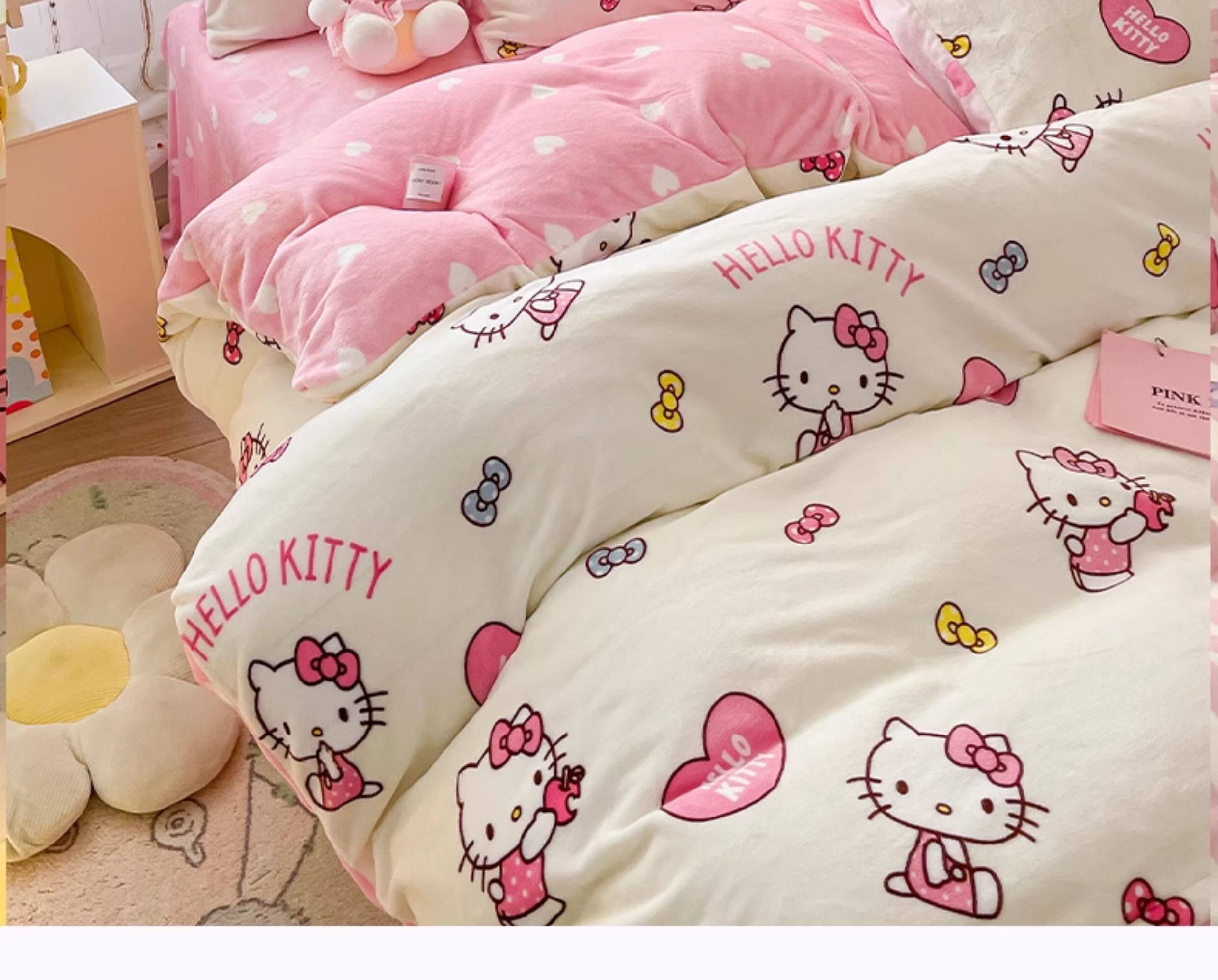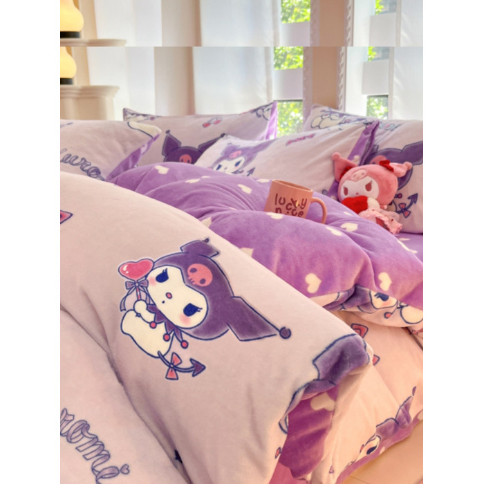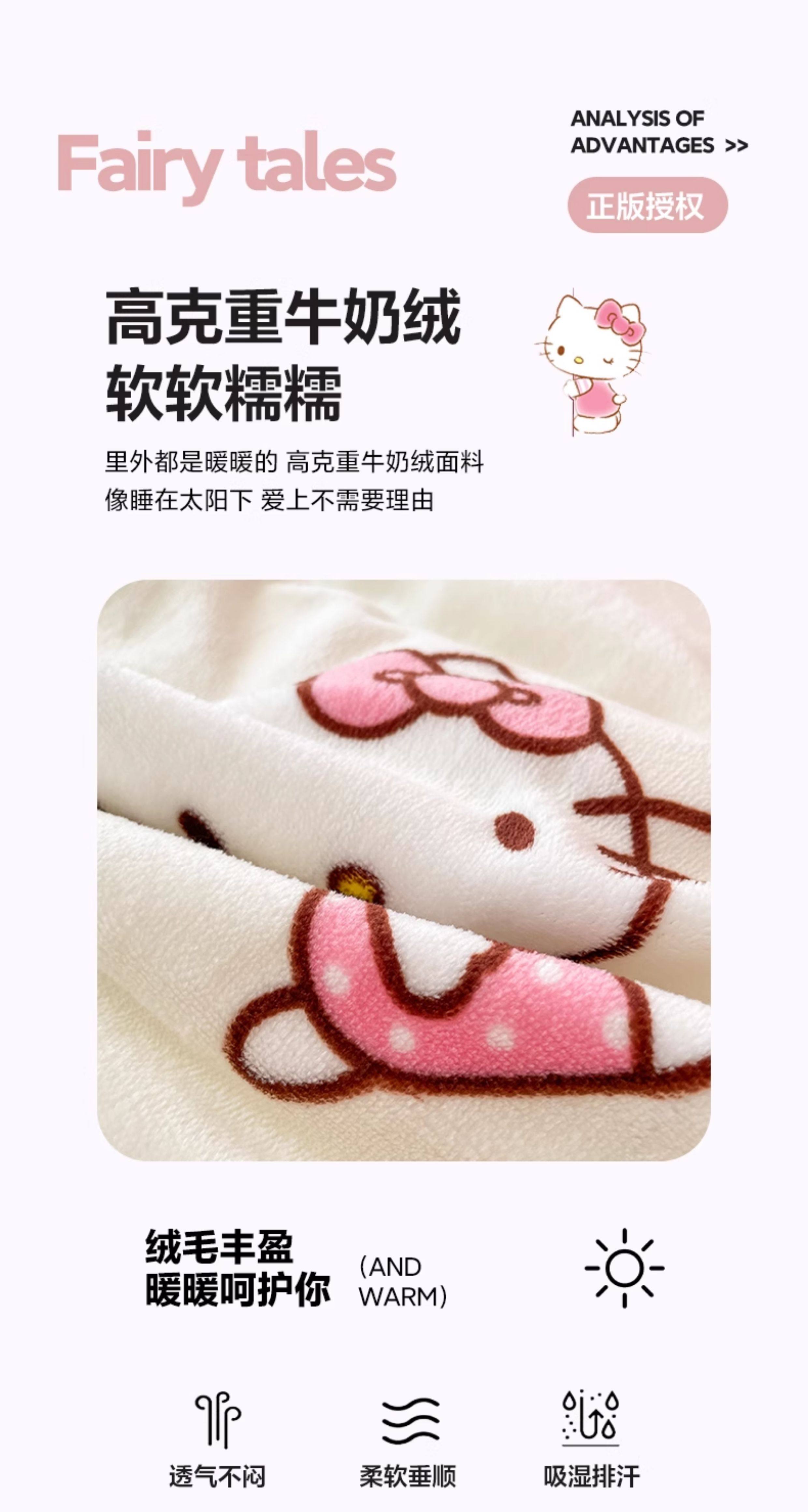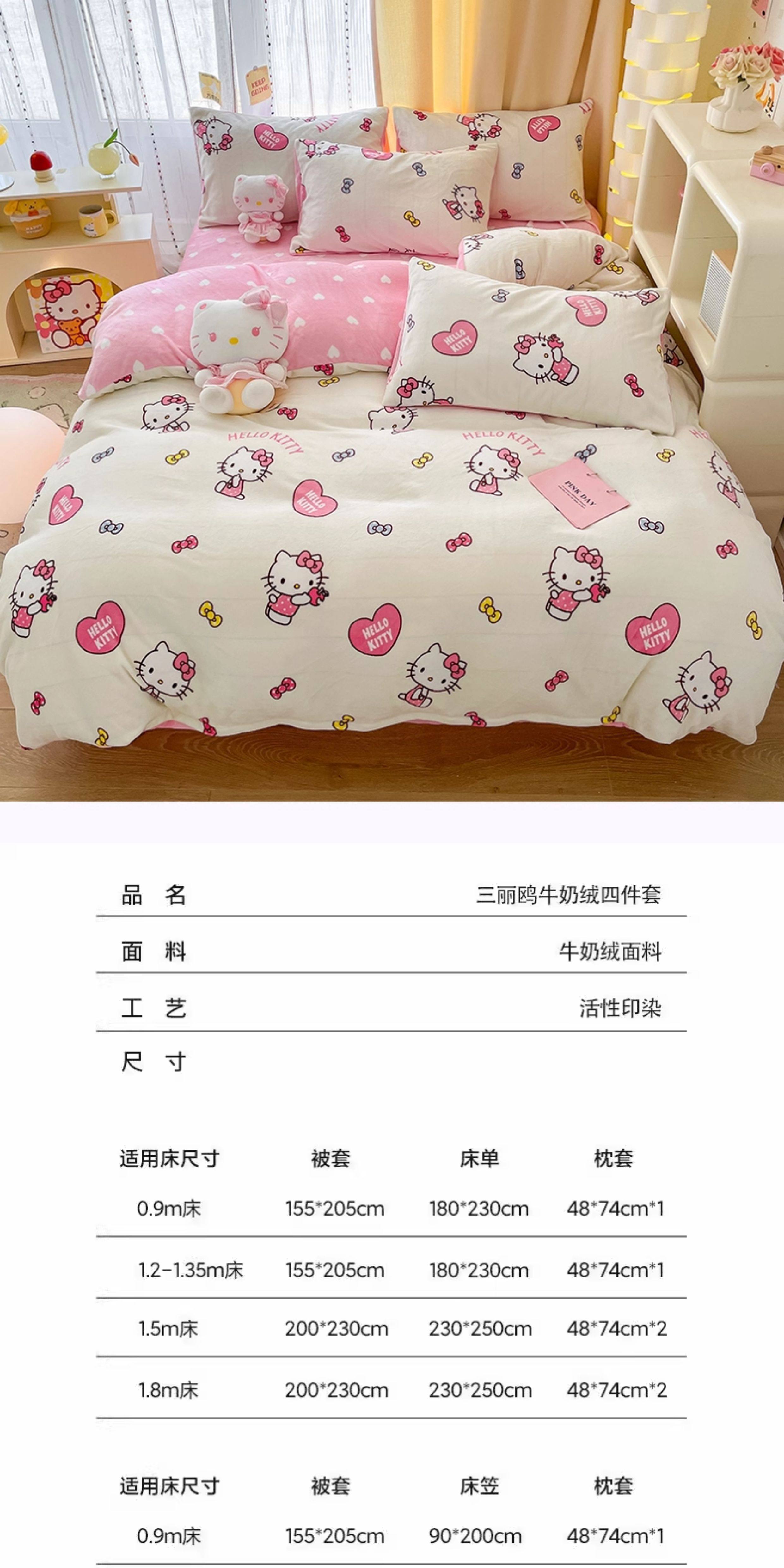 HelloKitty牛奶絨被套單件凱蒂貓加厚珊瑚絨被罩美樂蒂加絨四件套