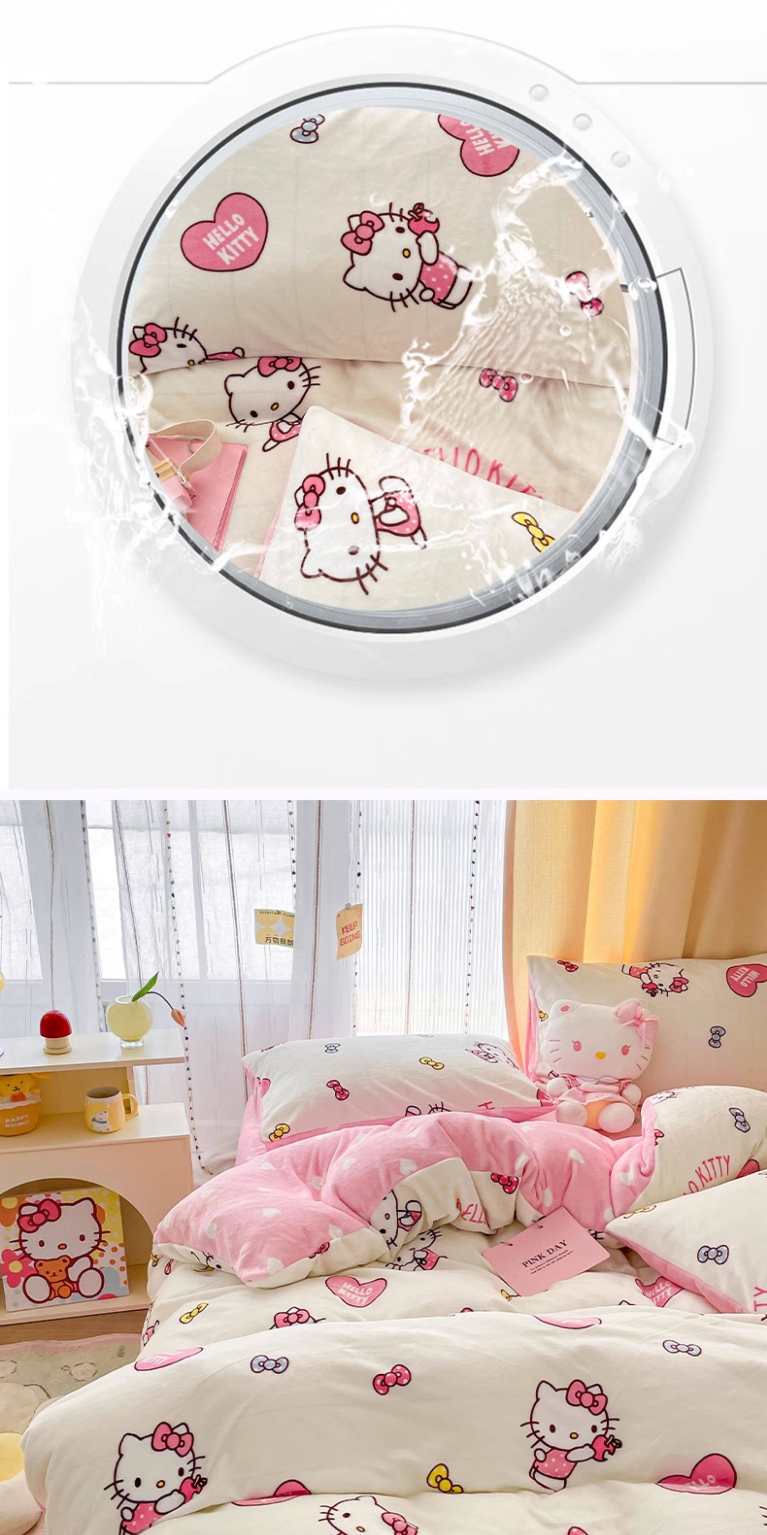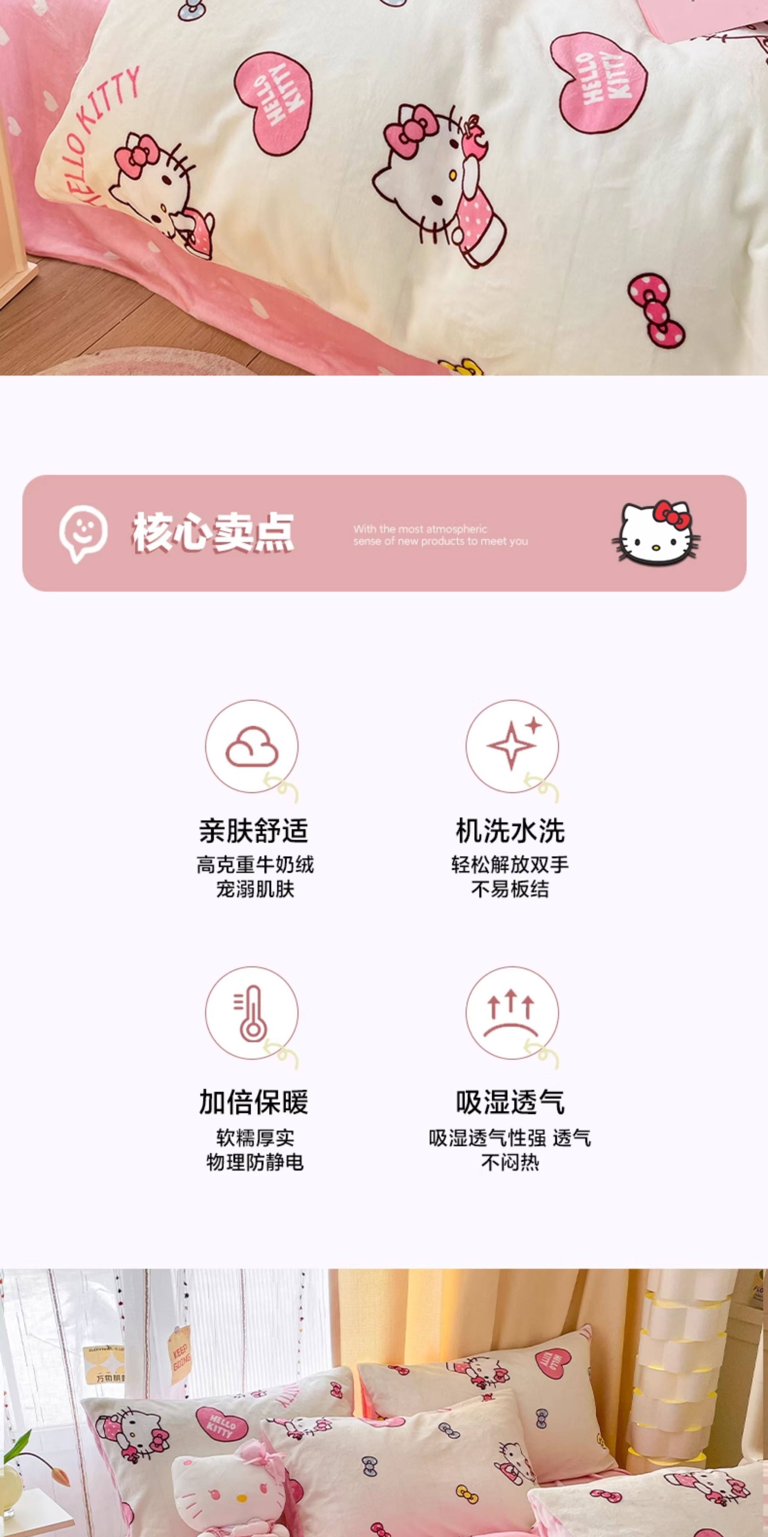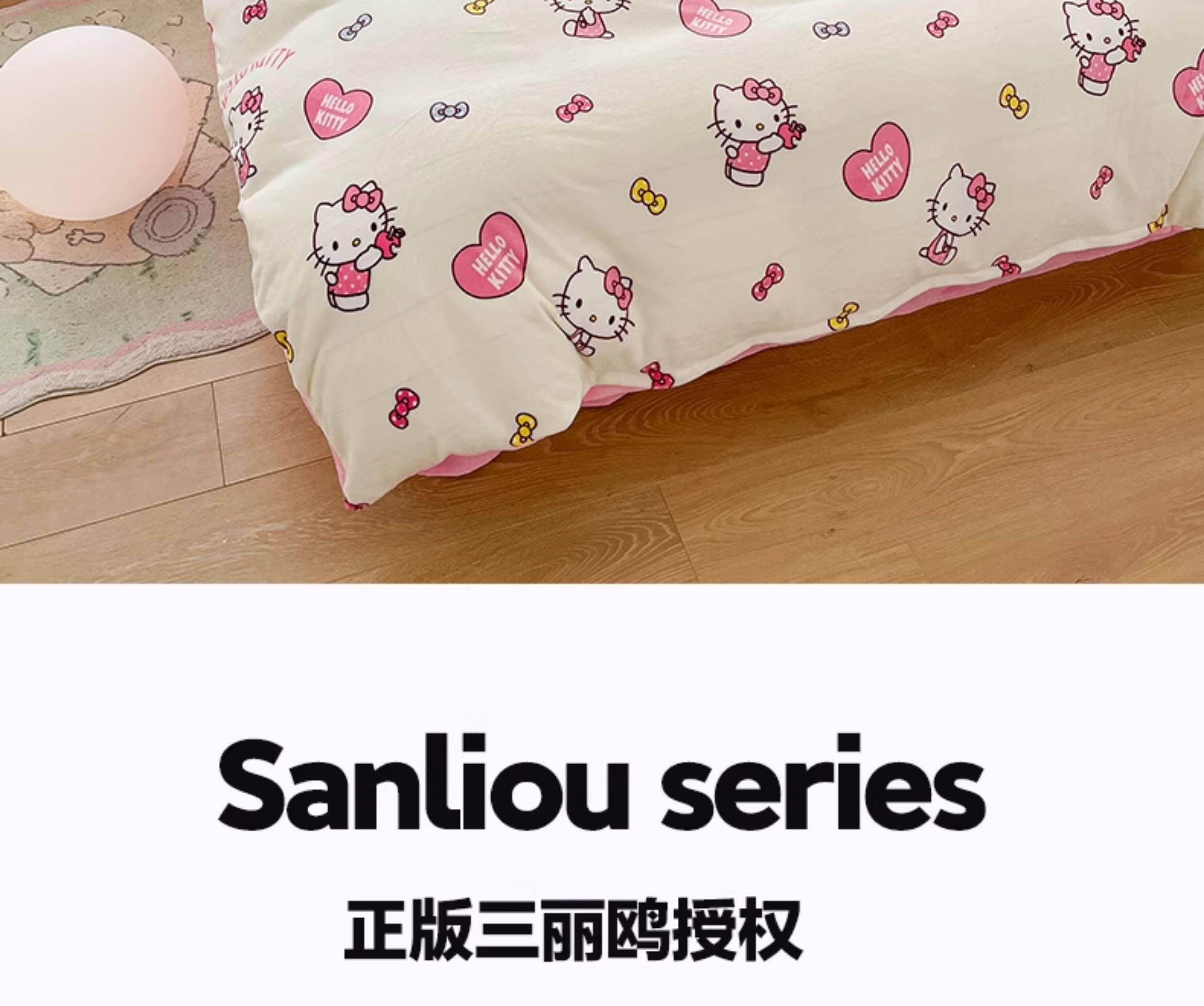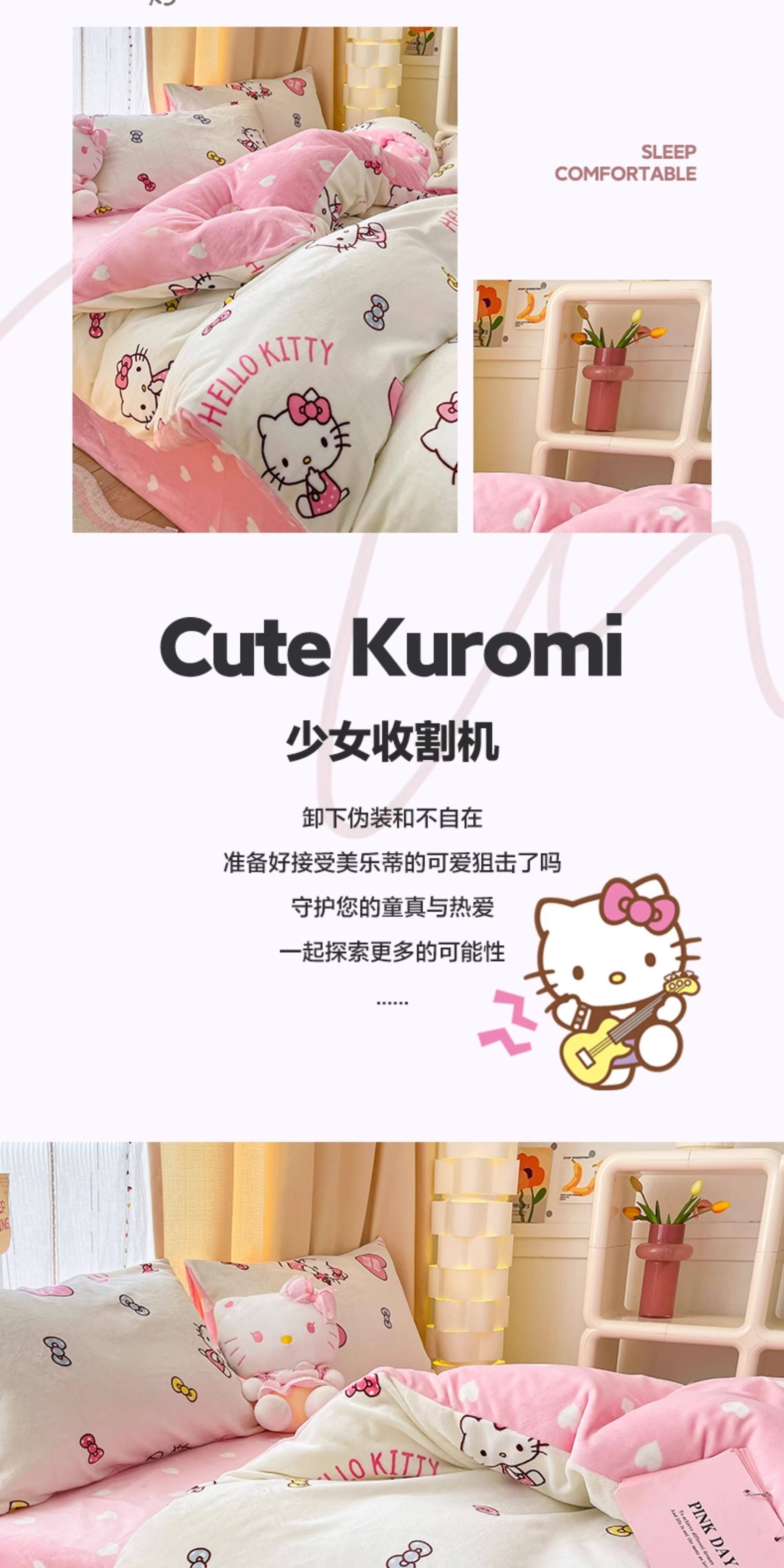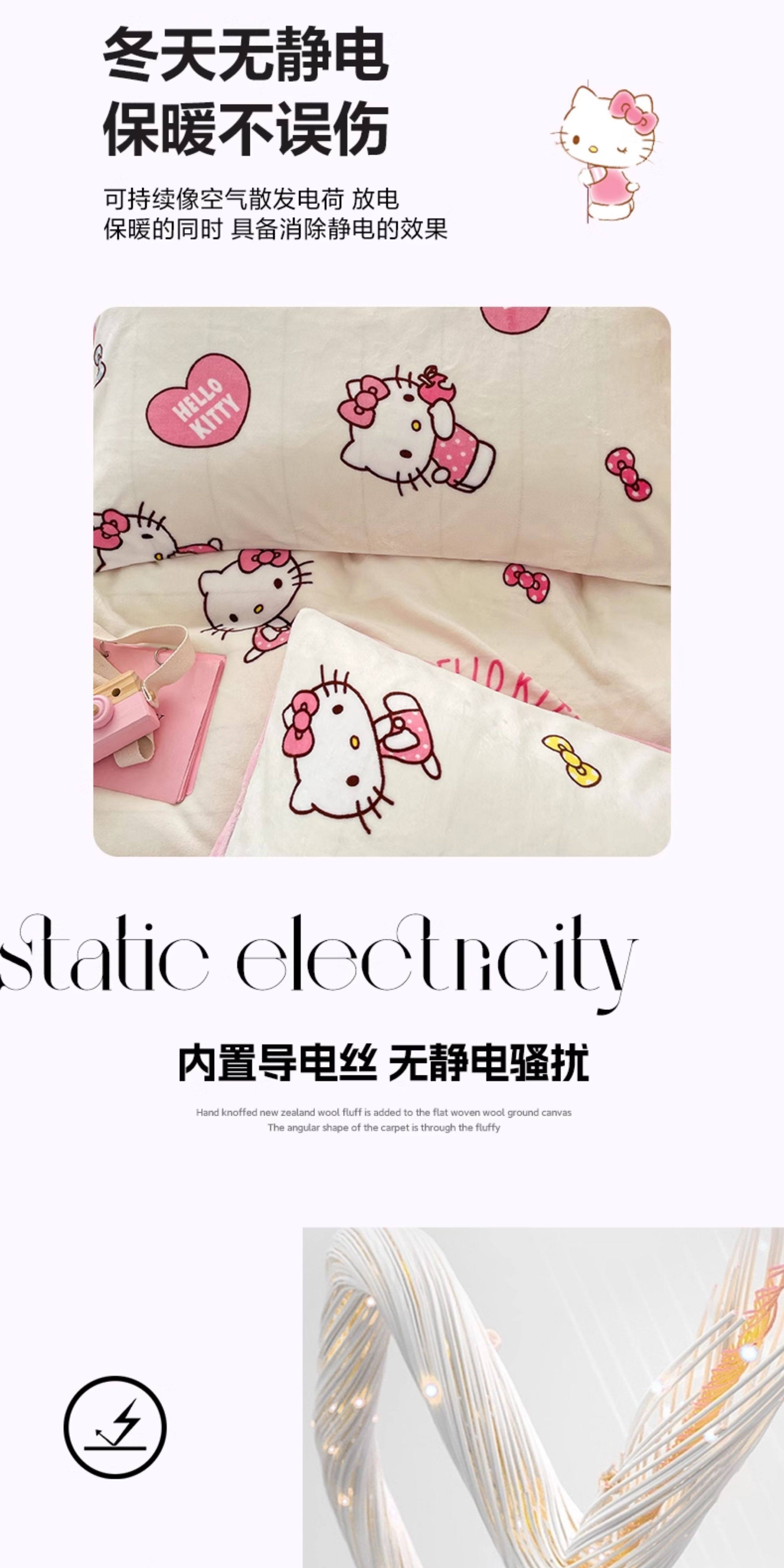 HelloKitty牛奶絨被套單件凱蒂貓加厚珊瑚絨被罩美樂蒂加絨四件套