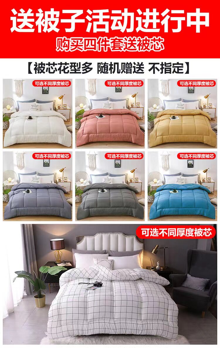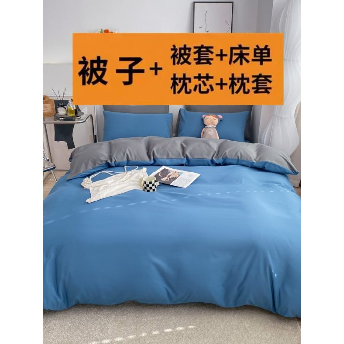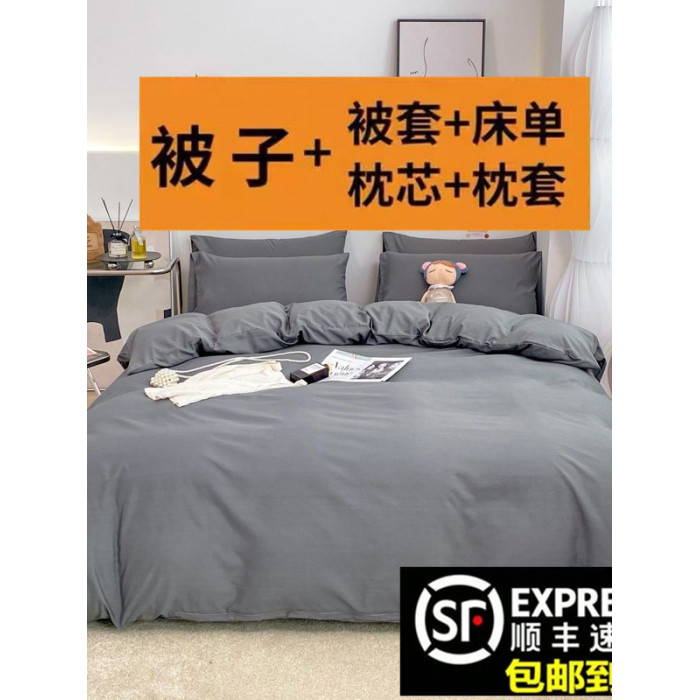 純色被子被套枕頭四件套被芯枕芯學生厚冬被春秋四季被單雙人可拆