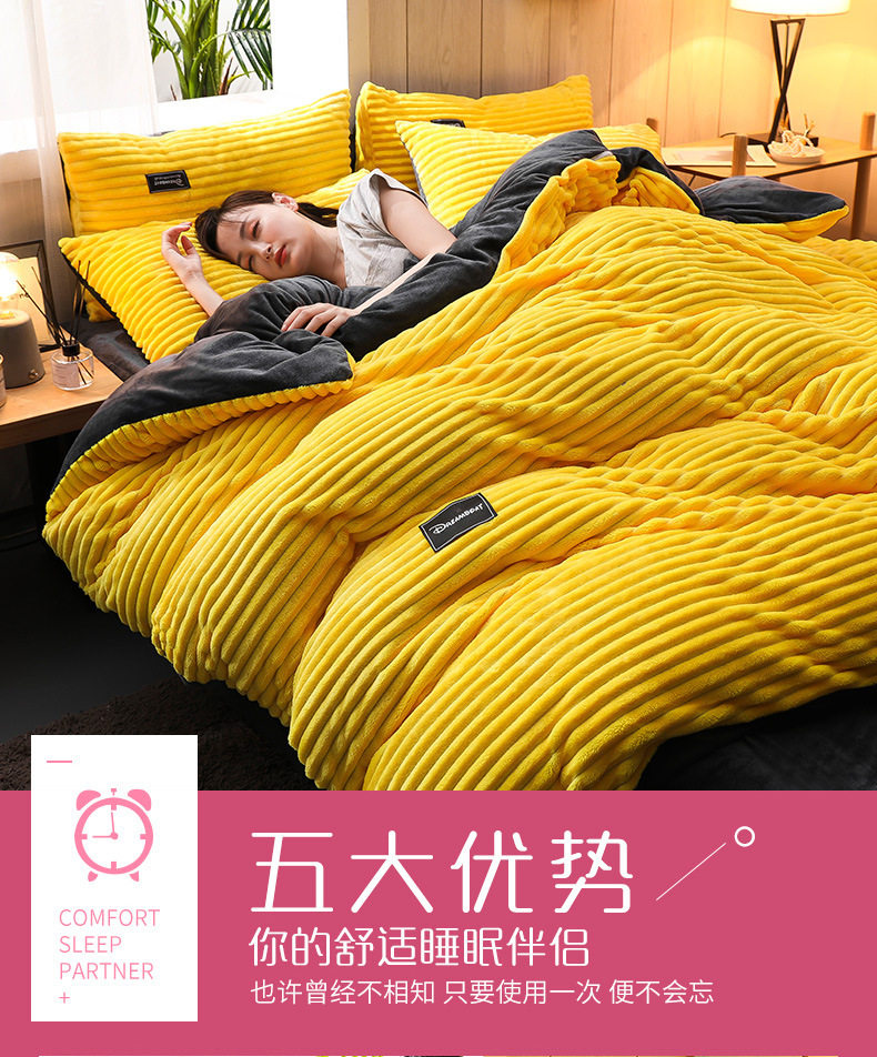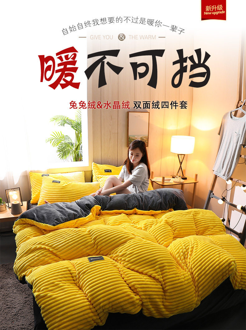 雙面魔法絨四件套珊瑚絨床上用品冬季法蘭絨被套水晶法萊短絨床單