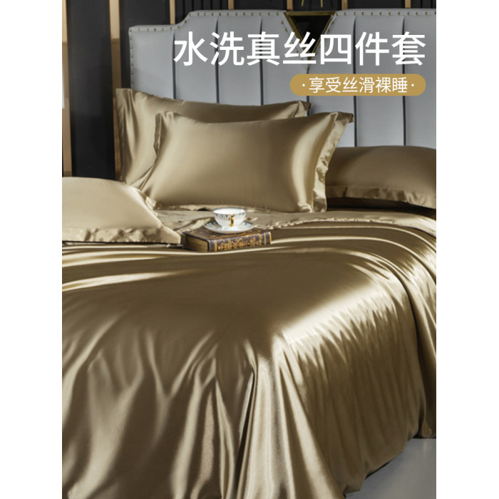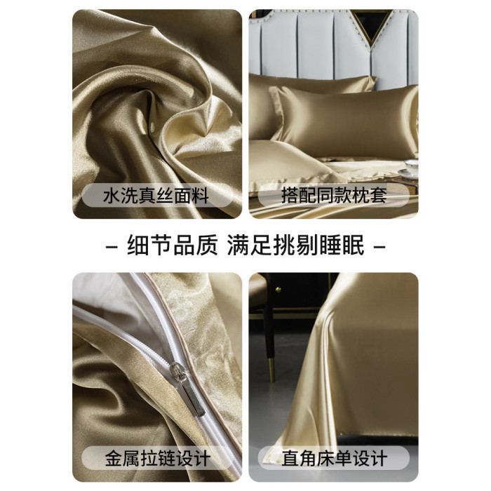冰絲四件套絲滑裸睡水洗真絲輕奢高級感涼感床品2025新款夏季純色