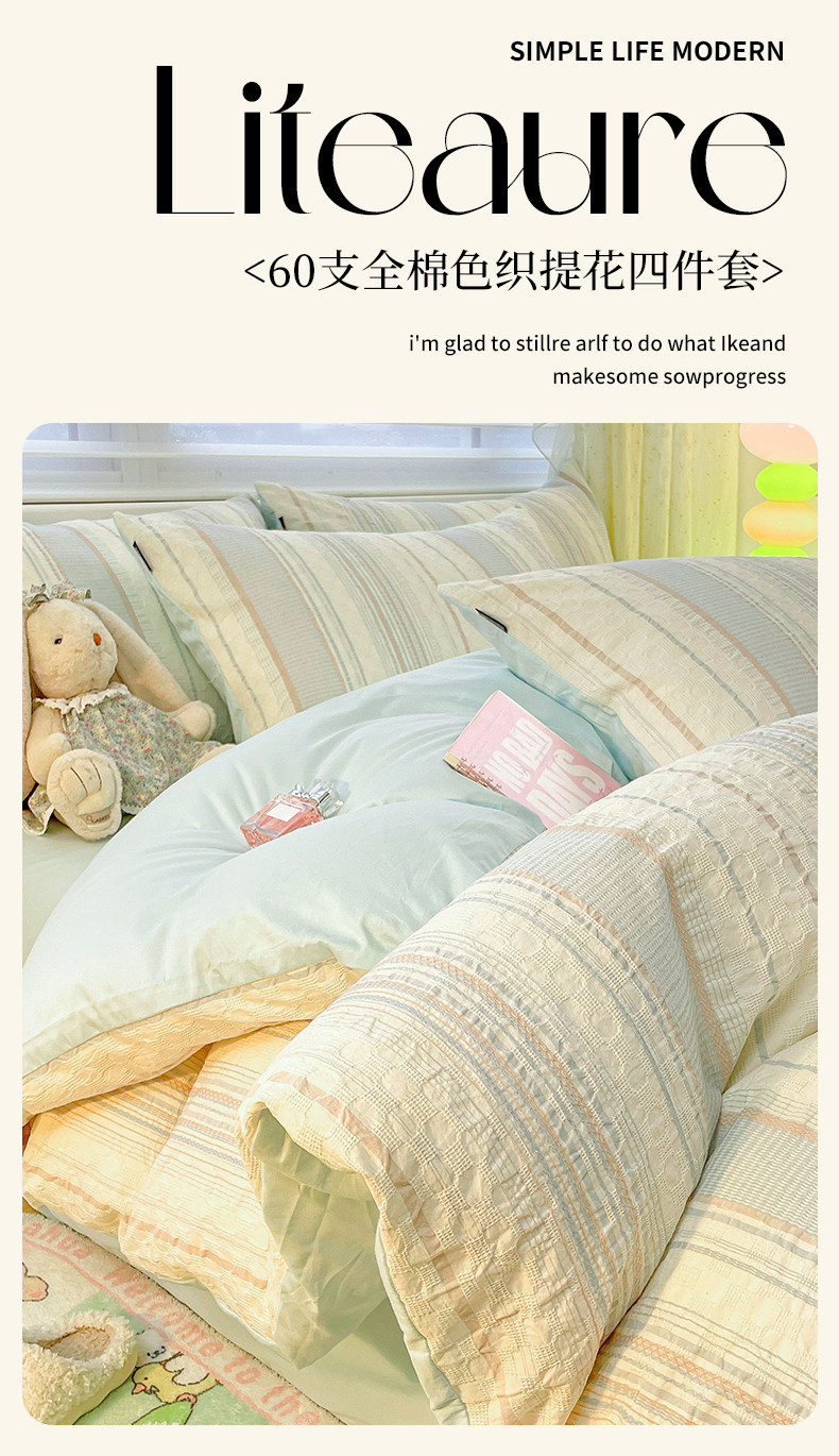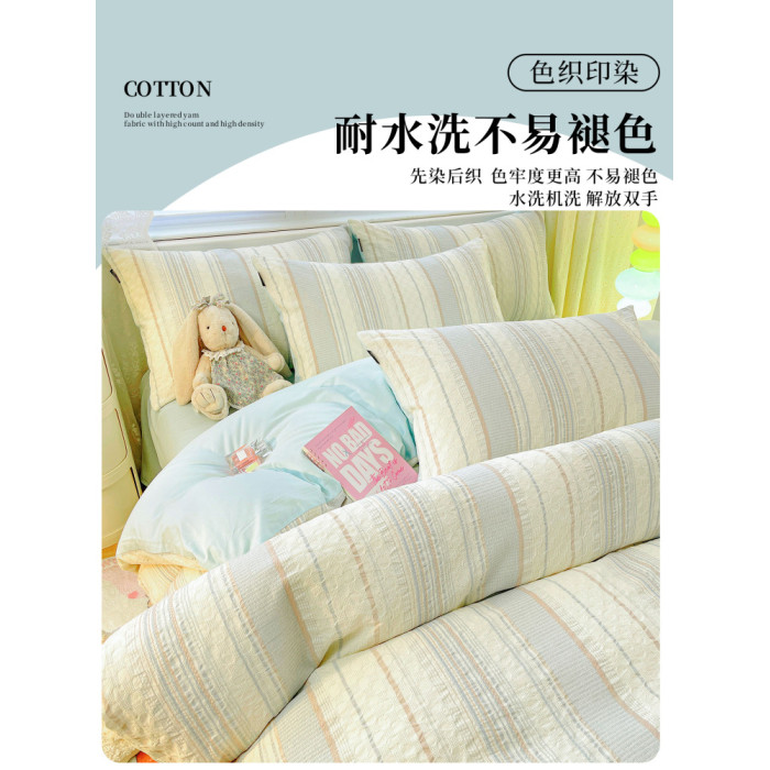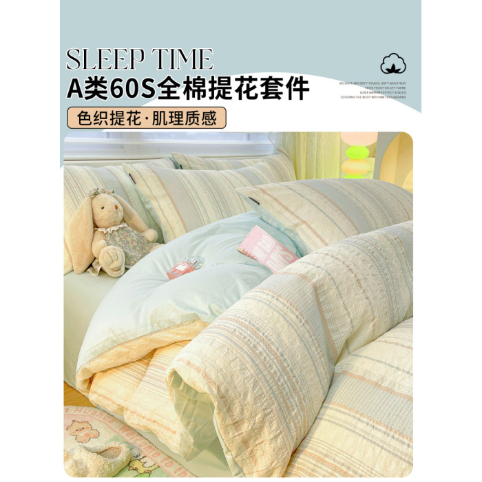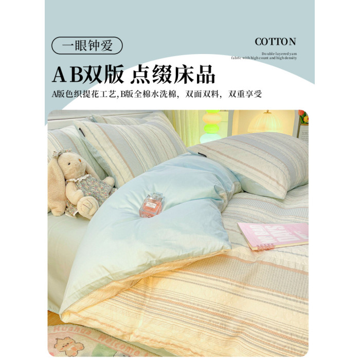 純棉水洗棉床上四件套輕奢高級感主臥室簡約全棉被套罩床單三件套