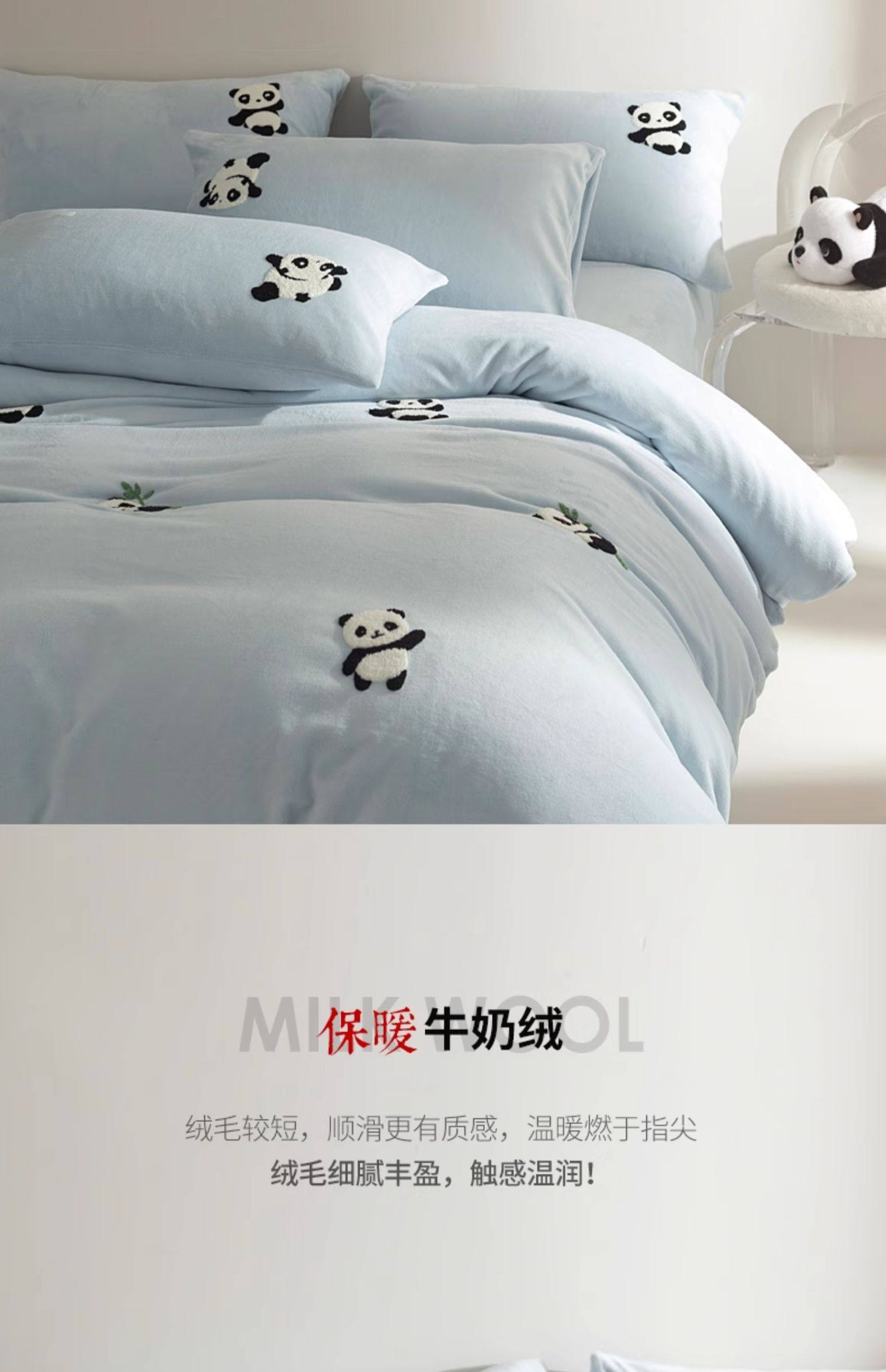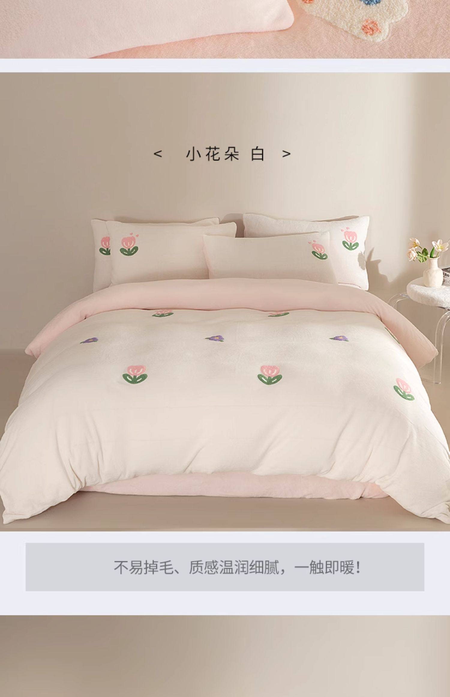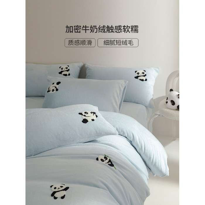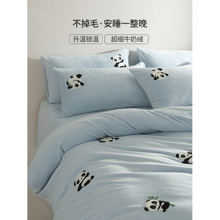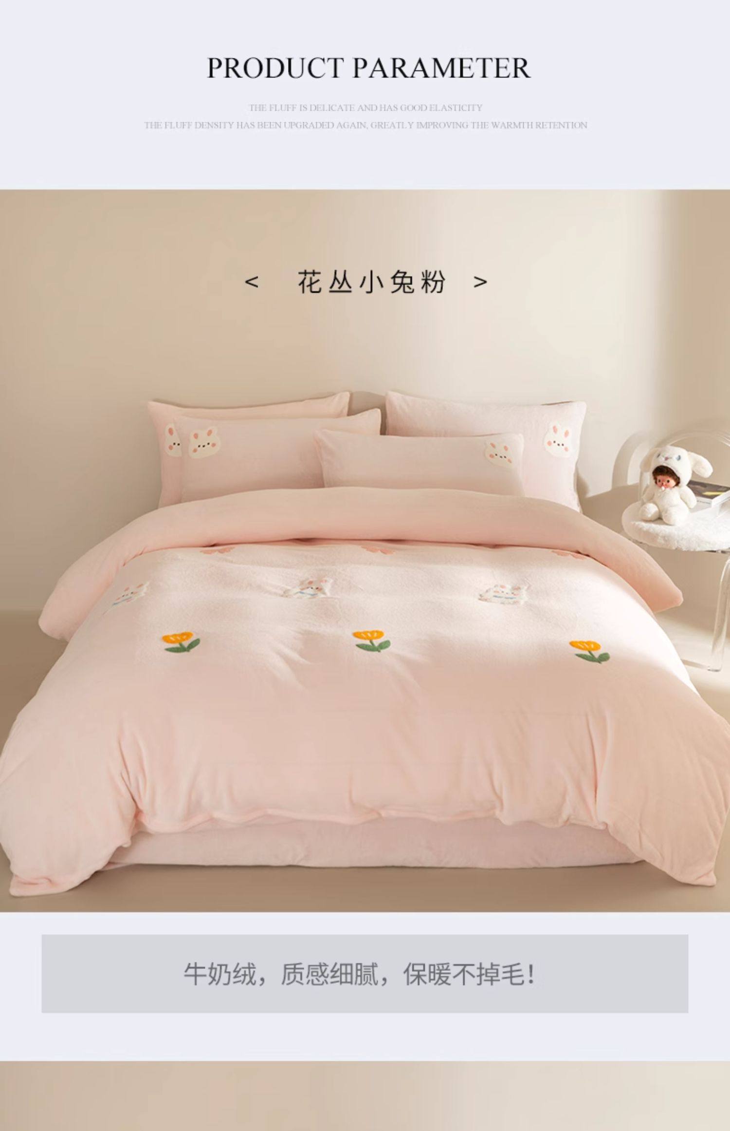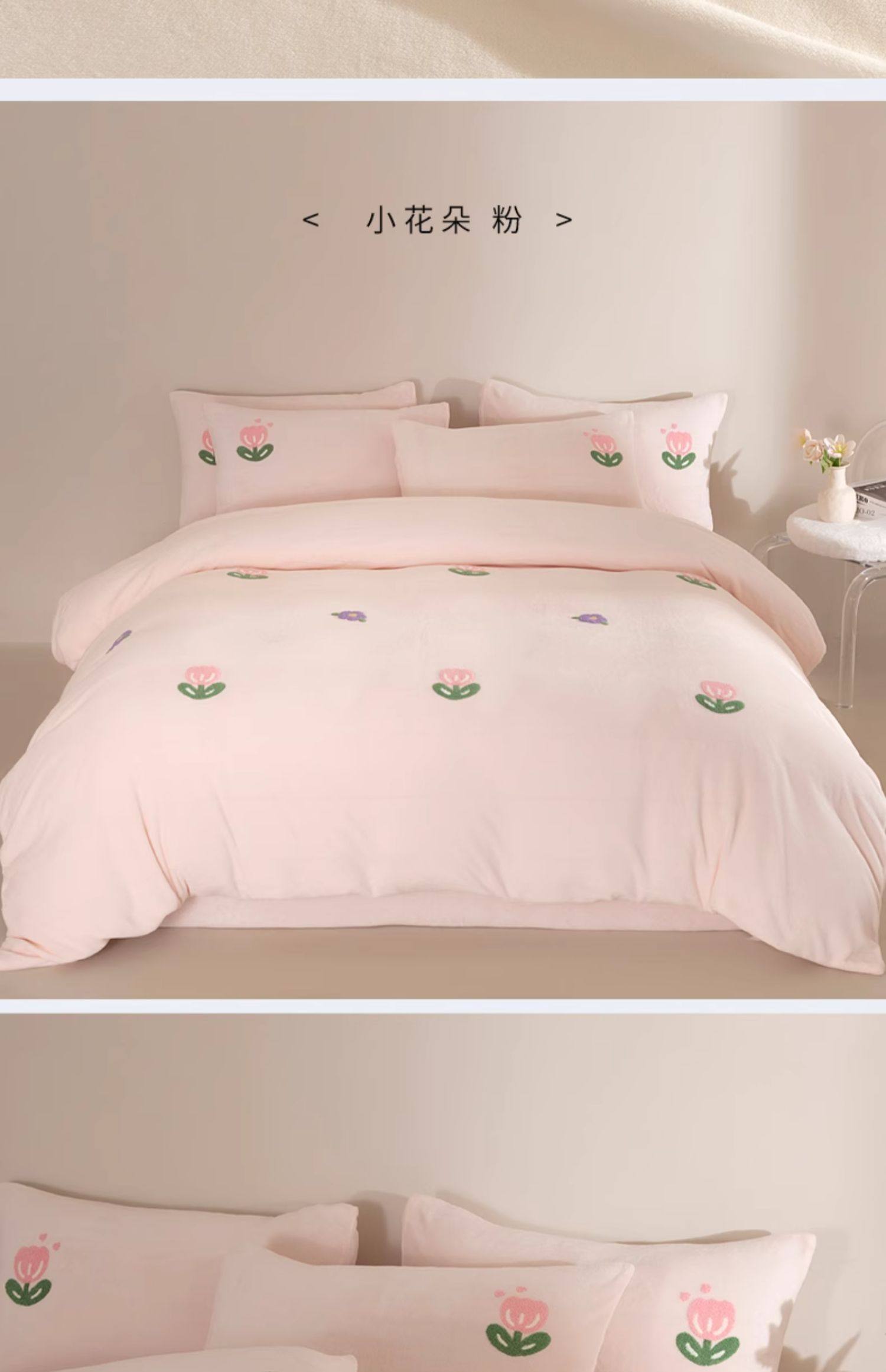 卡通刺綉牛奶絨四件套加厚保暖法蘭絨被套珊瑚絨床單秋冬床上用品