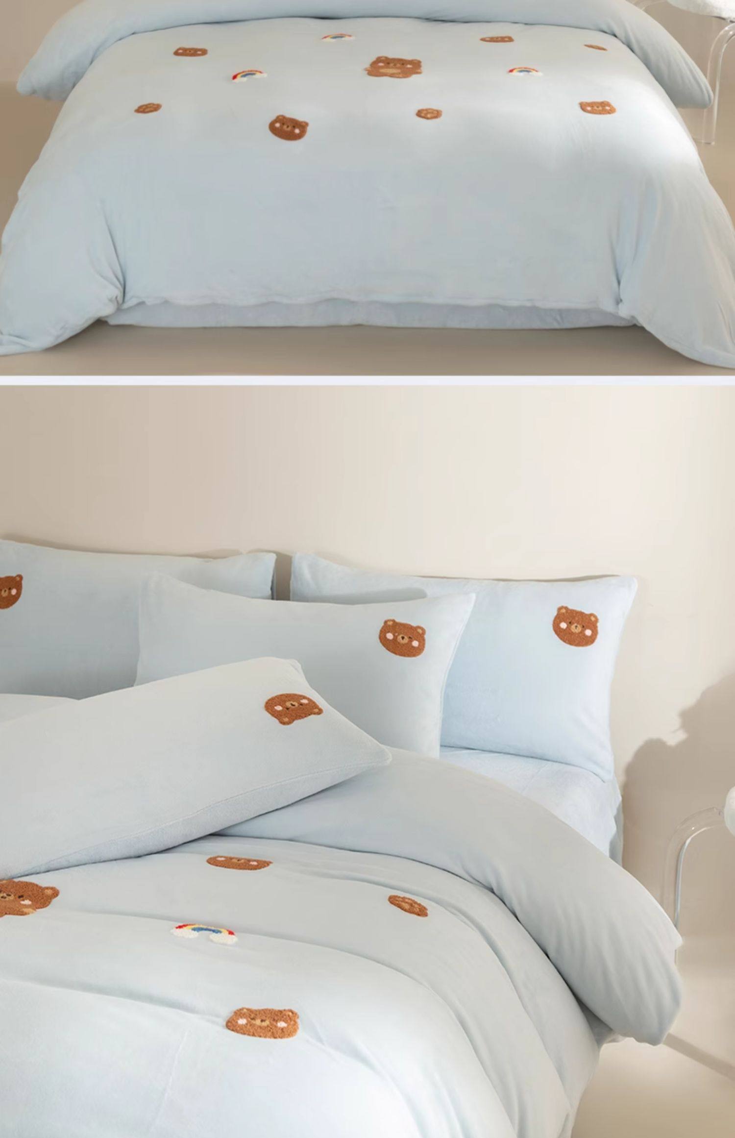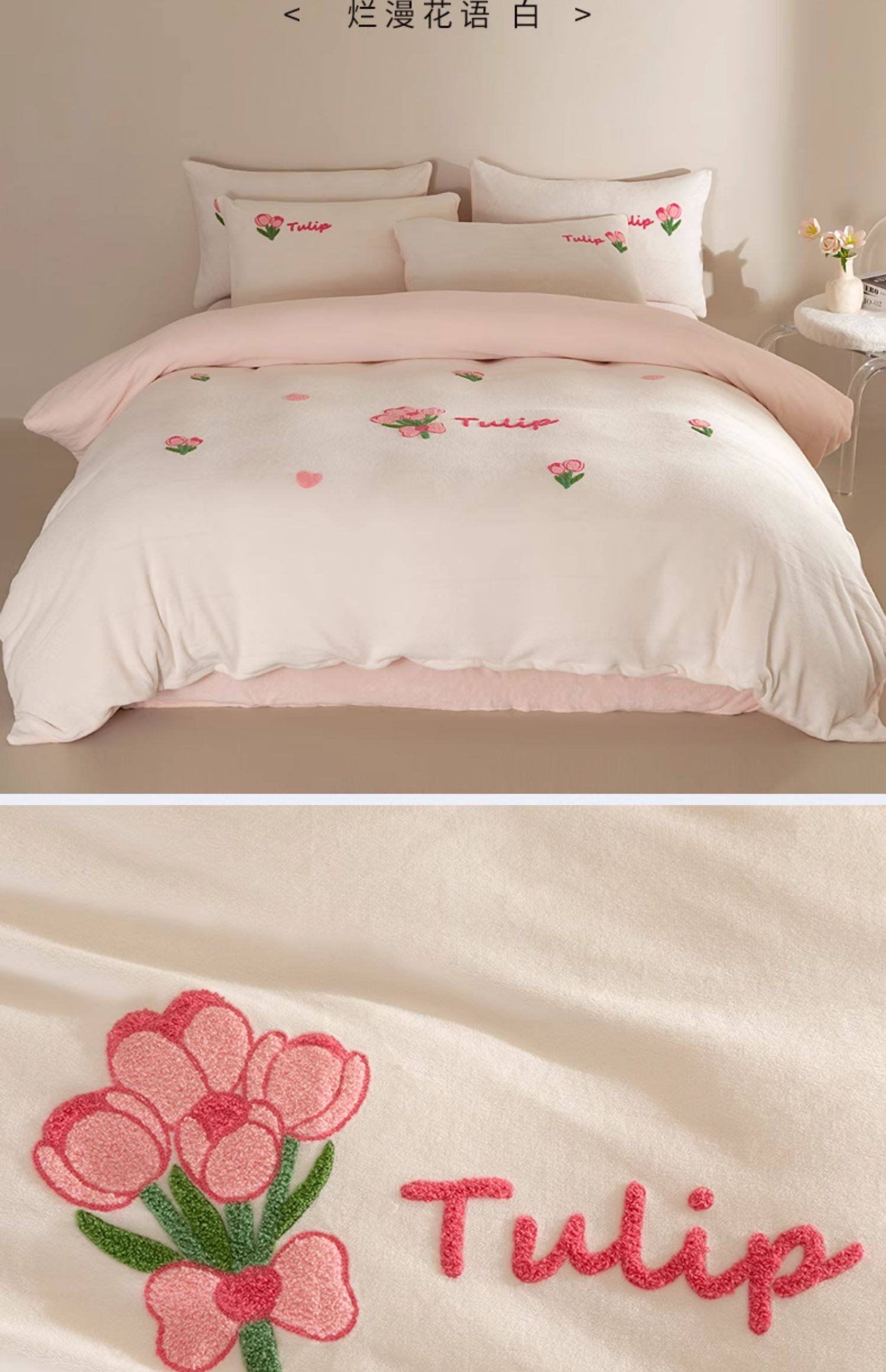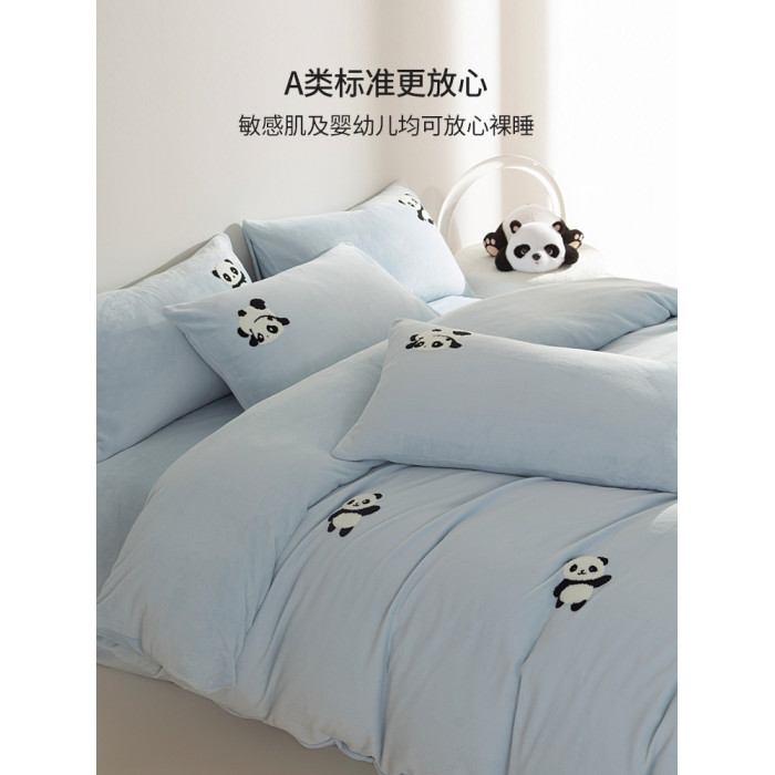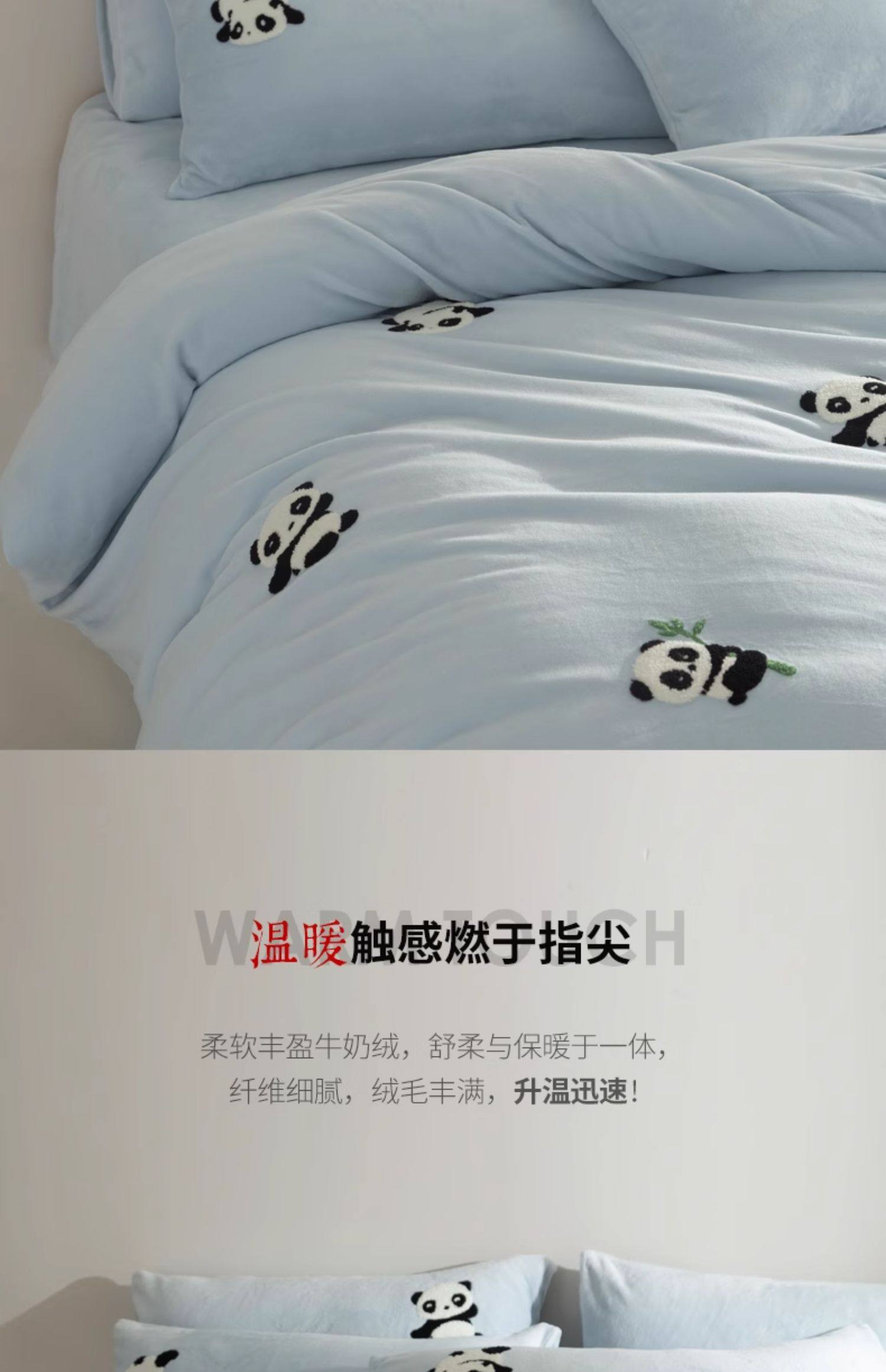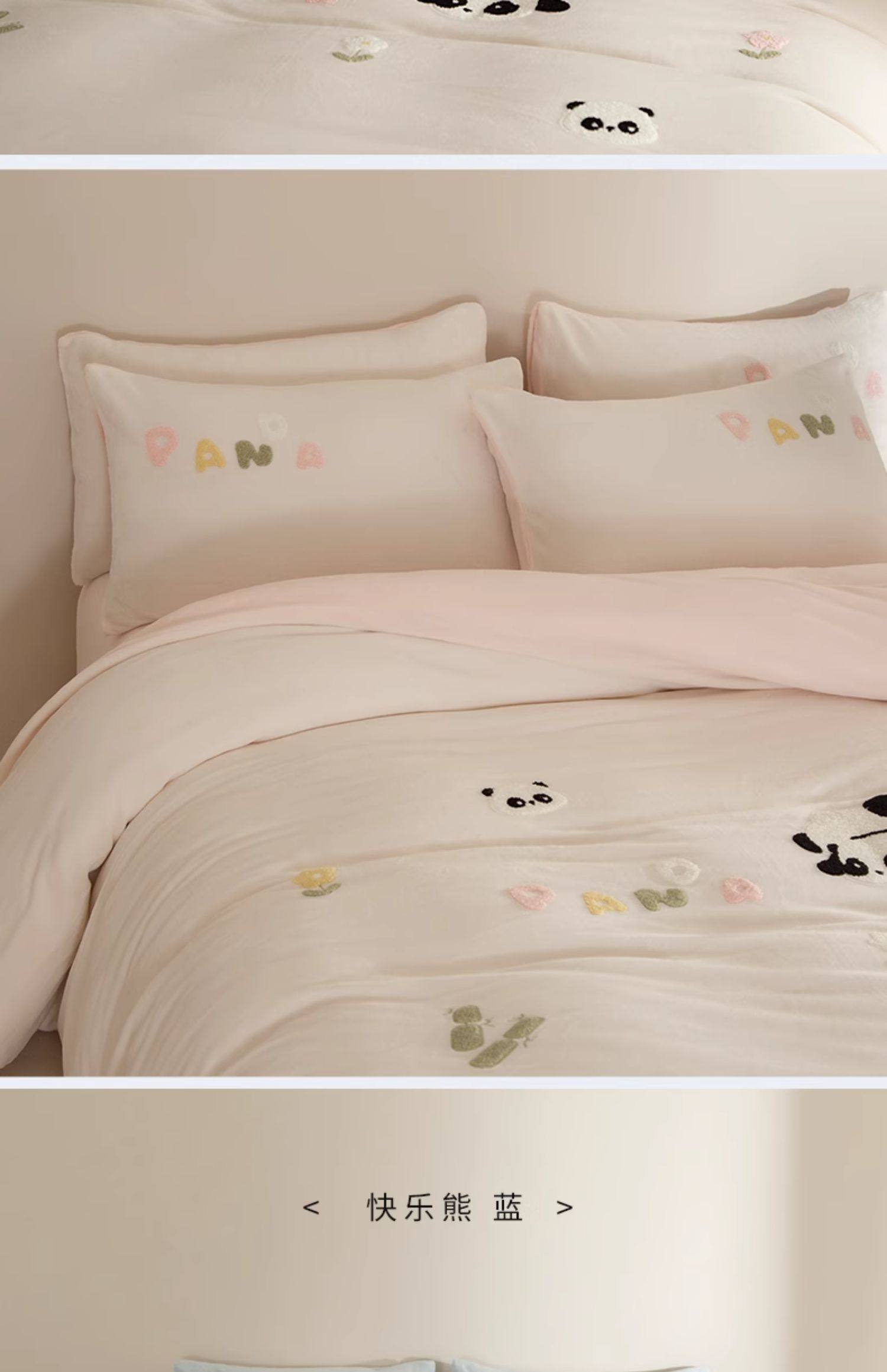 卡通刺綉牛奶絨四件套加厚保暖法蘭絨被套珊瑚絨床單秋冬床上用品