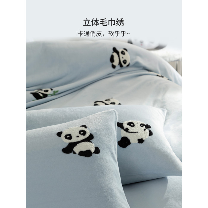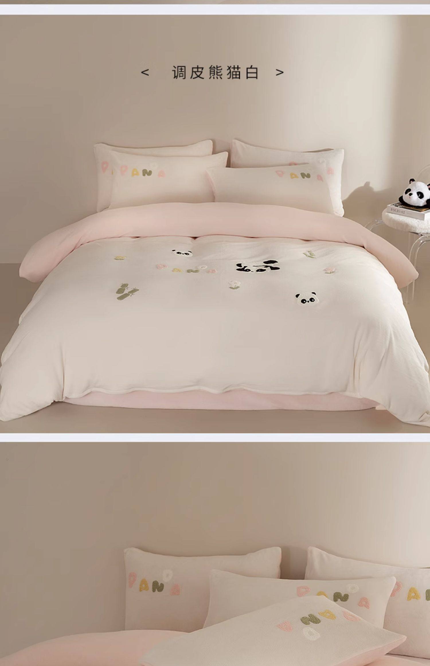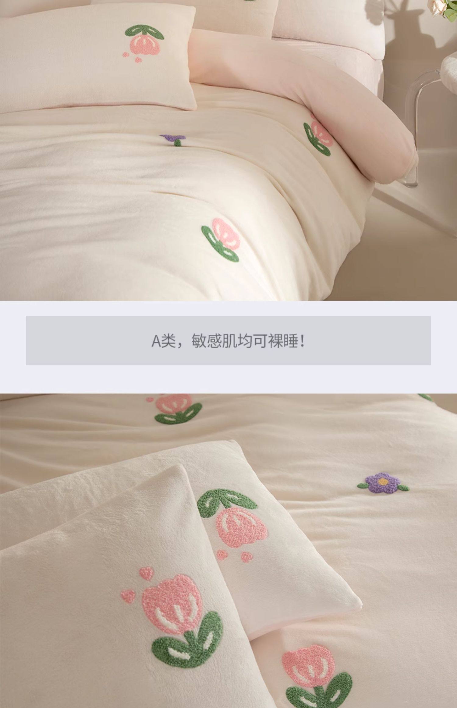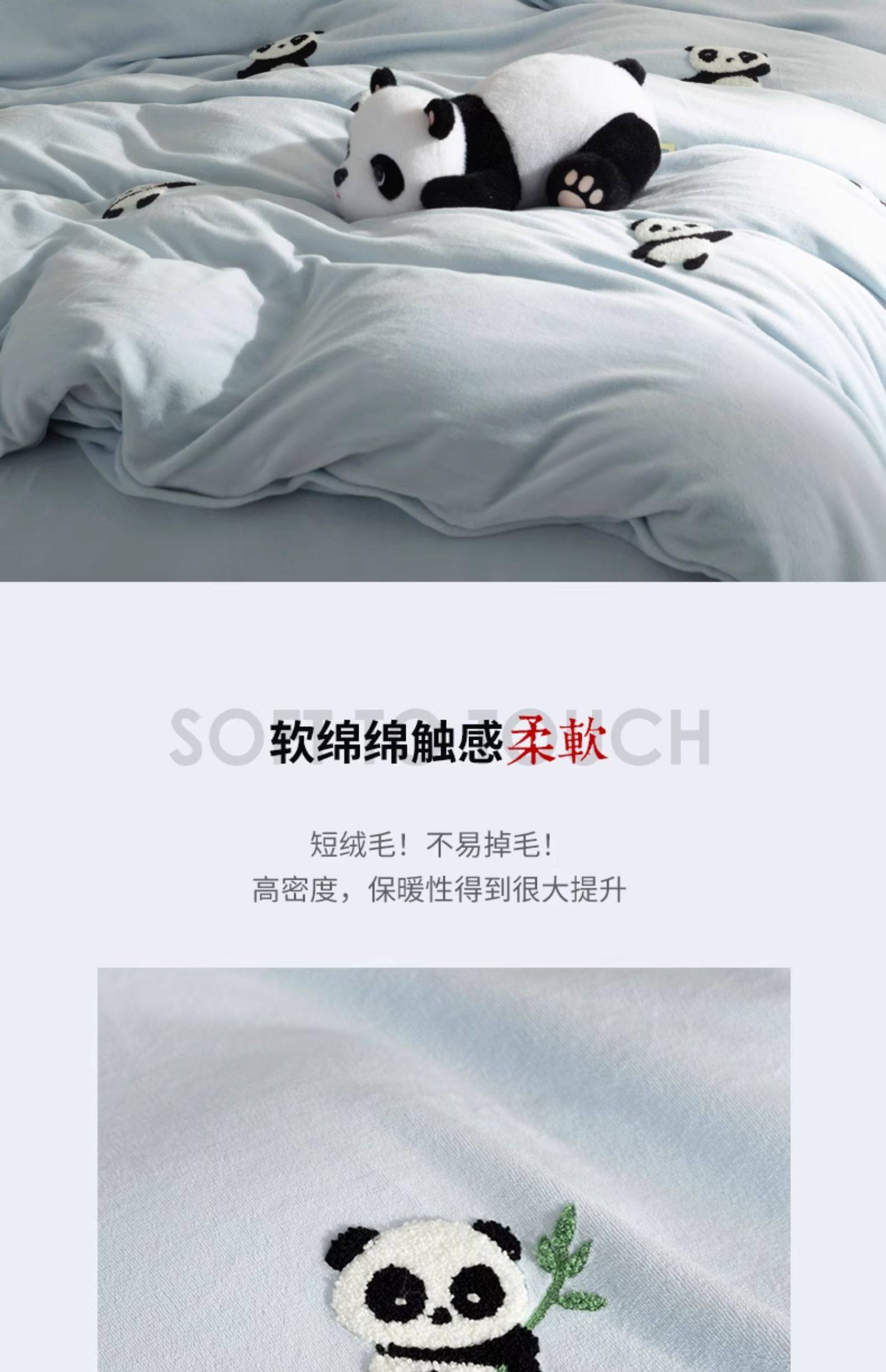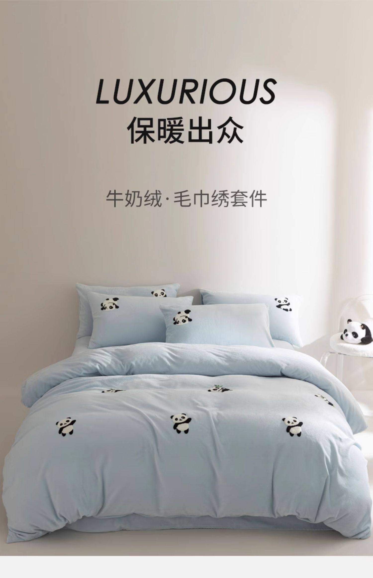 卡通刺綉牛奶絨四件套加厚保暖法蘭絨被套珊瑚絨床單秋冬床上用品