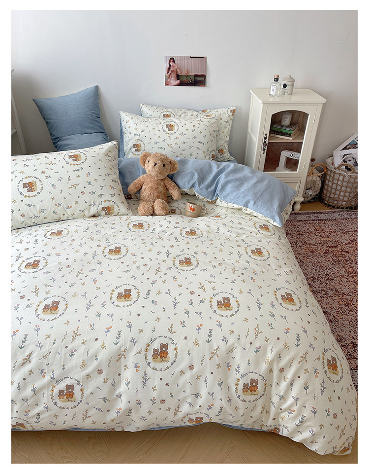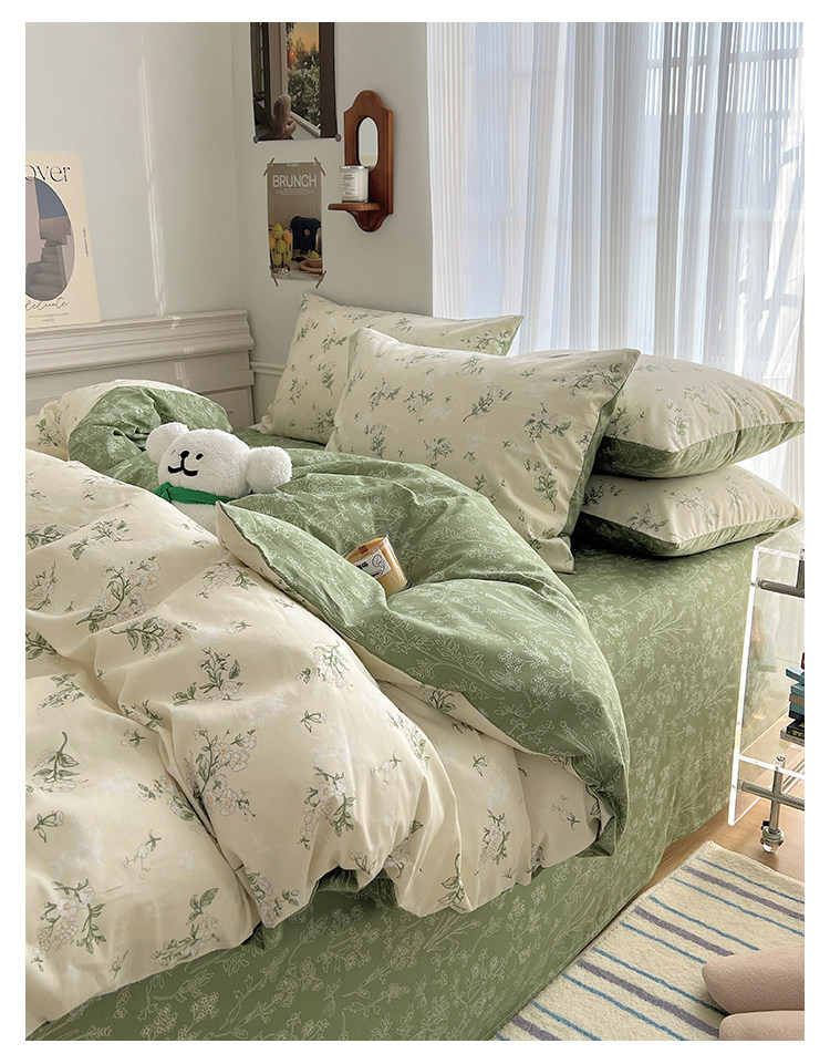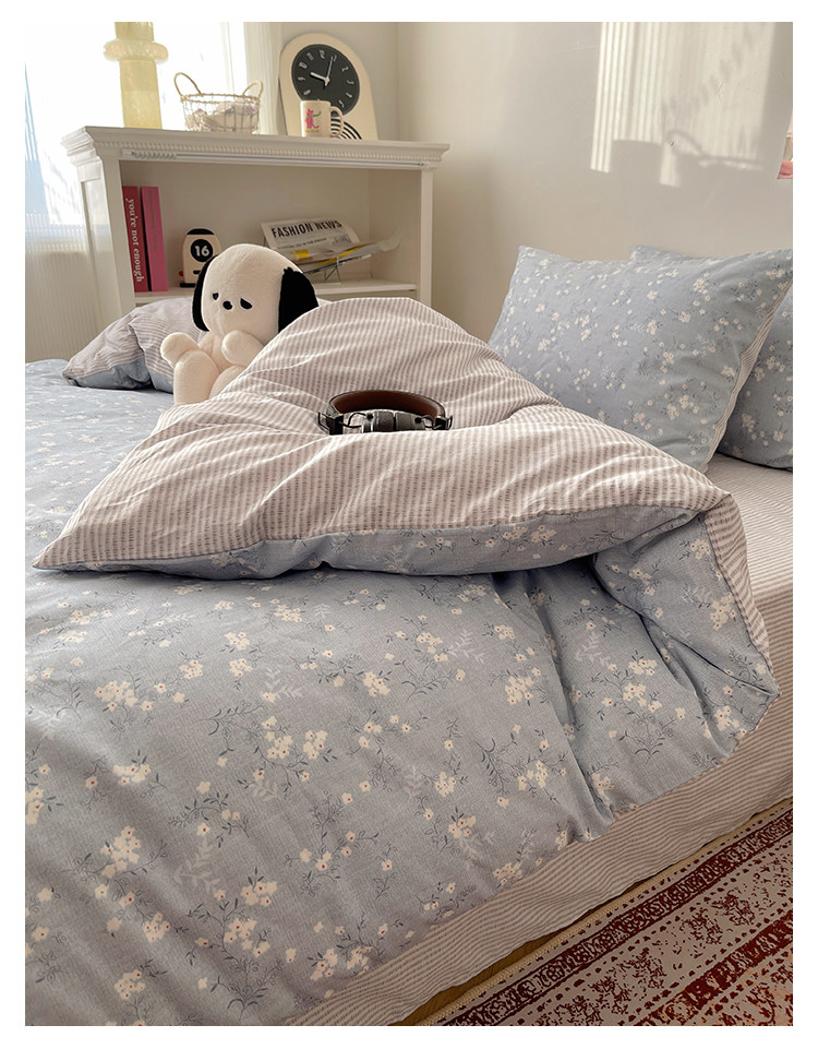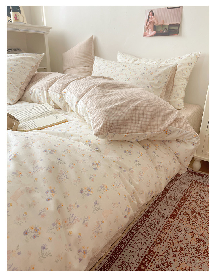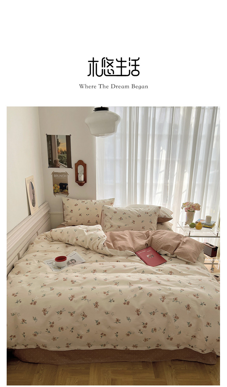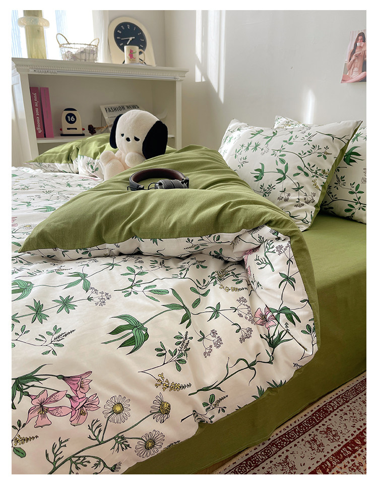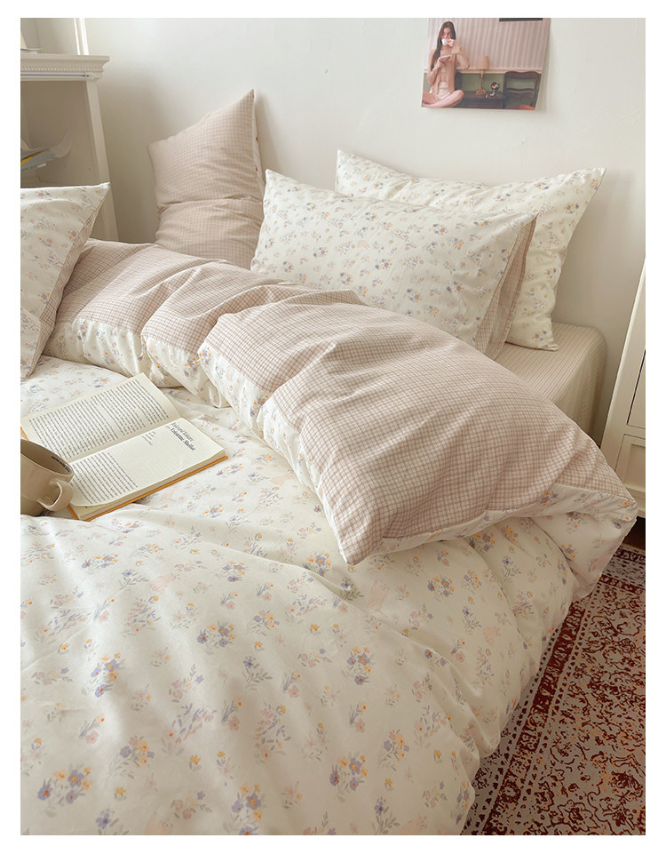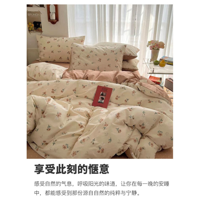 木悠ins田園風四件套純棉全棉小清新床單被套學生宿捨床上三件套
